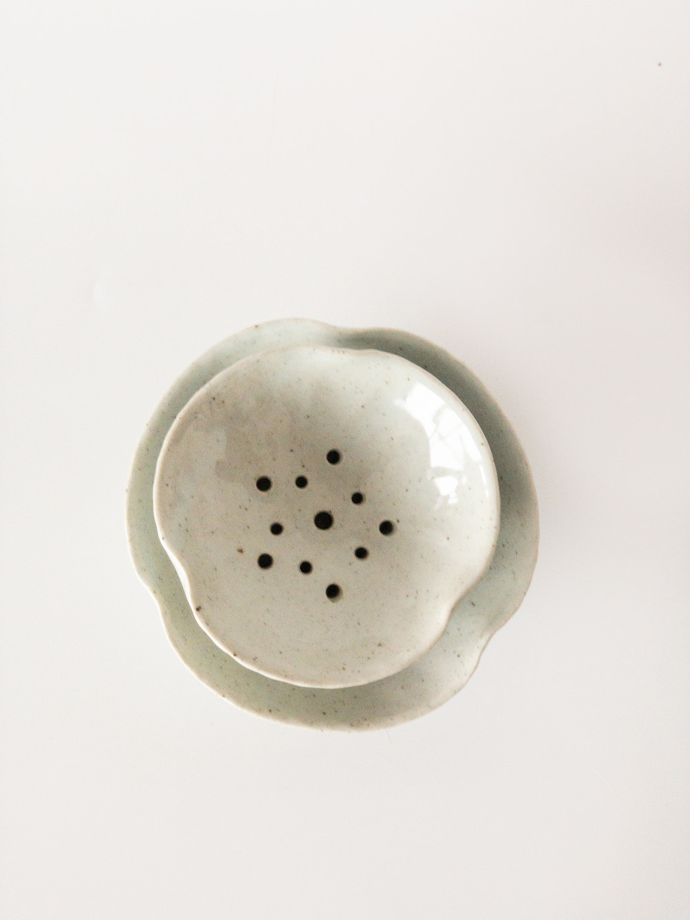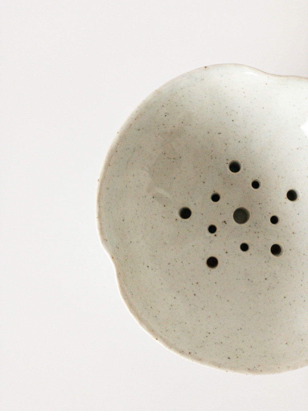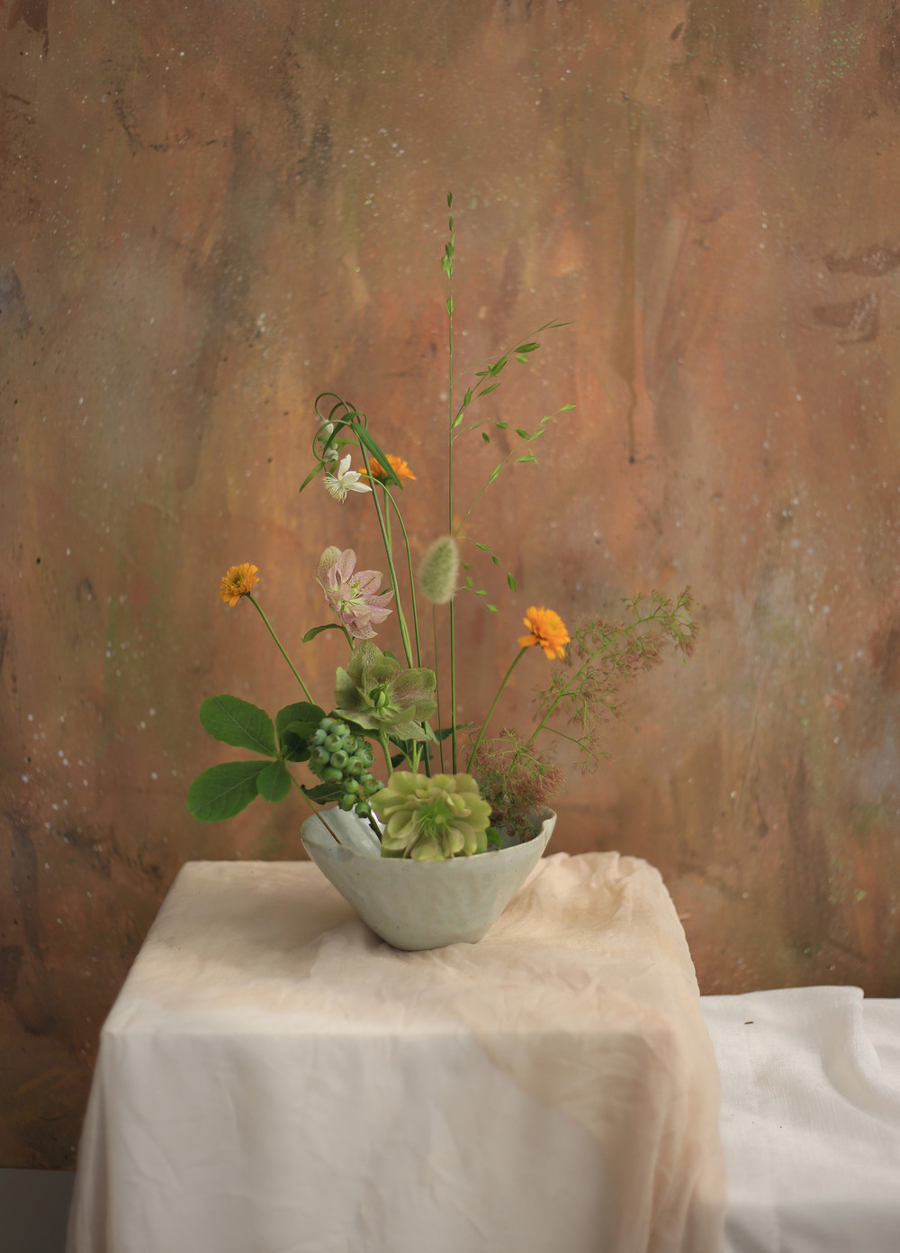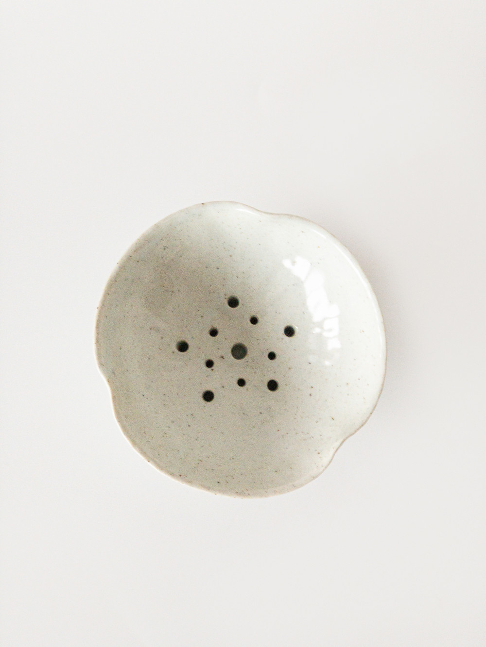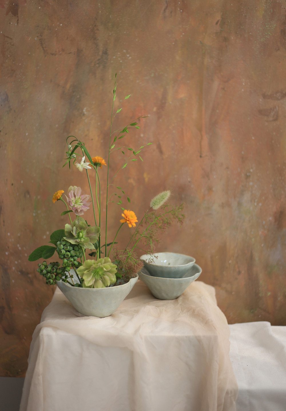 오아시스를 사용하지 않고 꽃을 꽂을 수 있는 수반입니다. 연잎을 모티브로 만들어졌으며, 안쪽에는 구멍이 뚤려 있어 별도의 침봉이나 오아시스를 사용하지 않아도 꽃을 꽂아 연출할 수 있습니다. 작품 하나하나 손으로 정성들여 작업해 모양과 질감이 조금씩 달라 자연 속 연잎을 옮겨온 것처럼 안정감과 편안함을 느끼게 해줍니다. 소량의 물을 수반에 담고 꽃을 꽂으면 누구나 쉽게 멋진 꽃꽂이를 완성하실 수 있습니다. 찻자리에서도 계절별로 변해가는 꽃과 풀을 꽂아 연출해보세요. 더욱 따뜻한 분위기를 느끼실 수 있습니다.