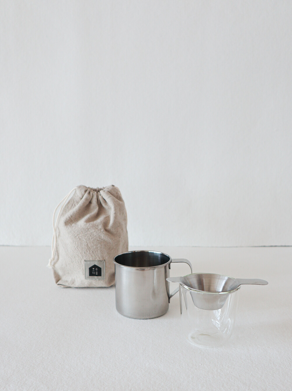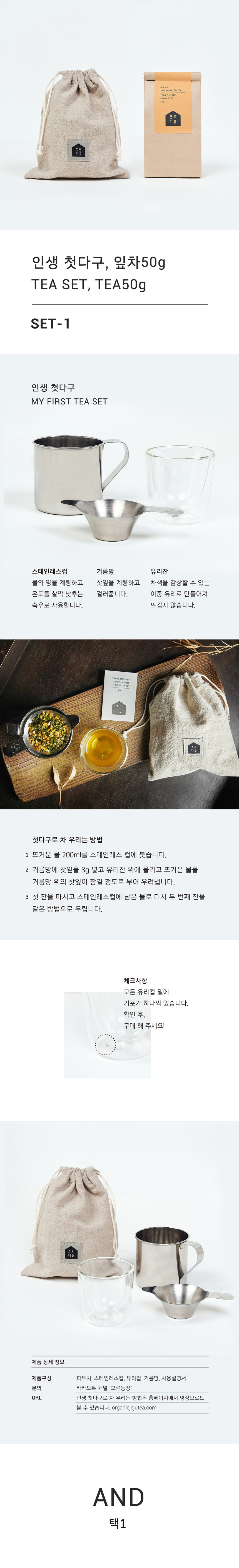 -구성: 린넨 파우치 1개, 스테인리스컵 1개, 유리, 잎차(50g)