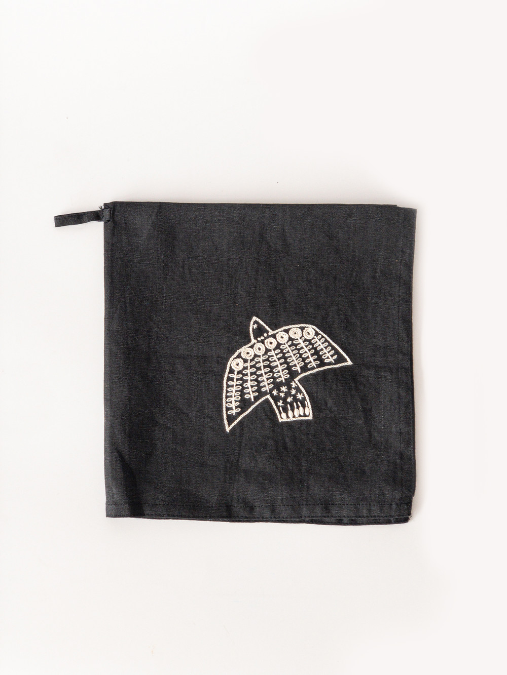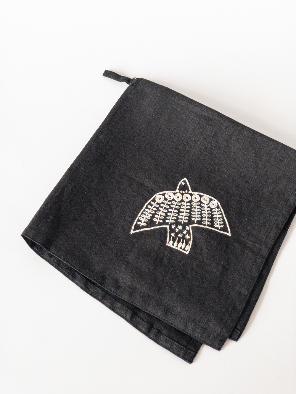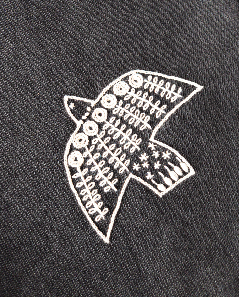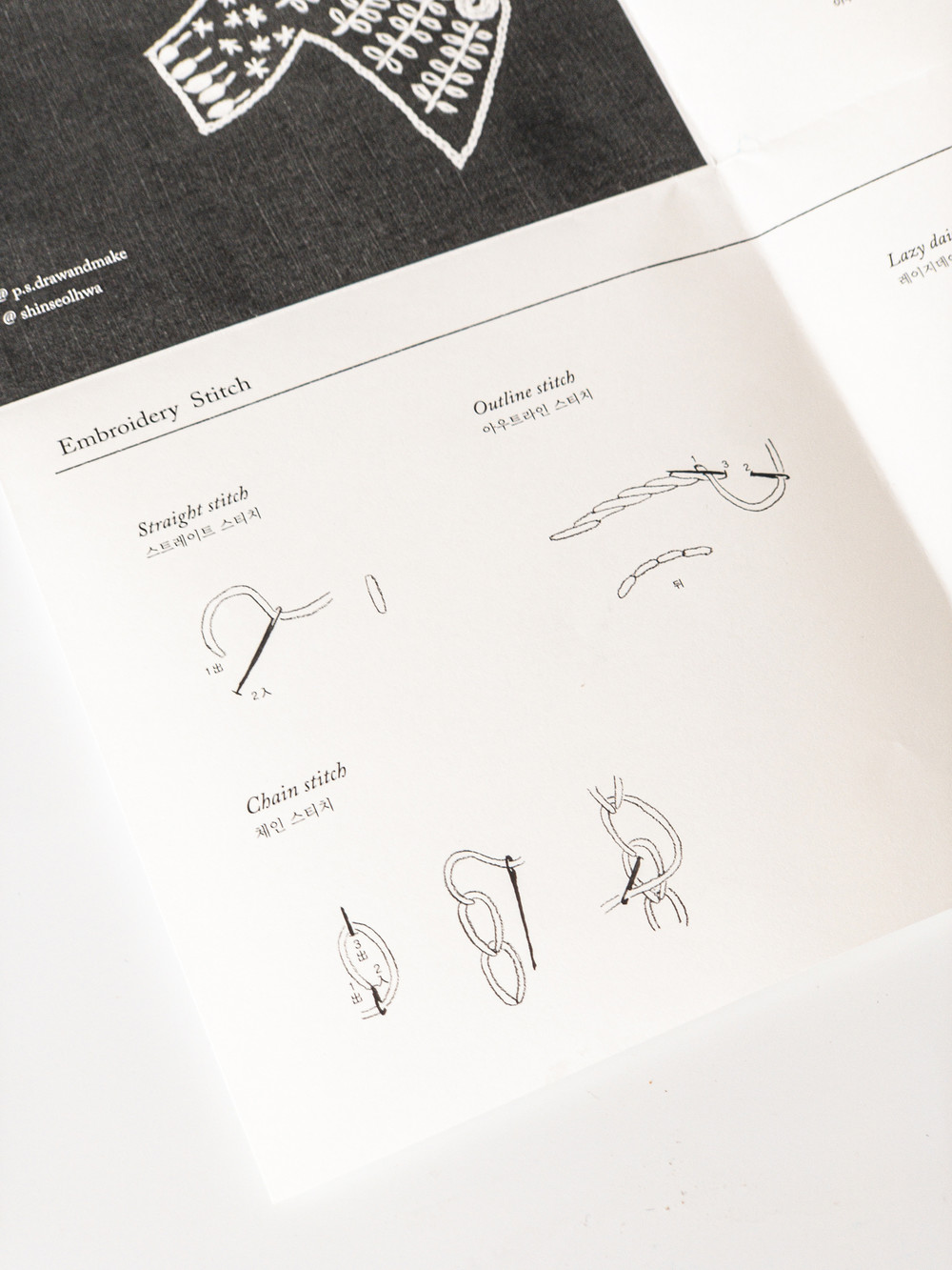 P.S. draw and make 스튜디오의 누구나 쉽고 편하게 자수를 즐길 수 있는 DIY 자수 키트(Bird)입니다. 린넨 밥상보 위에 한가지의 흰 실로 새를 수놓는 키트입니다. 밥상보 외에도 바구니의 덮개나 주방에서 키친크로스 등으로 다양하게 활용하실 수 있습니다. 검정색 린넨 밥상보, 크로바 바늘 5호와 7호, DMC 25번사, 수예용 복사지, 트레이싱지, 설명서가 포함되어 있습니다. 설명서를 참고하여 원단 위에 도안을 옮기고 수를 놓아 완성해 보세요. 이 키트를 통해 원단에 도안을 옮기는 방법을 알게되면 내가 원하는 도안을 자유롭게 어디든 옮겨 수놓을 수 있습니다. 취미용으로도, 누군가에게 전하는 선물용으로도 좋은 제품입니다.