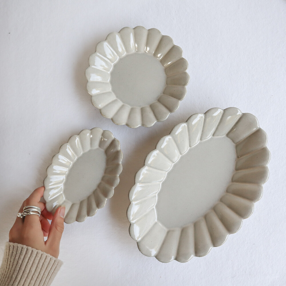 자연스러운 색감이 아름다운 꽃잎 모양 접시입니다. 은은한 컬러와 모양 덕분에 오랫동안 곁에서 사용하여도 질리지 않는 매력을 지니고 있습니다. 사이즈는 세가지로 옵션에서 골라주세요.