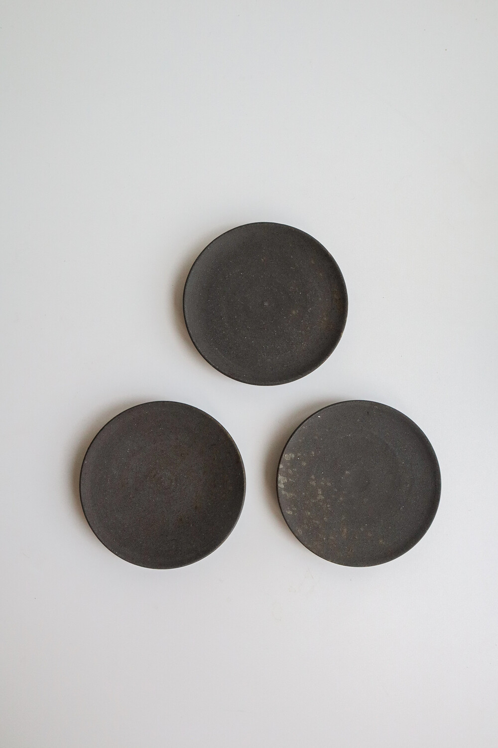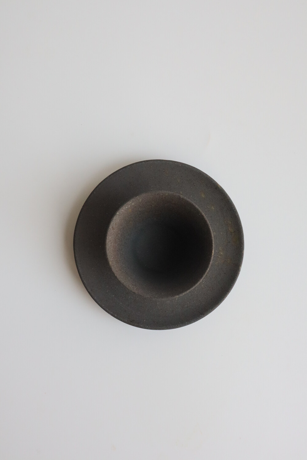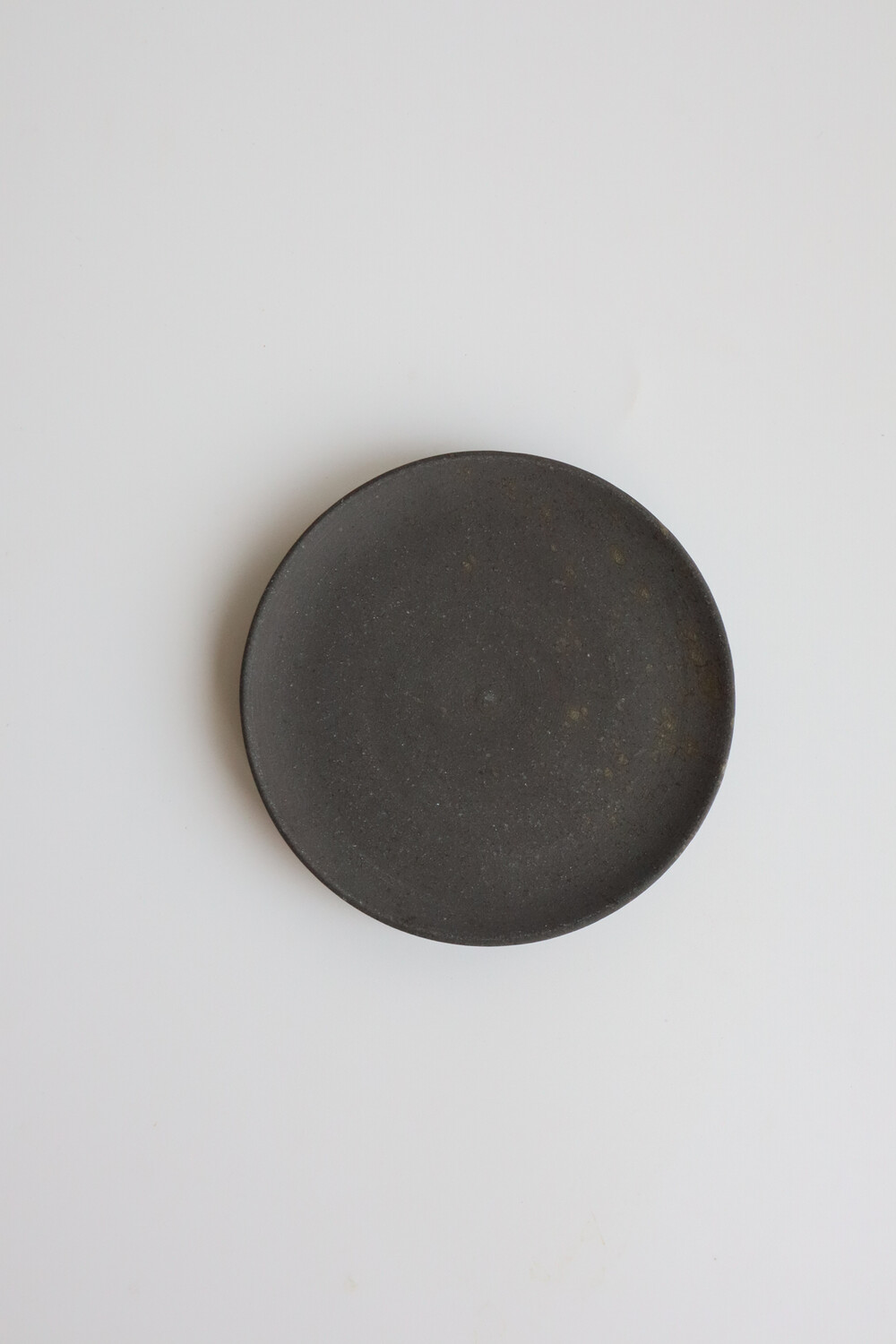 최민록 작가의 흑도 찻잔받침입니다. 철분이 많이 함유되어 있는 검정색 소지로 작업 후 유약을 입히지 않고, 소성시 내화갑이라는 고온에서 견디는 상자 안에 작품을 넣은 후 그 주위에 숯을 쌓아 넣고 뚜껑을 닫아 연기가 작품에 스며 들 수 있게 작업하여 우리 전통 기와와 같은 느낌을 내었습니다. 민토의 흑도 찻잔과 함께 찻잔 받침으로도, 개완 받침으로도, 다식 접시로도 다양하게 활용해보세요.