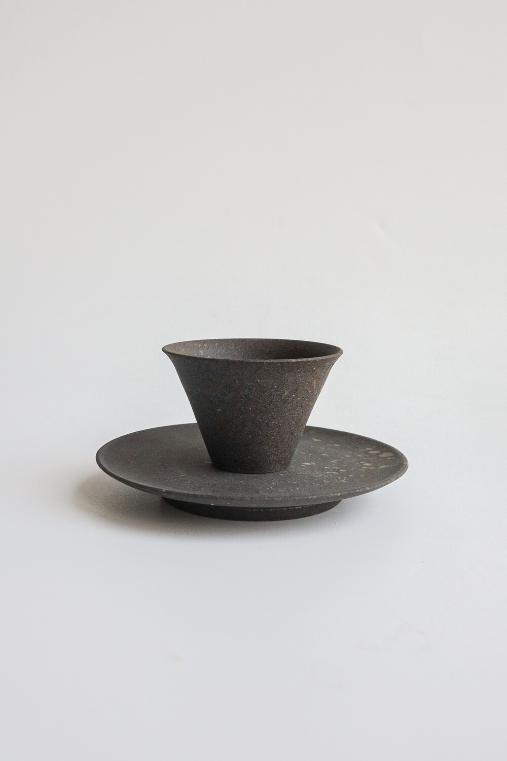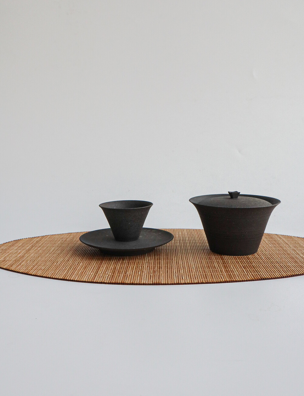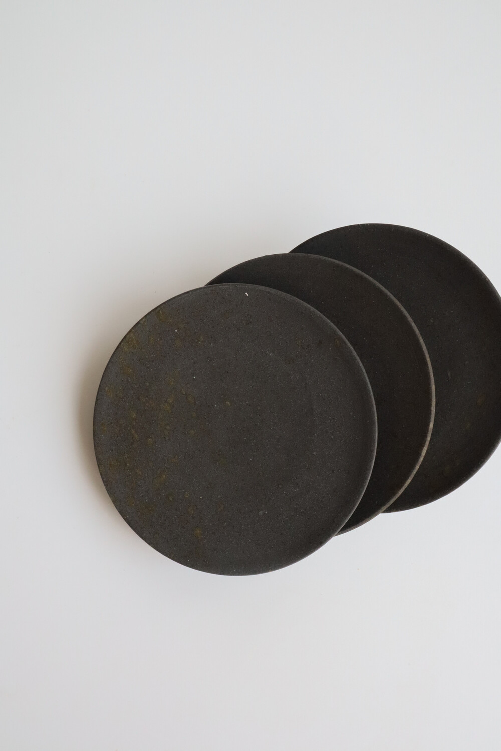 최민록 작가의 흑도 찻잔받침입니다. 철분이 많이 함유되어 있는 검정색 소지로 작업 후 유약을 입히지 않고, 소성시 내화갑이라는 고온에서 견디는 상자 안에 작품을 넣은 후 그 주위에 숯을 쌓아 넣고 뚜껑을 닫아 연기가 작품에 스며 들 수 있게 작업하여 우리 전통 기와와 같은 느낌을 내었습니다. 민토의 흑도 찻잔과 함께 찻잔 받침으로도, 개완 받침으로도, 다식 접시로도 다양하게 활용해보세요.