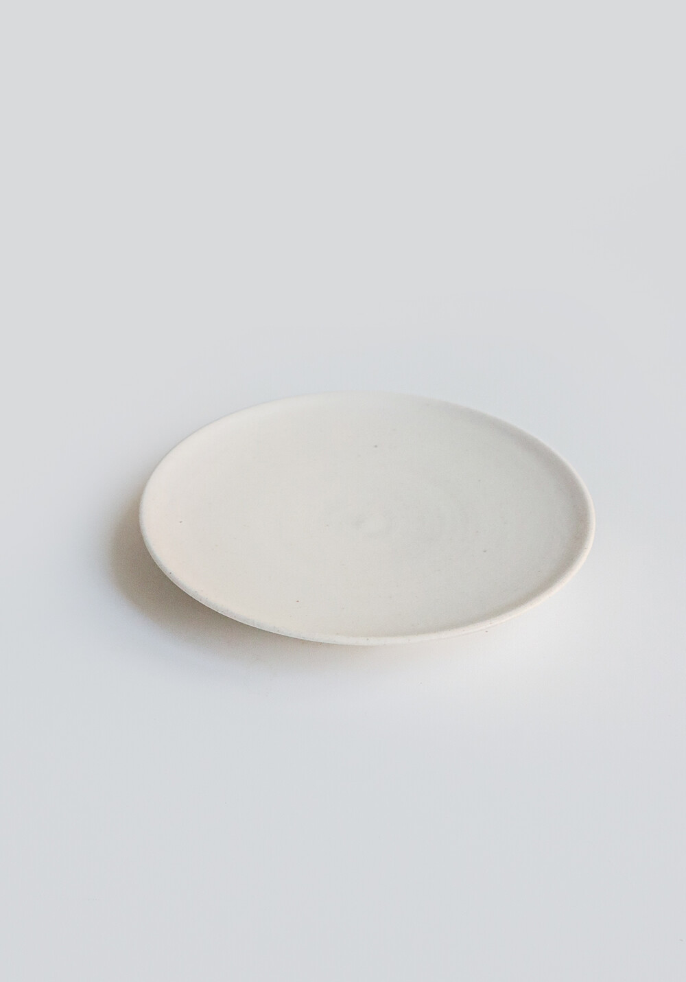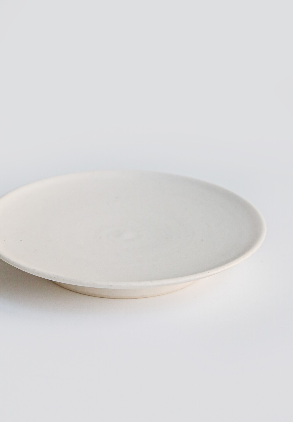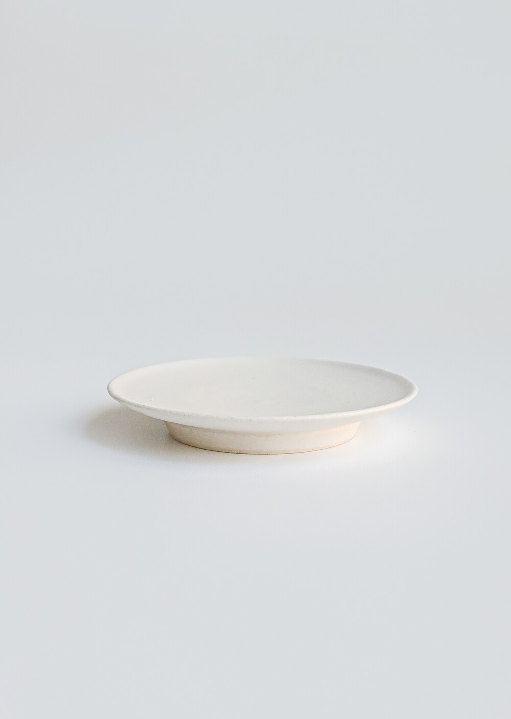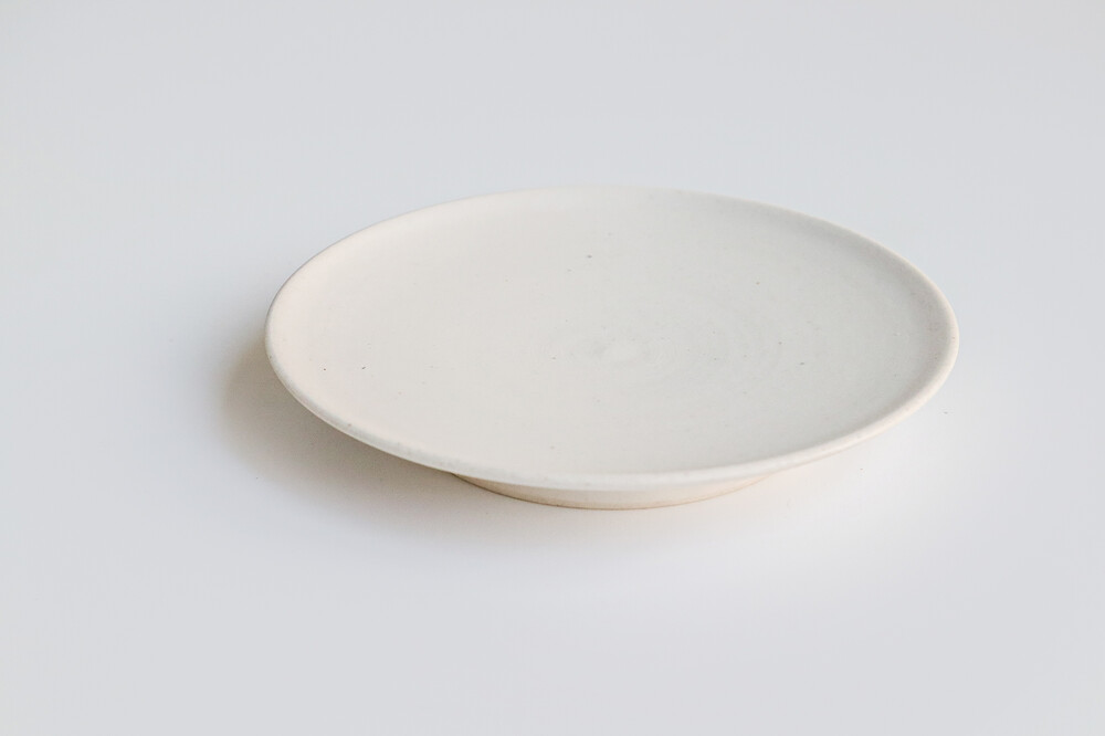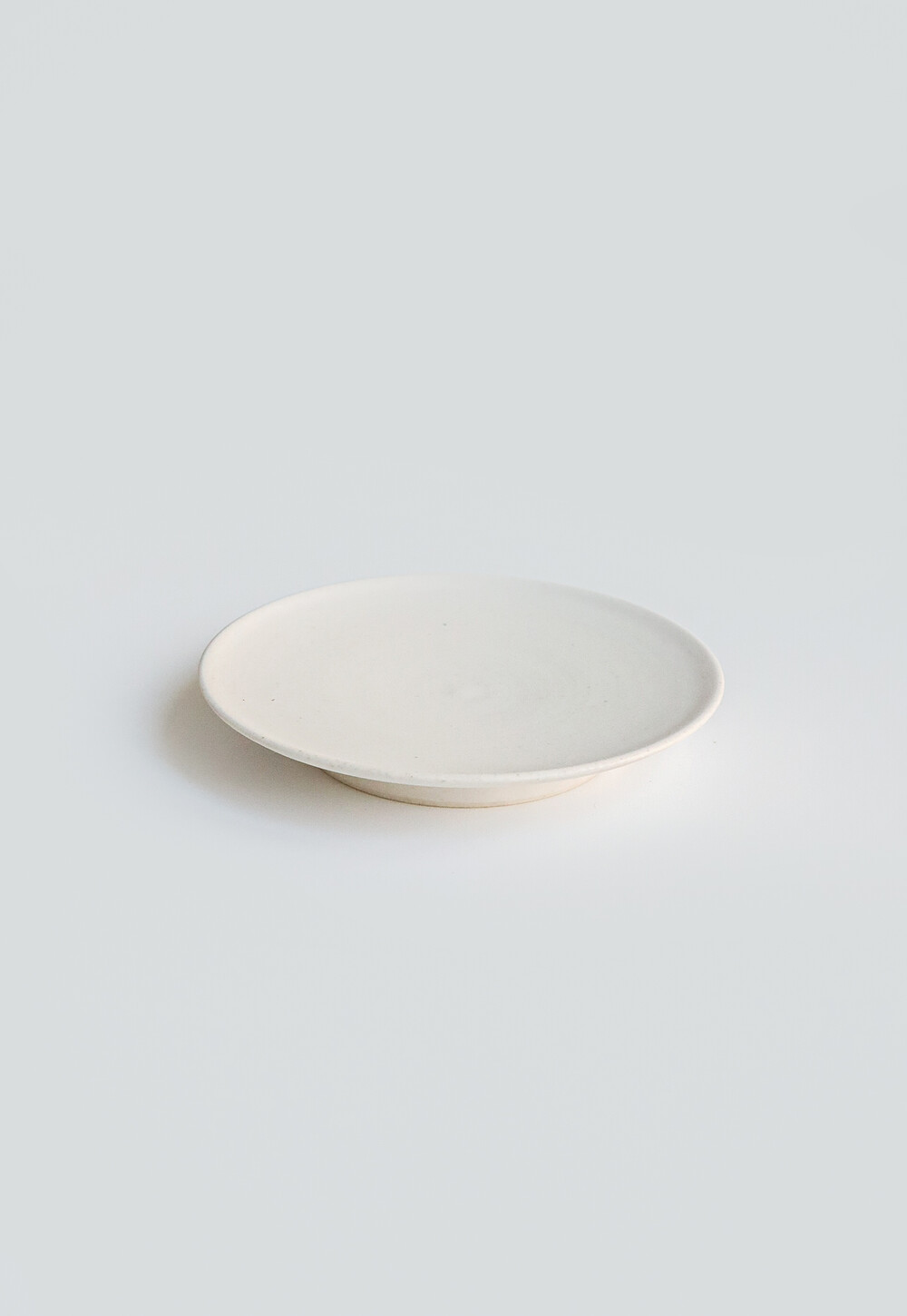 최민록 작가의 퓨어 화이트 찻잔받침입니다. 철분이 조금있는 백자 소지에 무광의 백색 유약을 입혀 1250도로 소성하였습니다. 백색의 매트한 질감이 단아한 분위기를 자아해내는 동시에 차 고유의 빛깔을 돋보이게 하여 오로지 차에게 집중하며 음미할 수 있게 해줍니다. 잔받침으로도 작은 다식 접시로도 활용하실 수 있습니다.