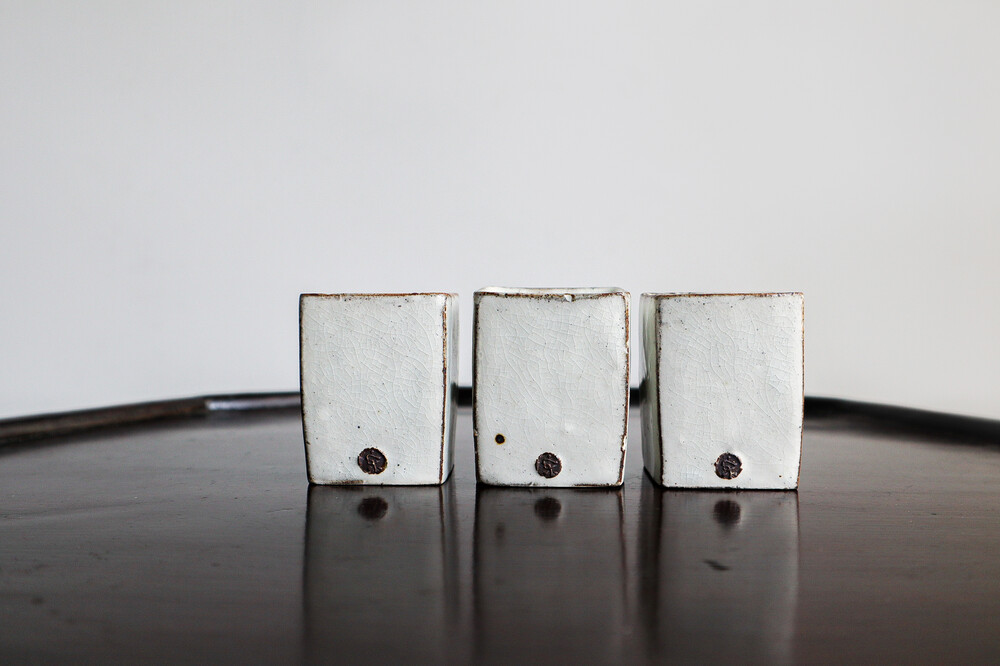 청학도방 송춘호 작가의 초벌 분청 사각 찻잔입니다. 초벌 분청이 주는 따스한 컬러감과 포근한 느낌과 섬세하게 표현한 사각이 함께 잘 어우러집니다. 표면에 나타난 빙렬은 함께 할수록 찻물이 빙렬에 서서히 스며들어 함께 변화해가는 모습을 감상하실 수 있습니다.