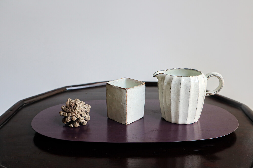 함께 연출한 제품은 [청학도방] 초벌 분청 16각 숙우, [ottott] 옻칠 트레이(M) - 퍼플입니다.