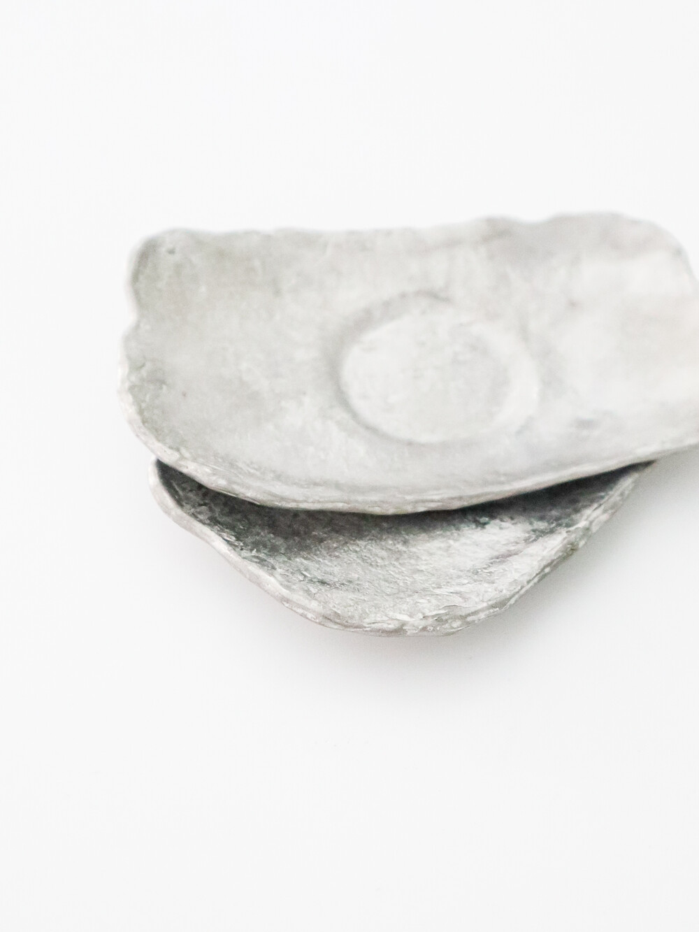 바위의 질감을 담아낸 포FOH의 주석 사각 찻잔받침입니다. 바위의 자연스러운 질감과 하나하나 다르게 만든 외곽 라인이 특징입니다. 잔을 감싸안으며 더욱 돋보이게 해주는 제품입니다. 상품은 랜덤으로 발송됩니다.