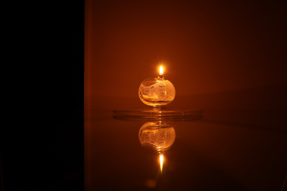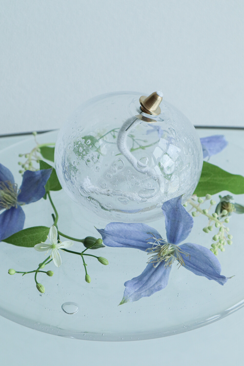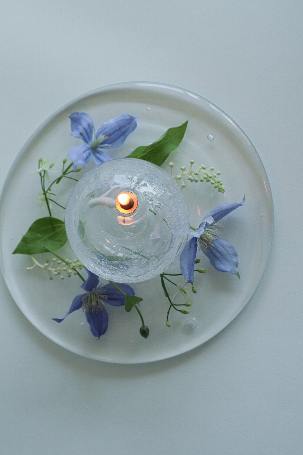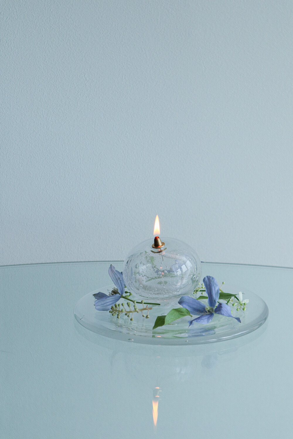 마버글라스의 접시 호롱입니다. 원형의 접시에 둥근 호롱이 부착된 형태입니다. 생화 등 다양한 장식을 더해 활용하시면 공간을 더욱 아름답게 밝혀줍니다.