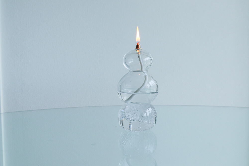 마버 글라스의 돌탑모양을 닮은 3단 호롱입니다. 돌을 쌓아놓은 것같은 형태가 작품에 재미를 더해줍니다. 2단,4단과 함께 믹스하여 활용하시면 더욱 다양한 연출이 가능합니다. 심지를 제거하여 독특한 아웃라인의 한송이 화병으로도 활용해보시길 추천드립니다