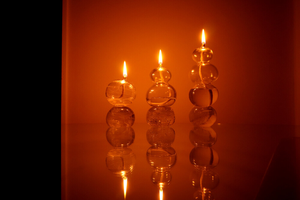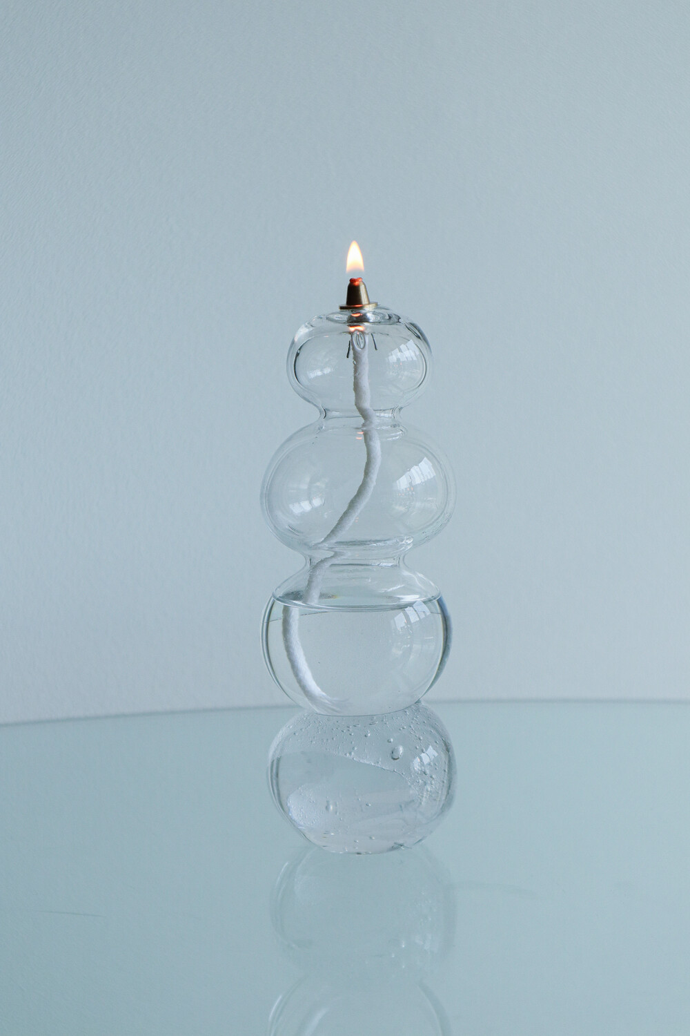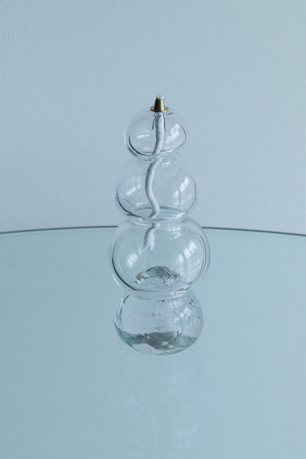 마버 글라스의 돌탑모양을 닮은 2단 호롱입니다. 돌을 쌓아놓은 것같은 형태가 작품에 재미를 더해줍니다. 3단,4단과 함께 믹스하여 활용하시면 더욱 다양한 연출이 가능합니다. 심지를 제거하여 독특한 아웃라인의 한송이 화병으로도 활용해보시길 추천드립니다