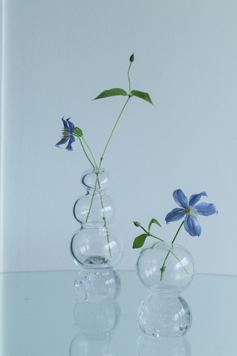 블로잉은 1200° 용해로 안에 녹아있는 액체상태의 유리로 작업합니다. 유리 안에 바람을 불어넣거나, 도구를 이용한 성형을 거쳐 고체상태로 작품을 완성합니다. 블로잉의 핵심은 온도를 유연하게 다루는 능력이라고 생각합니다. 눈으로는 판단이 불가한 유리의 온도를 감각적으로 이해해야하는데 이는 충분한 경험을 통해서만 유연하게 반응할 수 있습니다. 리드미컬하게 온도를 느끼며 표현해나가는 과정은 균형잡힌 섬세함과 높은 집중도를 요합니다. 결과적으로, 오랜시간 축적된 경험과 노하우가 하나의 오브제에 자연스레 담기게 됩니다. 저의 호흡이 오롯이 담긴 작품들이 가치로운 쓰임으로 곳곳에 자리하길 희망합니다.