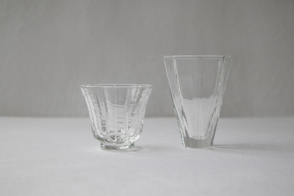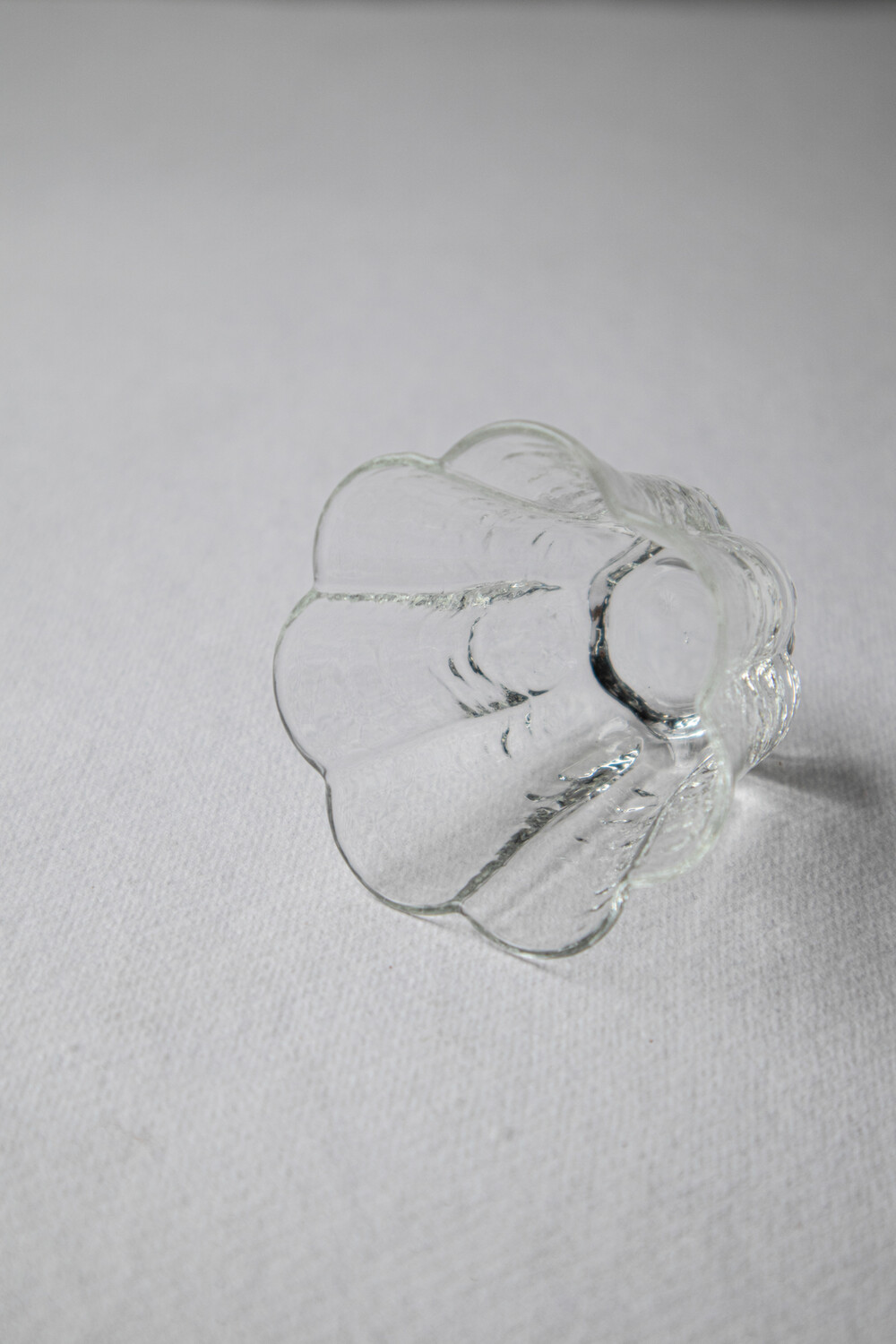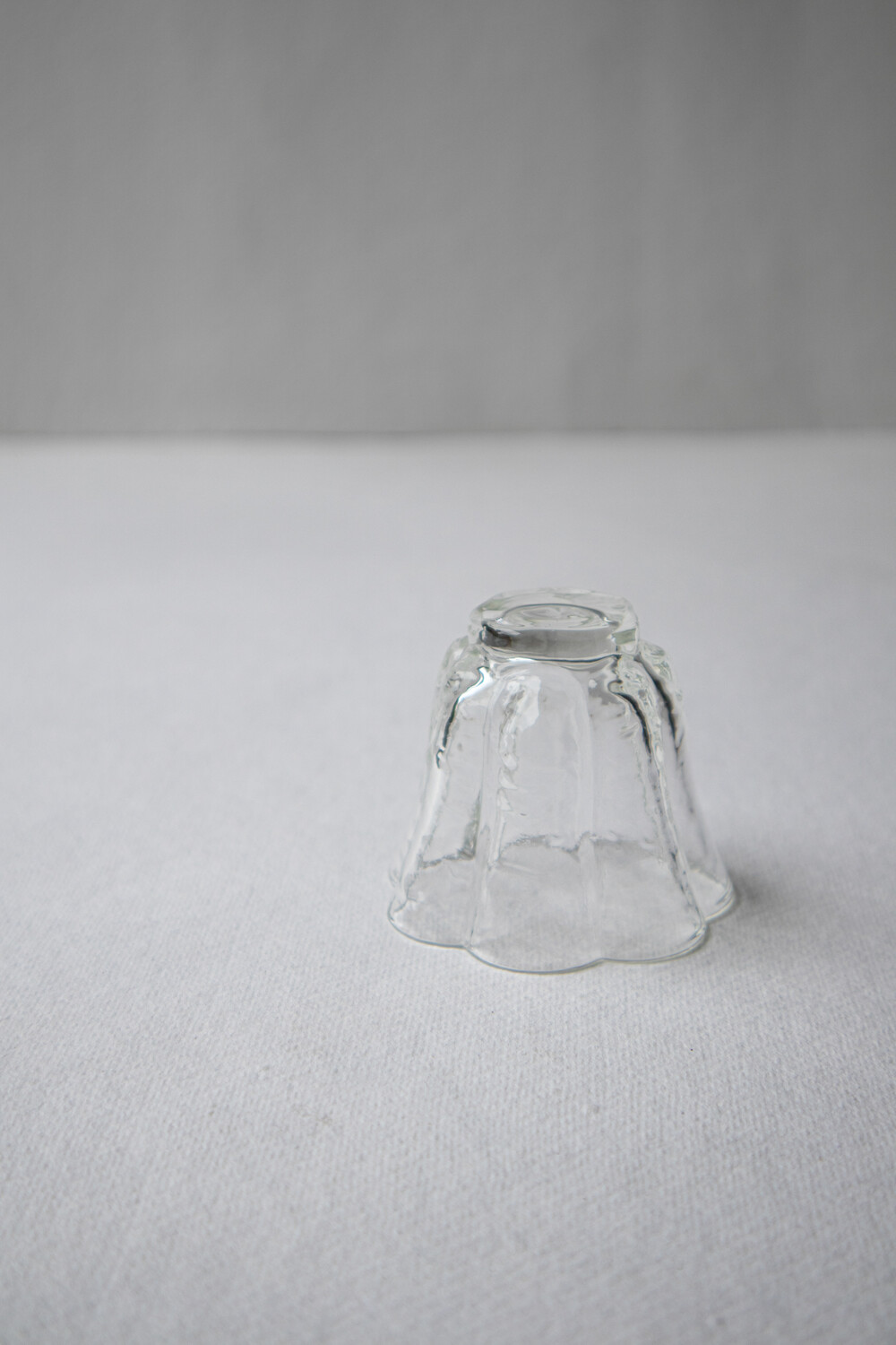 꽃잎 모양의 유리 찻잔입니다. 유리에 불규칙한 요철이 있어서 빛이 비치면 유리가 더욱 영롱하게 빛이 납니다.