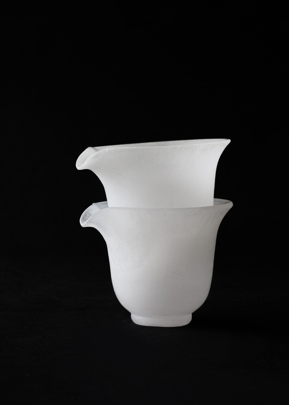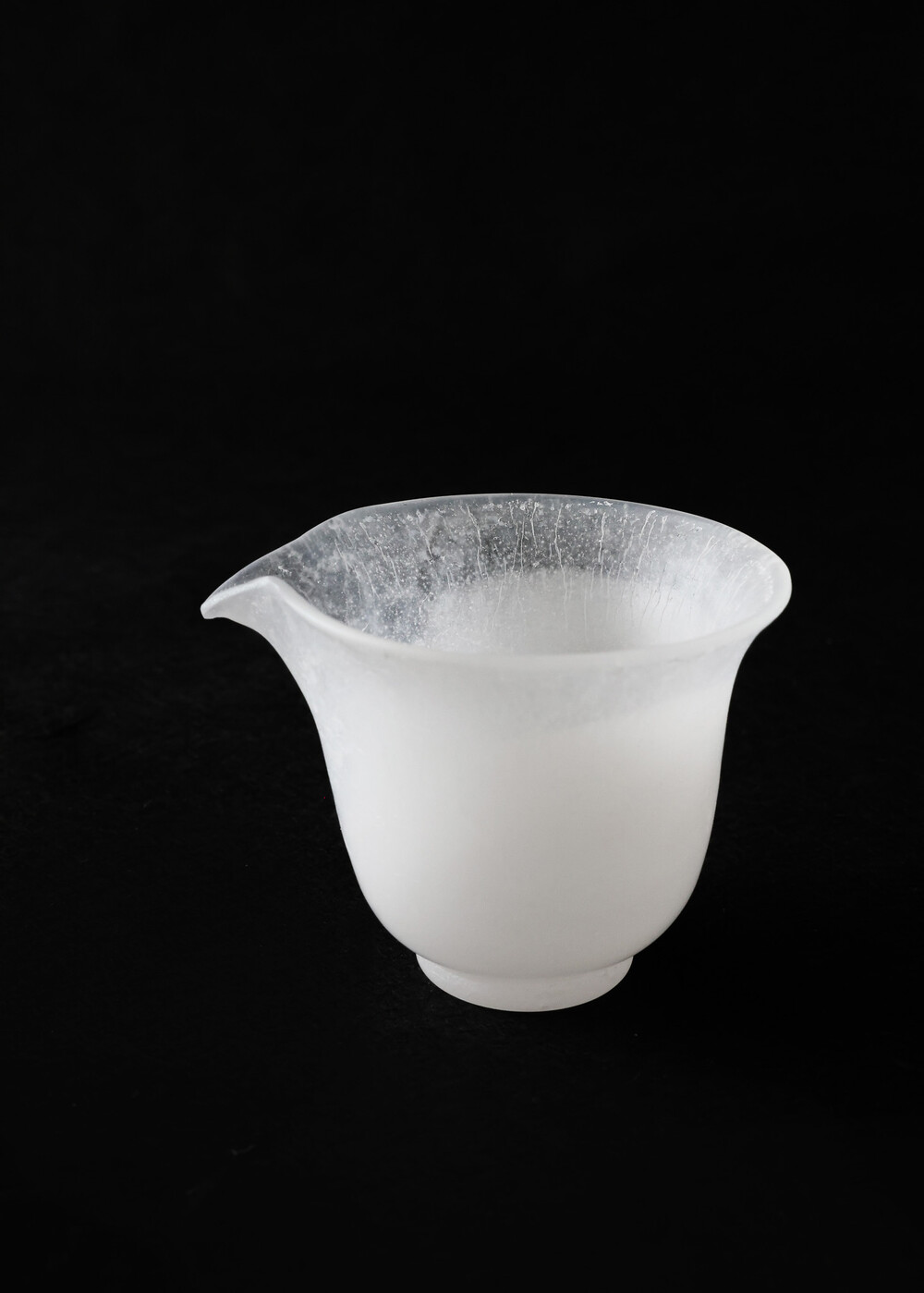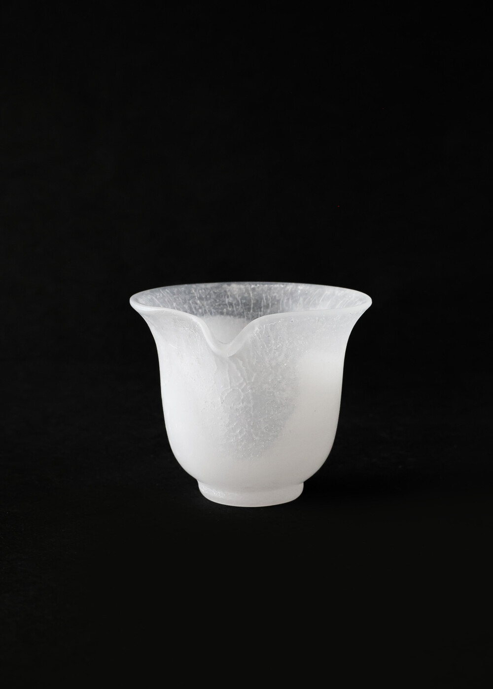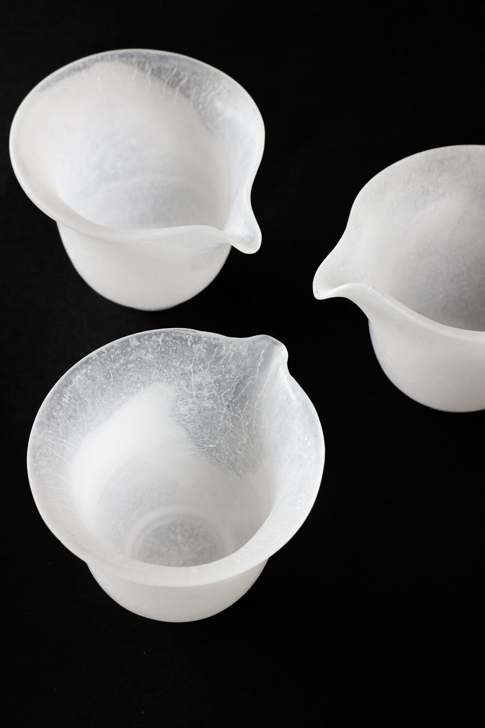 베르비에 유하나 작가의 눈결 유리 숙우입니다. 유리캐스팅 기법으로 만들어졌으며, 유리 파우더와 공기가 만나며 만들어진 무늬가 겨울에 사뿐히 내린 눈 같기도 꽁꽁 언 얼음 사이로 보이는 결정 같기도 합니다. 특히 찻물을 담으면 뽀얗게 찻물이 빛나며 유리의 질감들이 고스란히 드러 나는데 이때는 마치 달의 표면처럼 느껴지기도 합니다. 참 다양한 매력을 가진 작품입니다. 한 손에 들어오는 알맞은 크기에 매끄럽고 보들보들한 촉감 덕분에 자꾸만 사용하고 싶어집니다. 다가오는 겨울, 눈결을 닮은 베르비에의 작품들과 함께 포근하고 아름다운 찻자리를 가지시길 바랍니다.