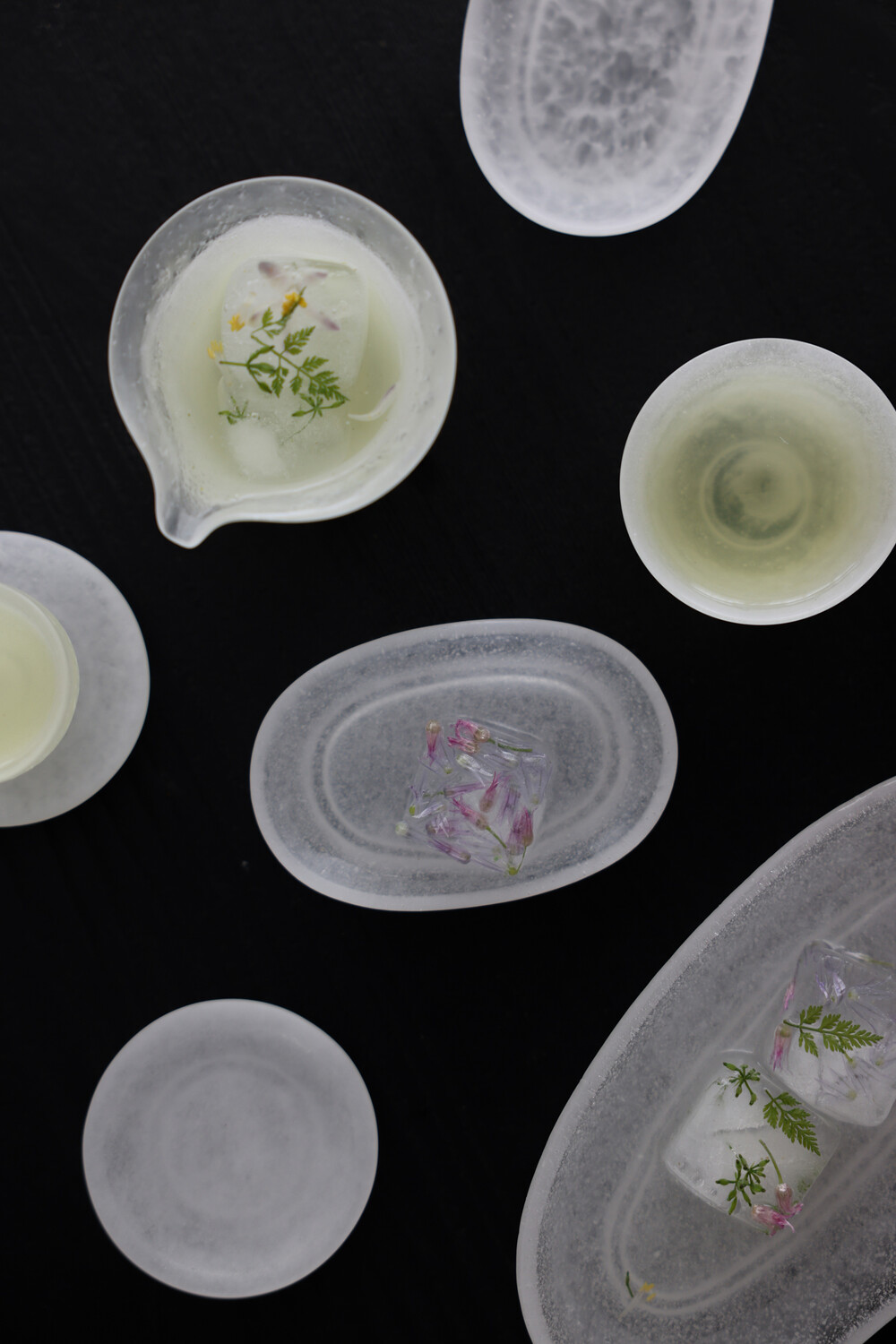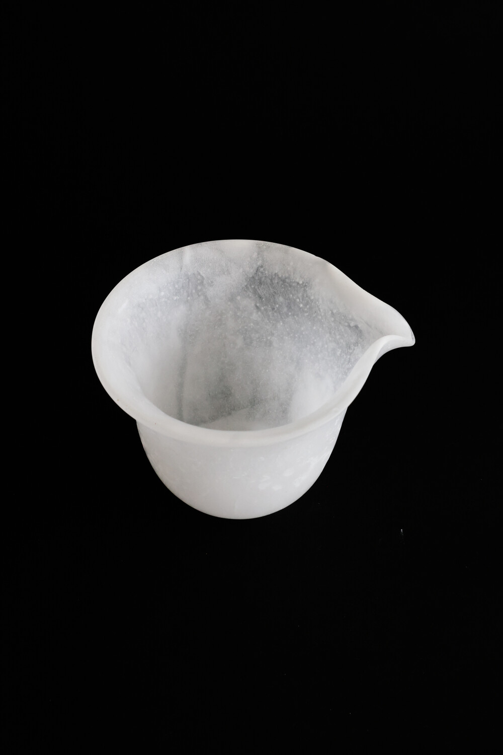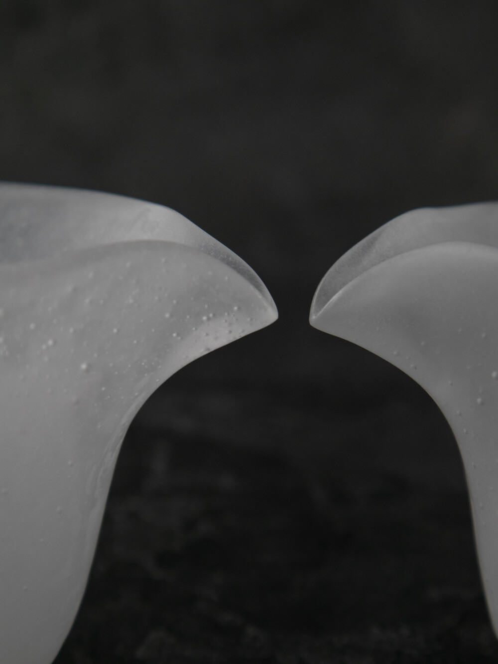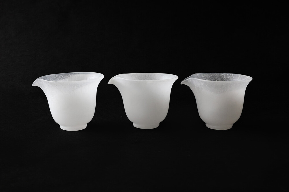 베르비에 유하나 작가의 눈결 유리 숙우입니다. 유리캐스팅 기법으로 만들어졌으며, 유리 파우더와 공기가 만나며 만들어진 무늬가 겨울에 사뿐히 내린 눈 같기도 꽁꽁 언 얼음 사이로 보이는 결정 같기도 합니다. 특히 찻물을 담으면 뽀얗게 찻물이 빛나며 유리의 질감들이 고스란히 드러 나는데 이때는 마치 달의 표면처럼 느껴지기도 합니다. 참 다양한 매력을 가진 작품입니다. 한 손에 들어오는 알맞은 크기에 매끄럽고 보들보들한 촉감 덕분에 자꾸만 사용하고 싶어집니다. 다가오는 겨울, 눈결을 닮은 베르비에의 작품들과 함께 포근하고 아름다운 찻자리를 가지시길 바랍니다.