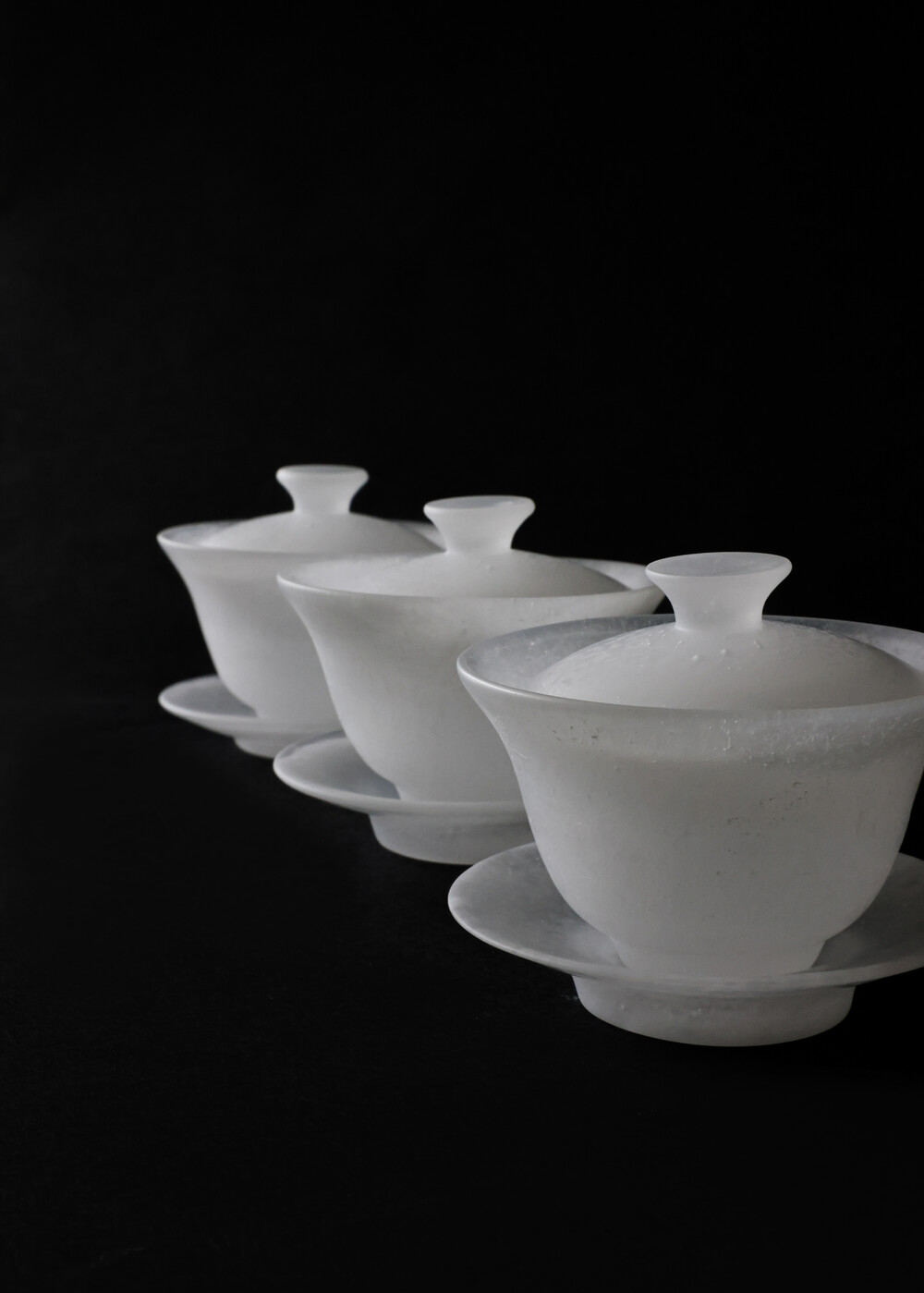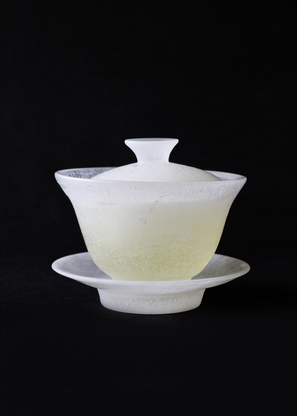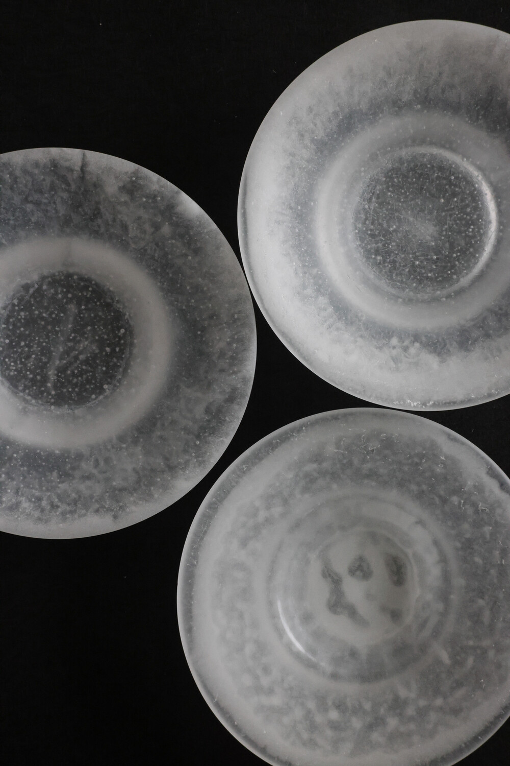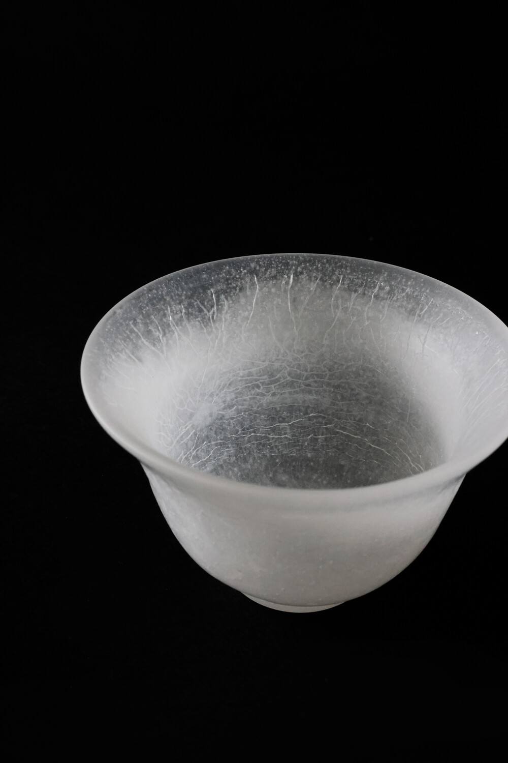베르비에 유하나 작가의 눈결 유리 개완입니다. 유리캐스팅 기법으로 만들어졌으며, 유리 파우더와 공기가 만나며 만들어진 무늬가 겨울에 사뿐히 내린 눈 같기도 꽁꽁 언 얼음 사이로 보이는 결정 같기도 합니다. 특히 찻물을 담으면 뽀얗게 찻물이 빛나며 유리의 질감들이 고스란히 드러 나는데 이때는 마치 달의 표면처럼 느껴지기도 합니다. 참 다양한 매력을 가진 작품입니다. 한 손에 들어오는 알맞은 크기에 매끄럽고 보들보들한 촉감 덕분에 자꾸만 사용하고 싶어집니다. 눈결을 닮은 베르비에의 작품들과 함께 포근하고 아름다운 찻자리를 가지시길 바랍니다.