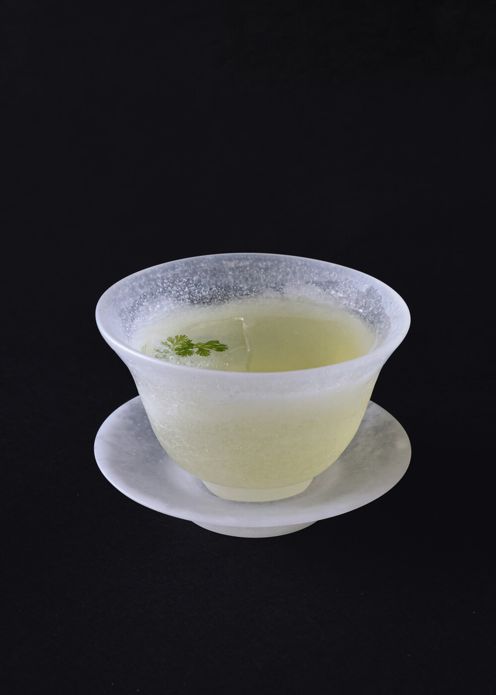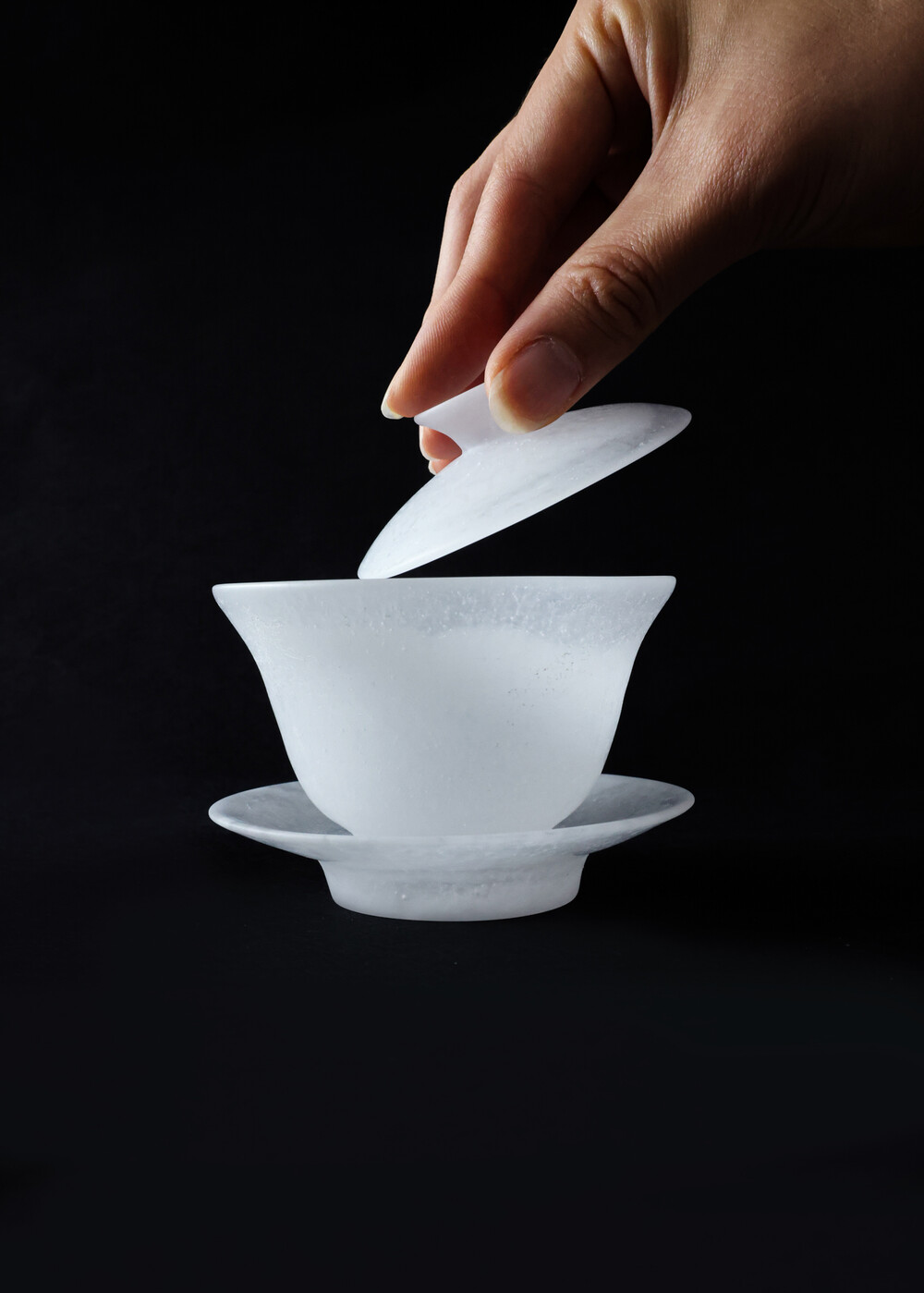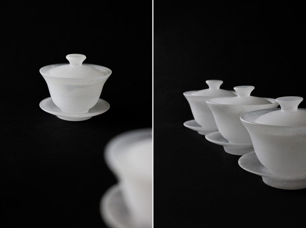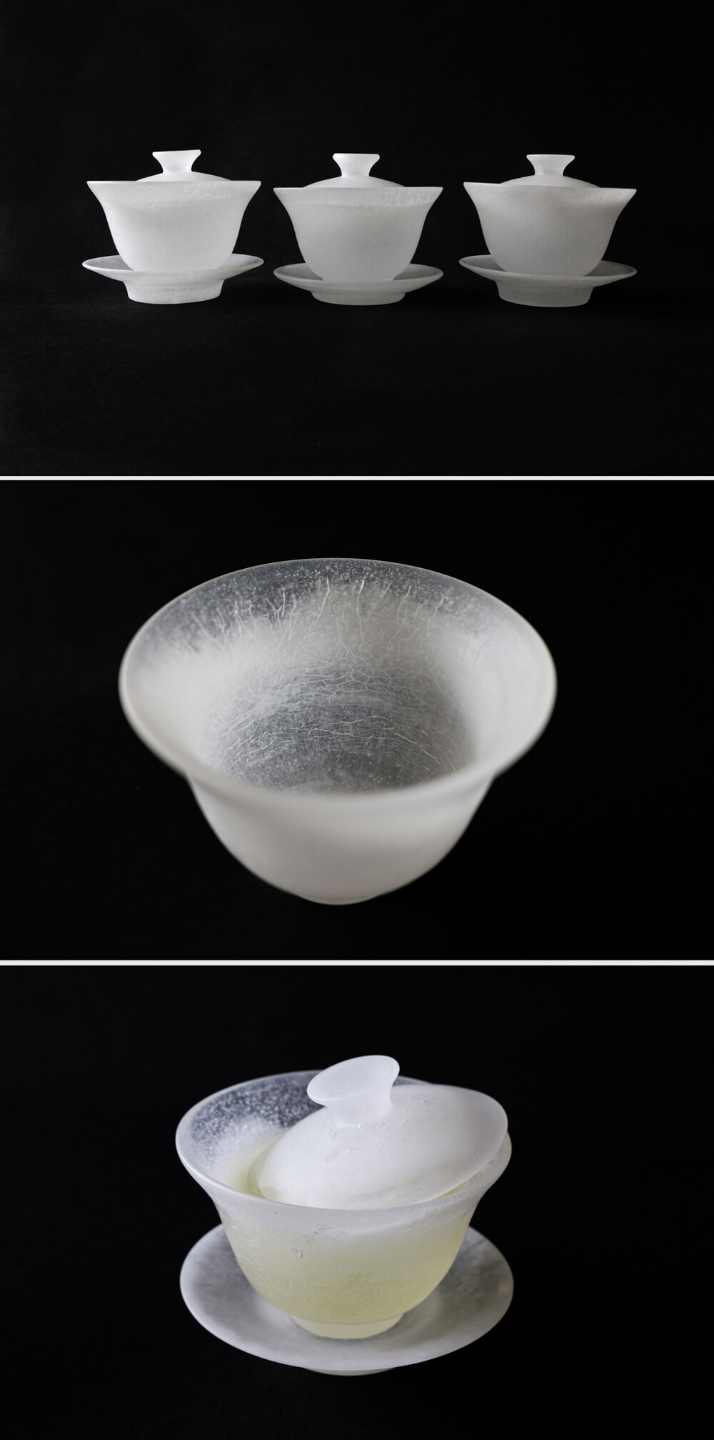 베르비에 유하나 작가의 눈결 유리 개완입니다. 유리캐스팅 기법으로 만들어졌으며, 유리 파우더와 공기가 만나며 만들어진 무늬가 겨울에 사뿐히 내린 눈 같기도 꽁꽁 언 얼음 사이로 보이는 결정 같기도 합니다. 특히 찻물을 담으면 뽀얗게 찻물이 빛나며 유리의 질감들이 고스란히 드러 나는데 이때는 마치 달의 표면처럼 느껴지기도 합니다. 참 다양한 매력을 가진 작품입니다. 한 손에 들어오는 알맞은 크기에 매끄럽고 보들보들한 촉감 덕분에 자꾸만 사용하고 싶어집니다. 눈결을 닮은 베르비에의 작품들과 함께 포근하고 아름다운 찻자리를 가지시길 바랍니다.