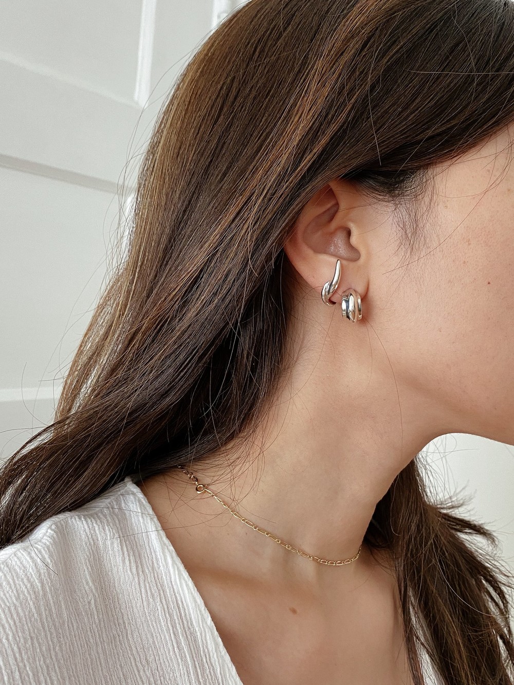 바다속에 둥둥 떠있을때에 부드럽게 자신을 올려주는 파도에서 영감을 받은 귀걸이 입니다. 가운데에 볼륨감이 돋보입니다. 작지만 볼드한 매력이 있는 디자인으로, 볼드한 디자인을 시도해보기에 부담스럽지 않게 만들어졌습니다. 캐주얼하게도 포멀하게도 다양하게 활용하실 수 있습니다.