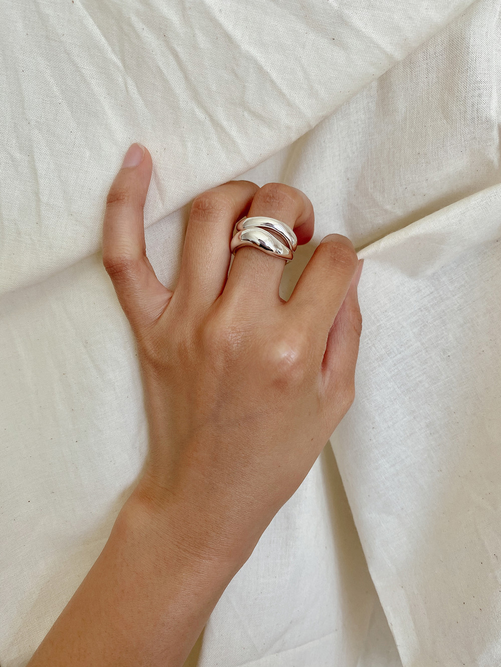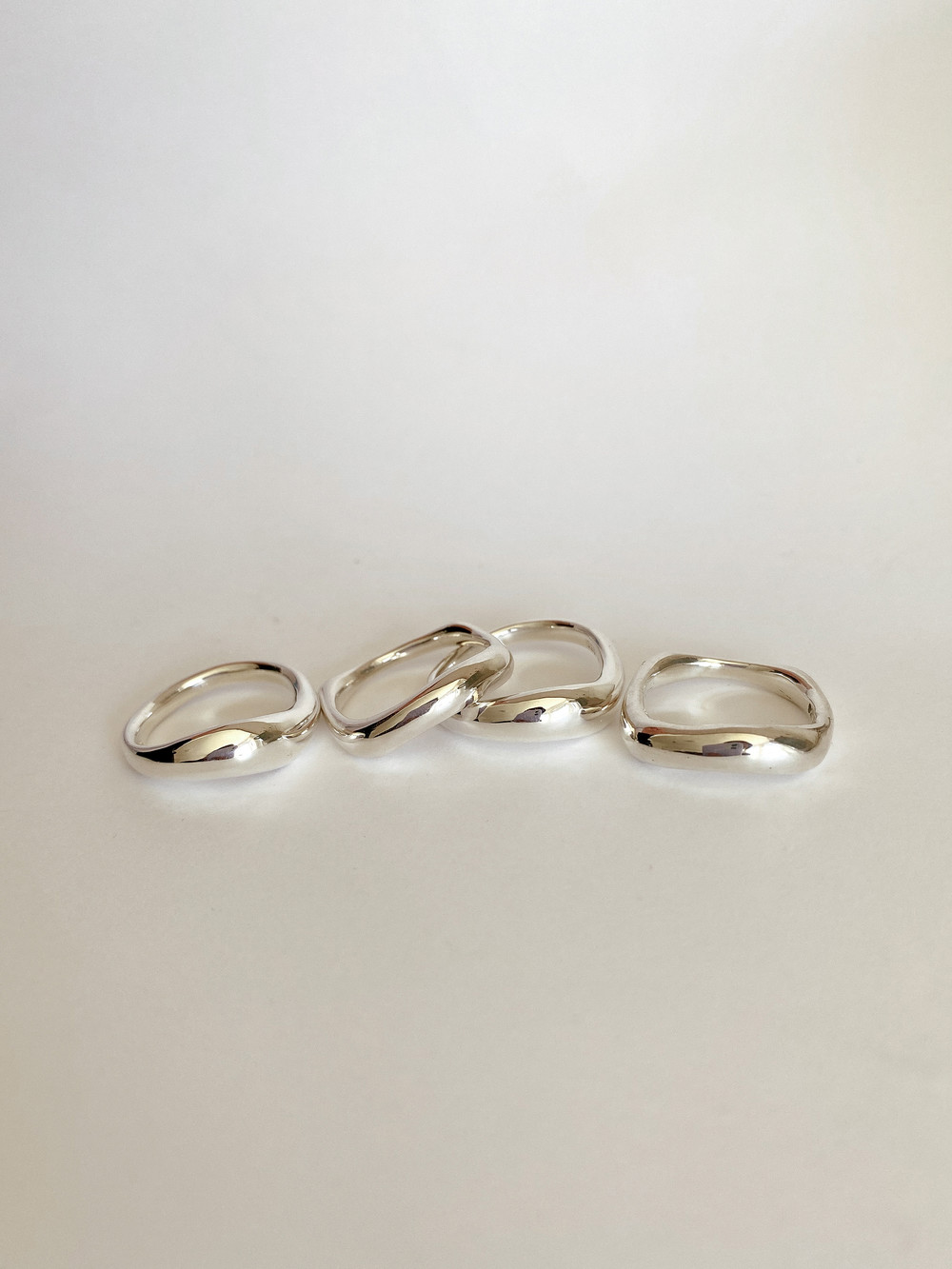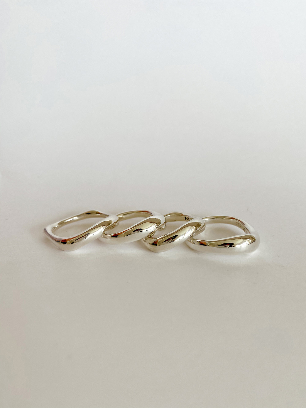 함께 연출된 얇은 반지는 Light Round and Square Rings Set입니다.