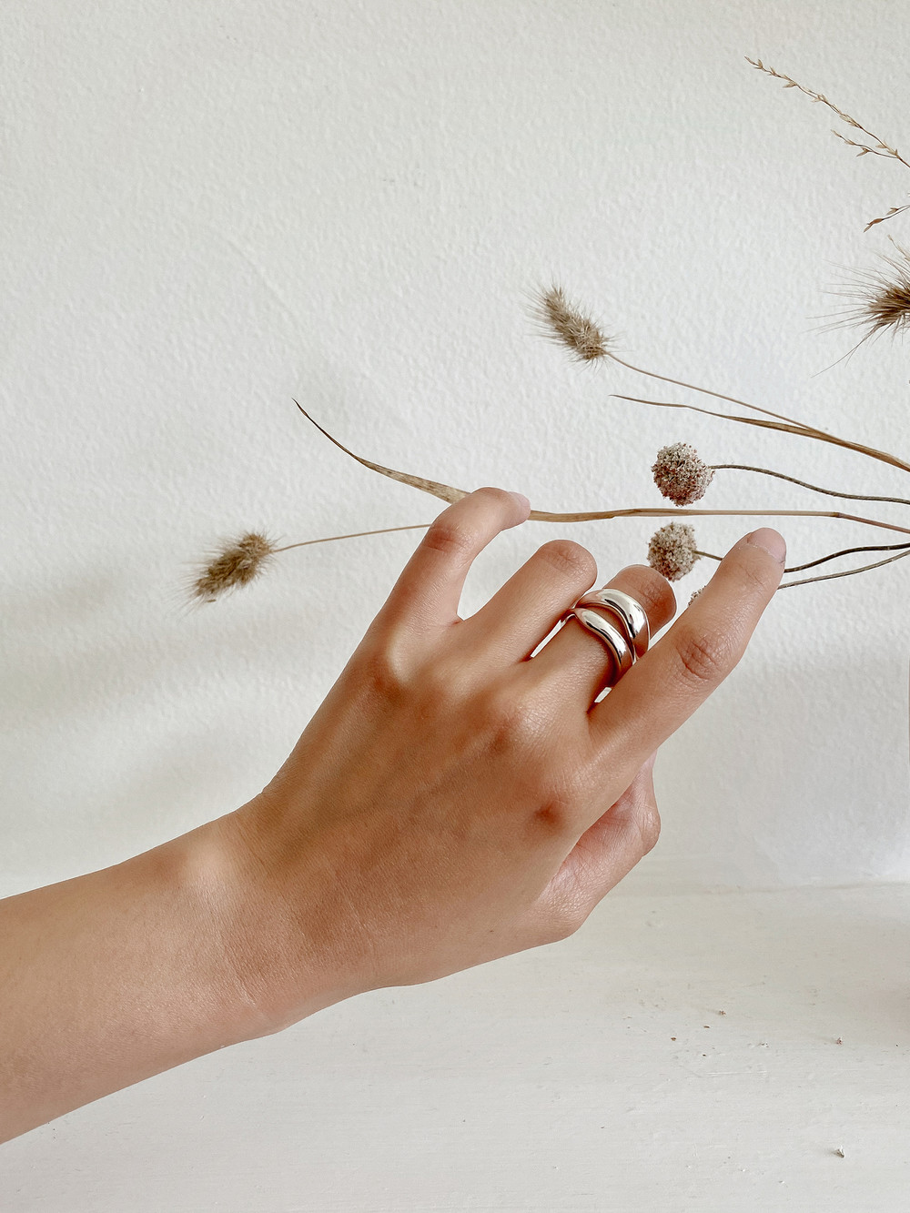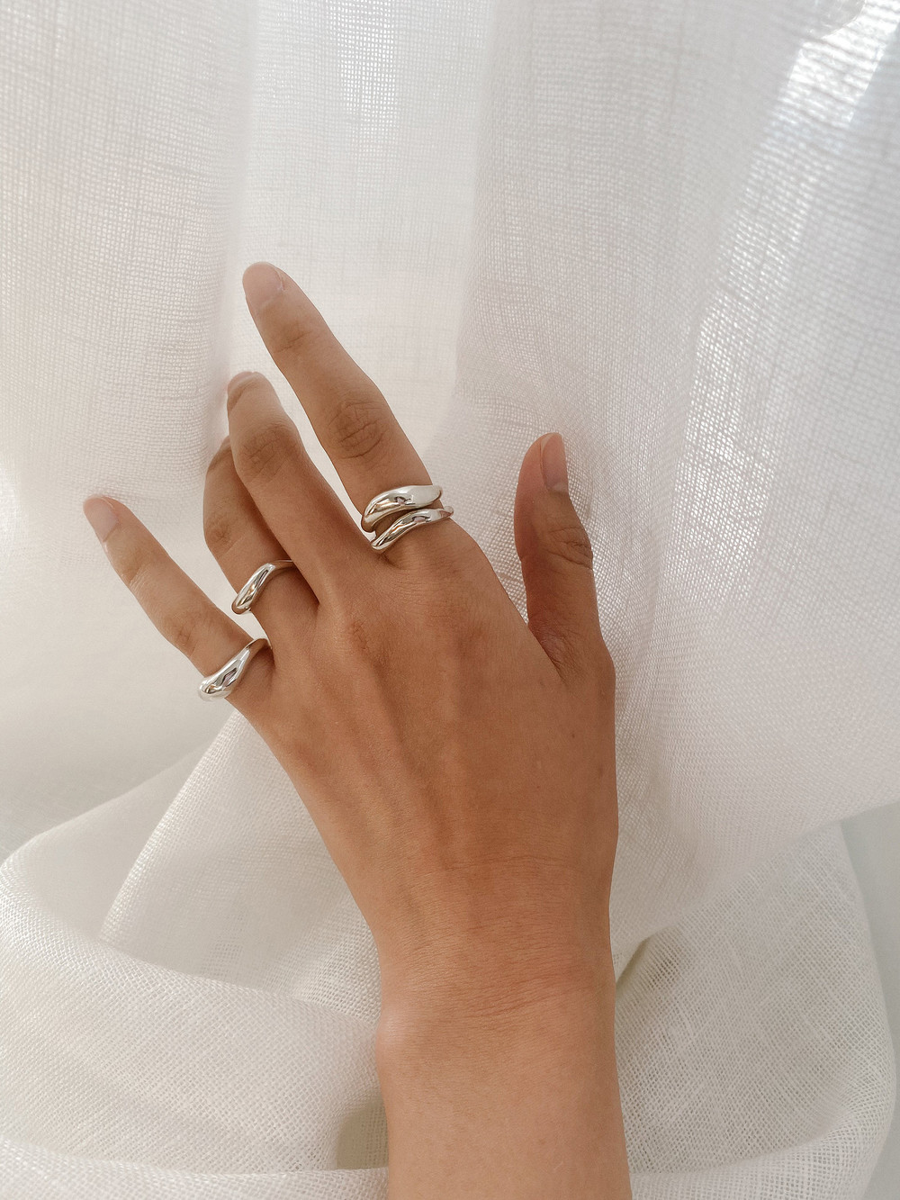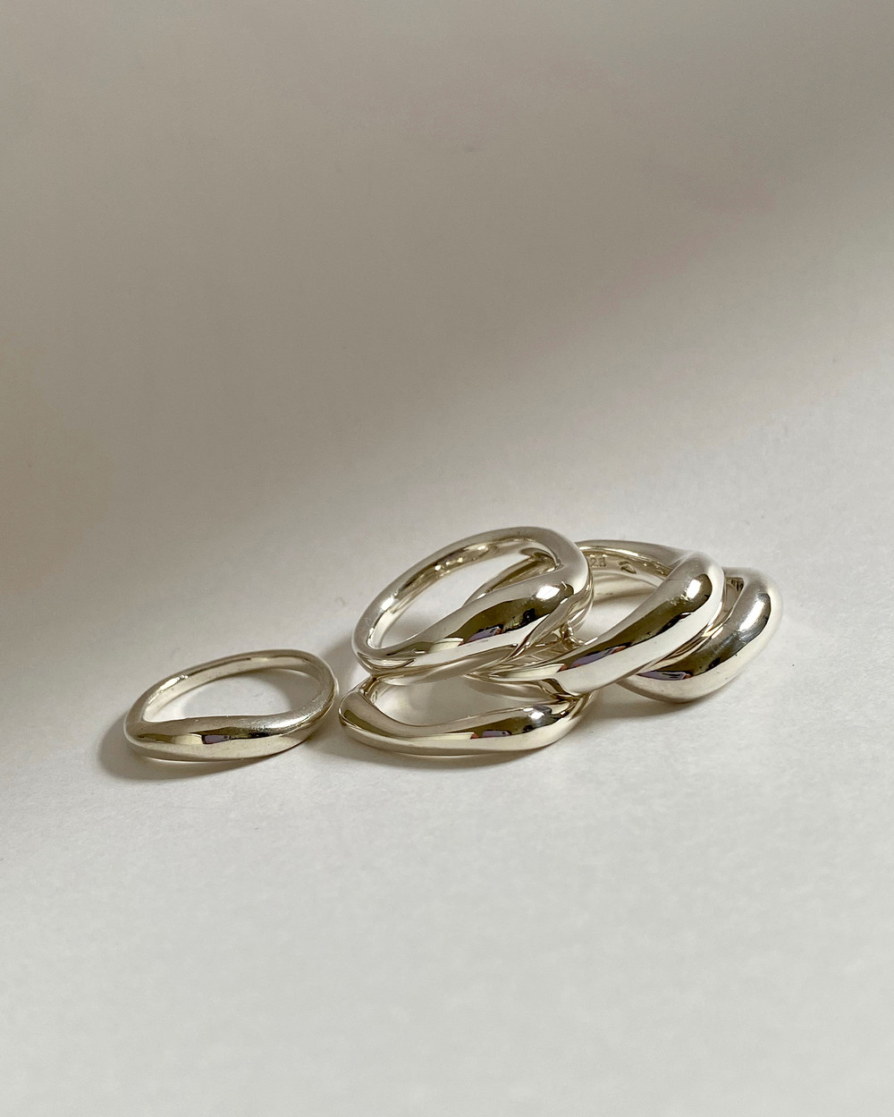 함께 연출된 얇은 반지는 Light Round and Square Rings Set입니다.