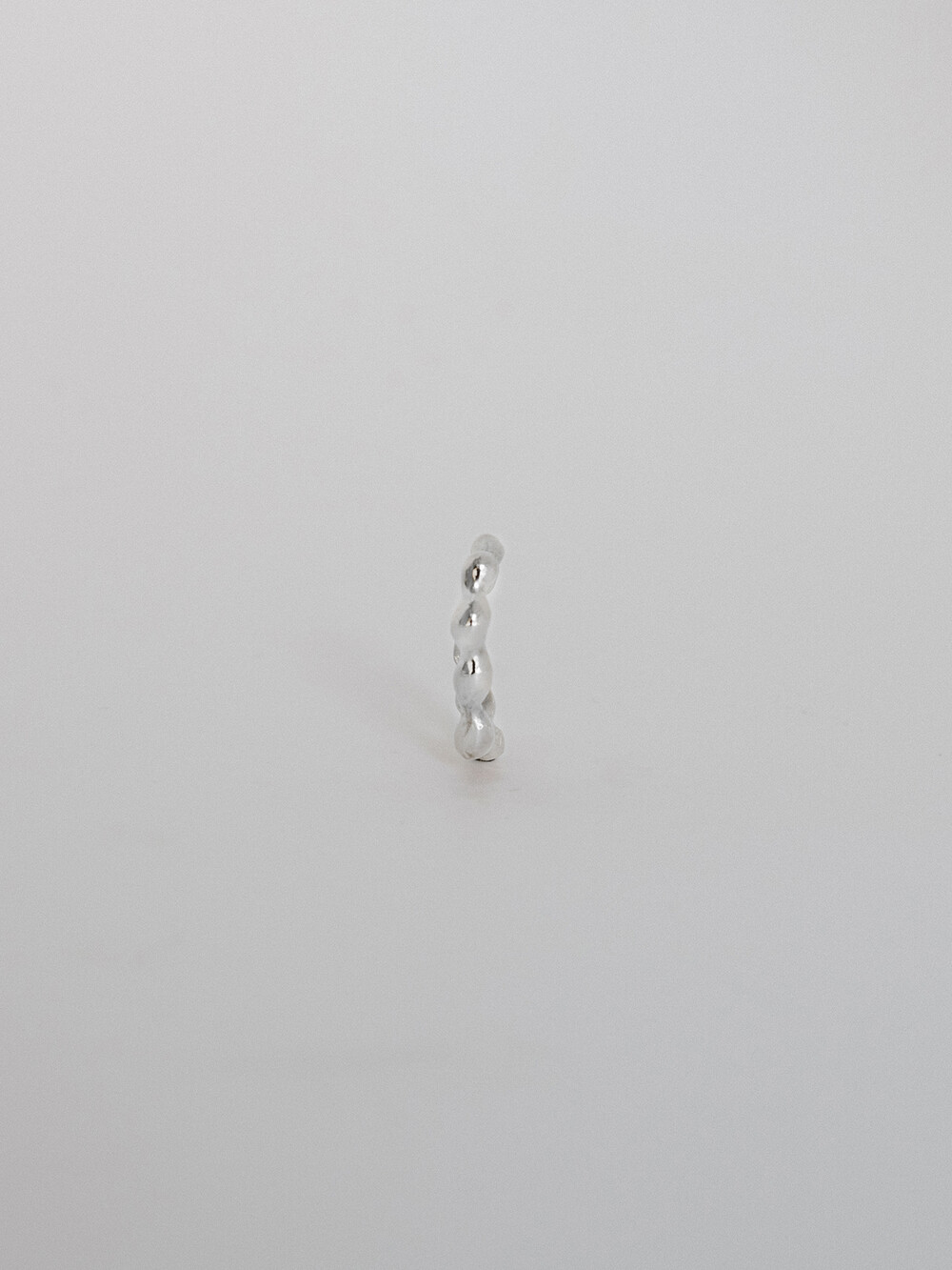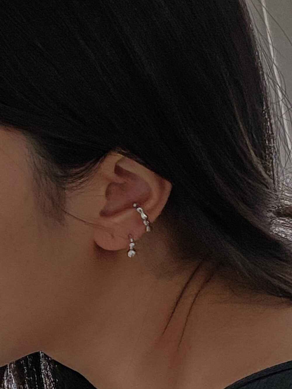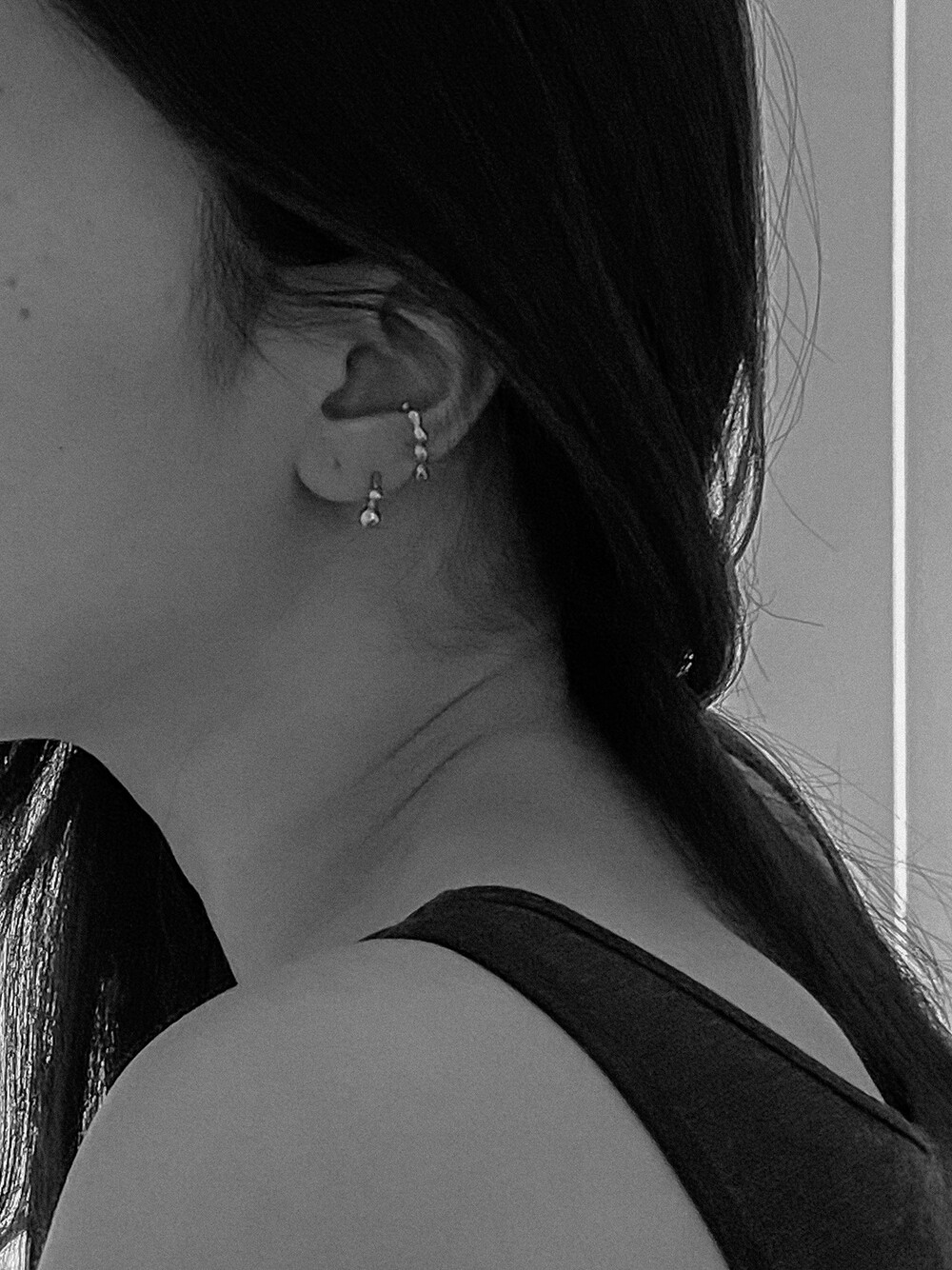 비오고 갠 뒤 이슬이 방울방울 매달려 있는 모습을 상상하며 만든 귀걸이 입니다. 유기적인 이슬이 모여 하나의 선을 만들고 동그란 방울들이 빛을 여러방향으로 반사해 더욱 반짝거립니다. 편안하고 가벼워 착용감이 좋습니다.