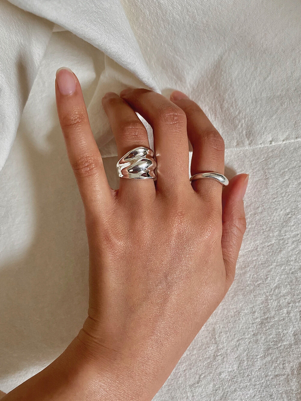 잔잔한 파도가 밀려오는듯 부드럽게 곡선이 흐르는 반지입니다. 솔리드 실버의 적당한 무게감과 볼드한 디자인으로 부드러운 강인함을 표현하였습니다. 오랫동안 착용해도 불편함이 없도록 손가락을 착용감이 편안 하도록 디자인 되었습니다.