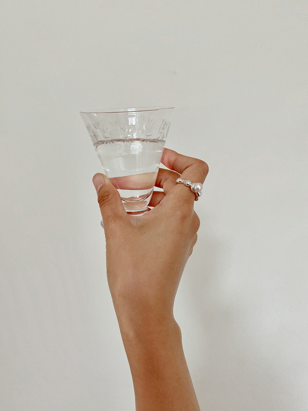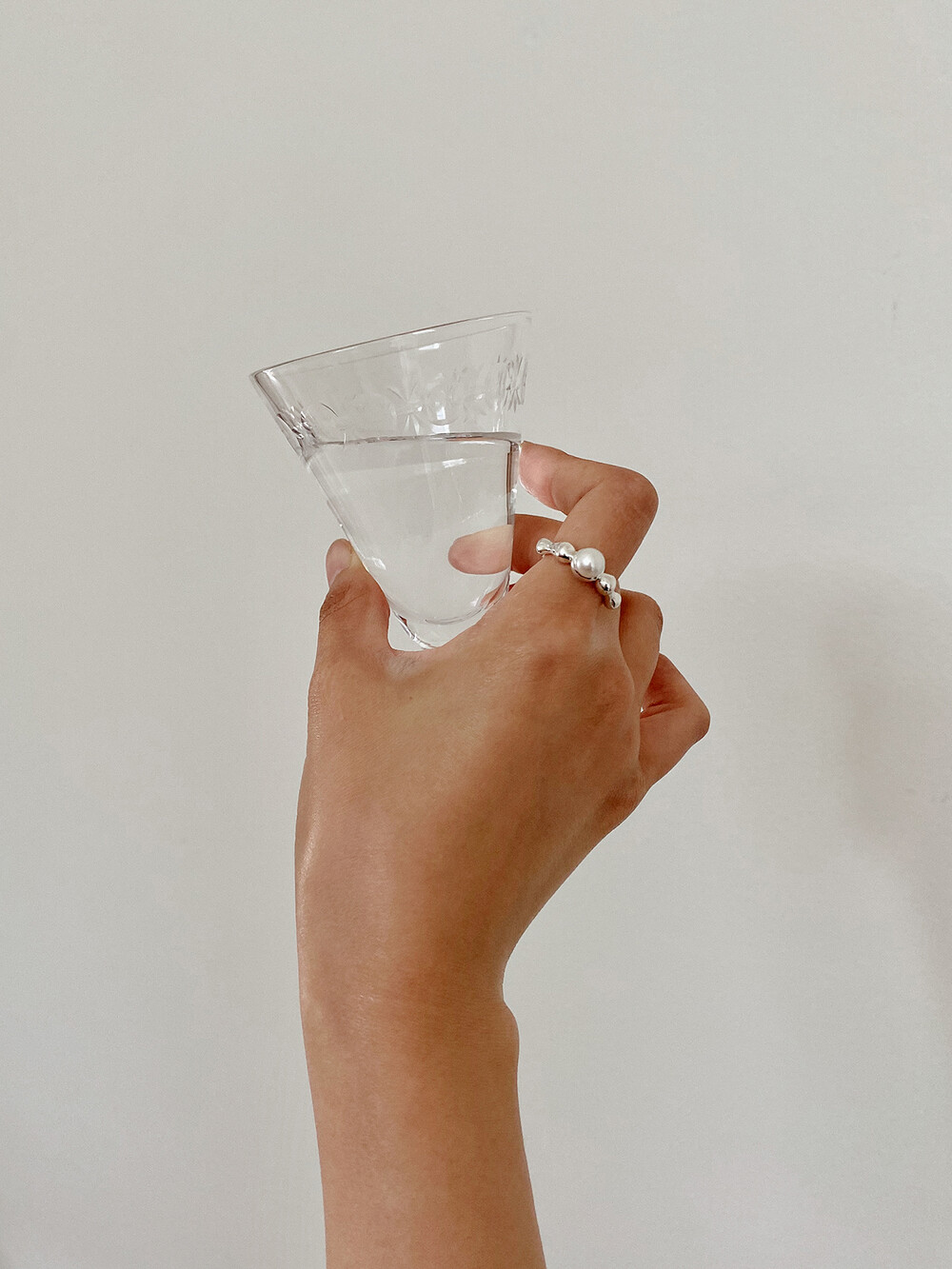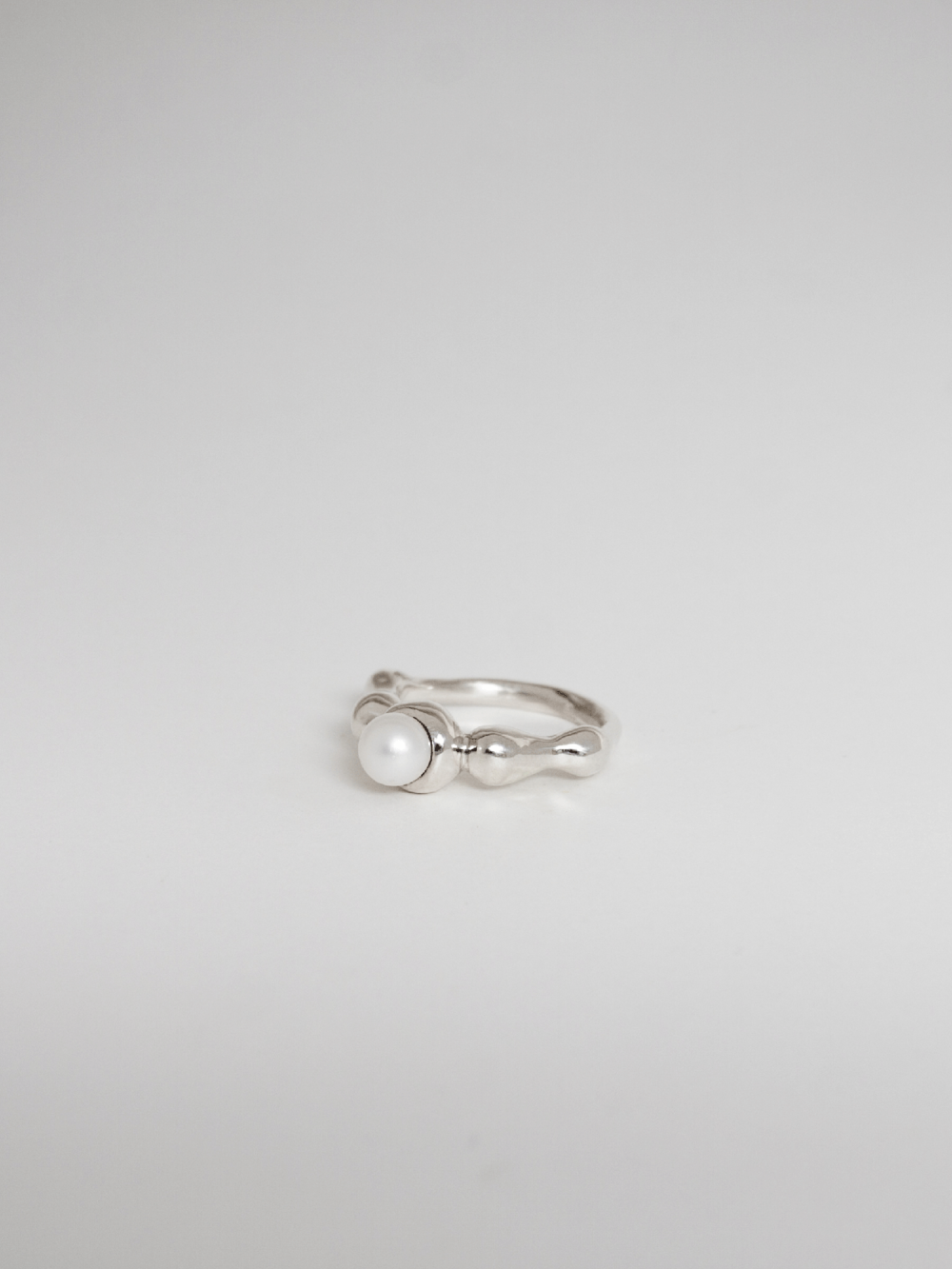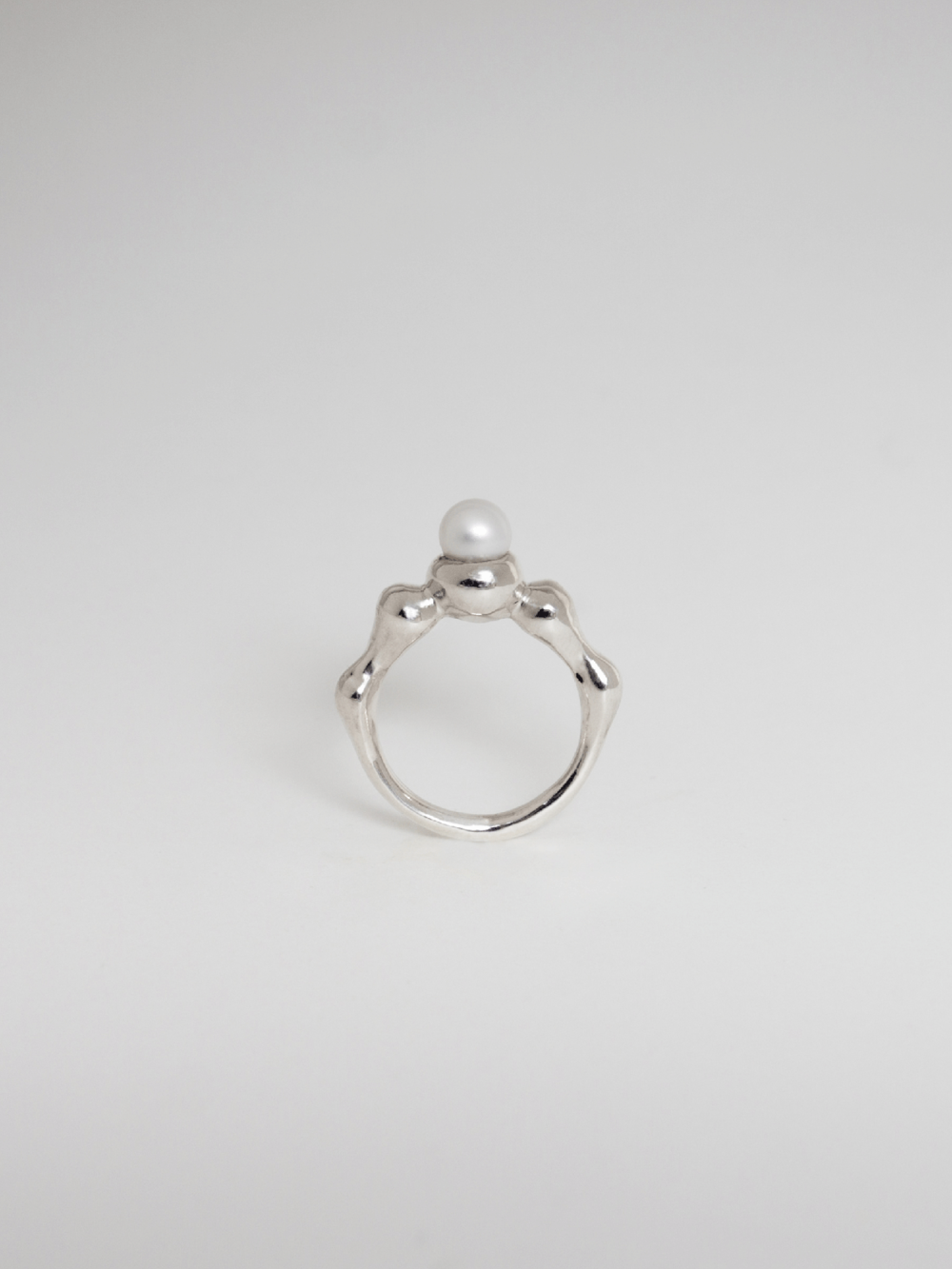동그랗게 솟은 작은 동산들을 멀리서 바라본 모습에서 영감을 받은 디자인입니다. 유기적인 모양의 동그란 모양이 손가락을 감싸고 가운데 동그란 진주가 그 정상을 만들어냅니다.