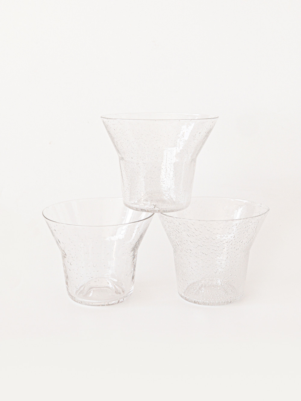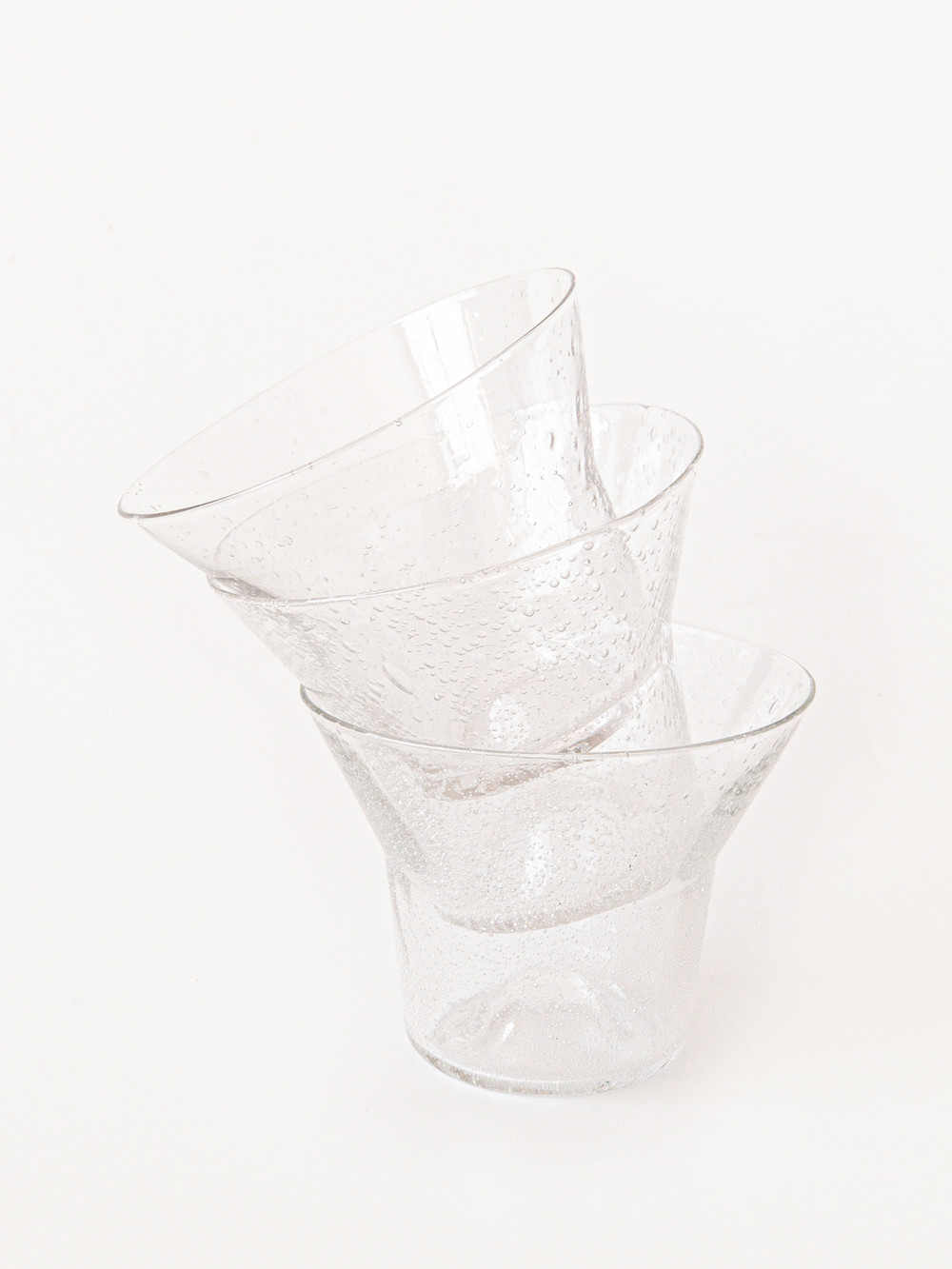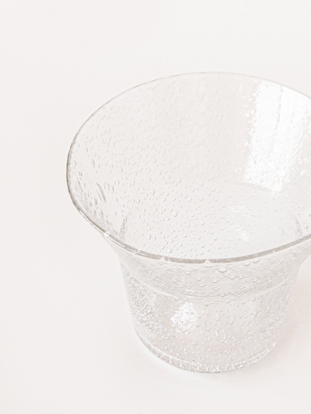 무수한 기포를 볼 수 있는 재활용 유리로 만들어진 유리잔(S)입니다. 전통적인 터키의 찻잔과 샐러드 보울의 형태를 모던하게 해석한 제품으로 전통 터키 유리 가공 기법으로 제작되었습니다. 전체적으로 불규칙하게 만들어진 형태와 그 안의 수많은 기포가 감상하는 재미와 소장가치를 높혀줍니다. 물, 스파클링 워터, 차, 맥주, 와인 등을 담아 다양하게 활용해보세요. 기포 덕분에 음료를 더욱 청량한 기분으로 즐기실 수 있습니다. 제품마다 기포의 양이나 모양이 모두 다른 세상에 오직 하나뿐인 잔을 소장하는 즐거움을 느껴보세요. 잔은 랜덤으로 발송됩니다.