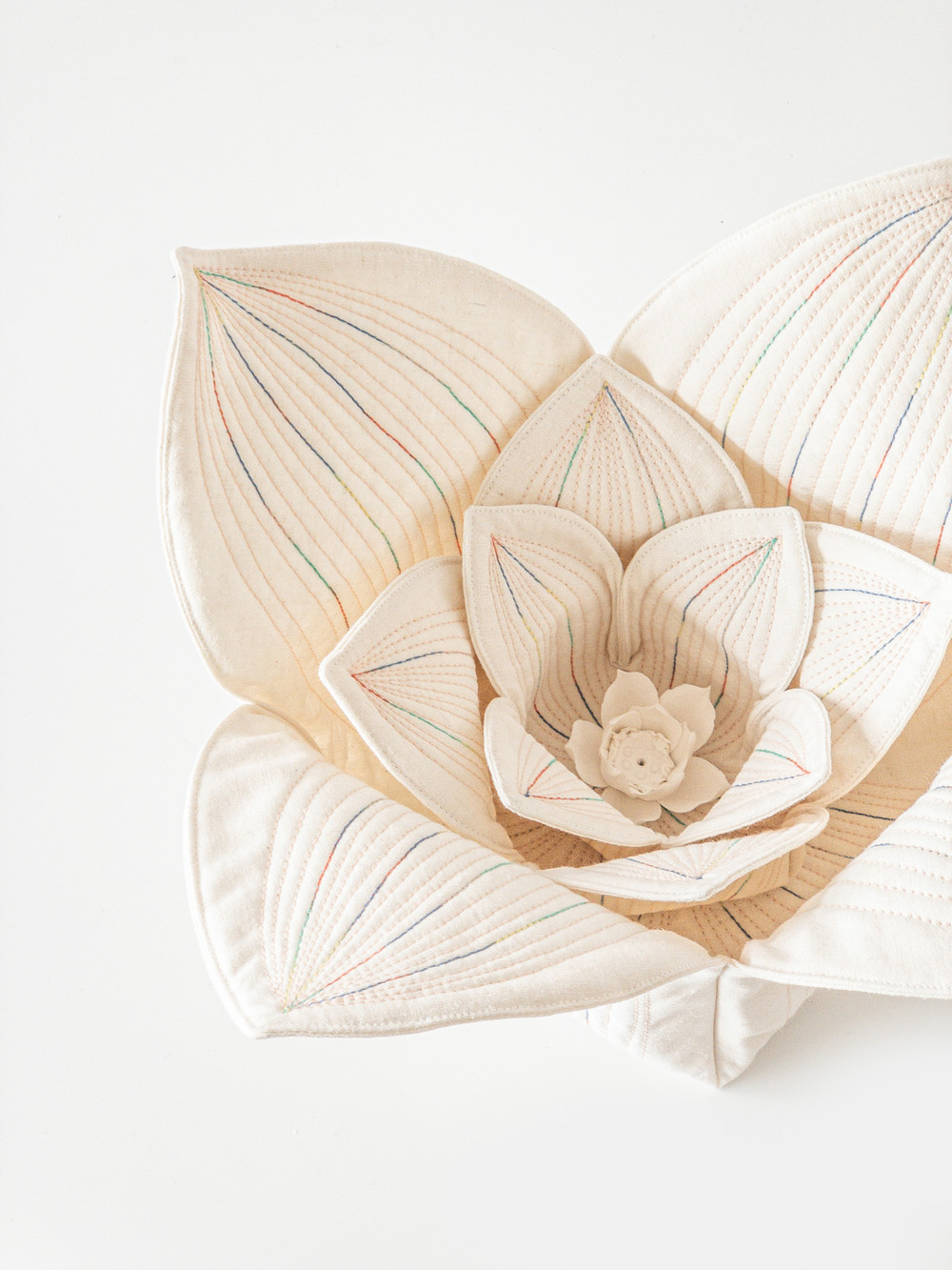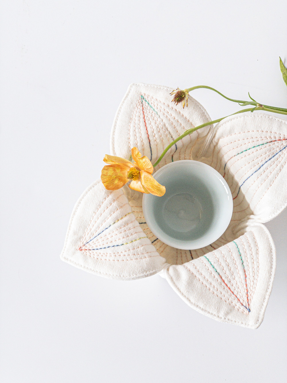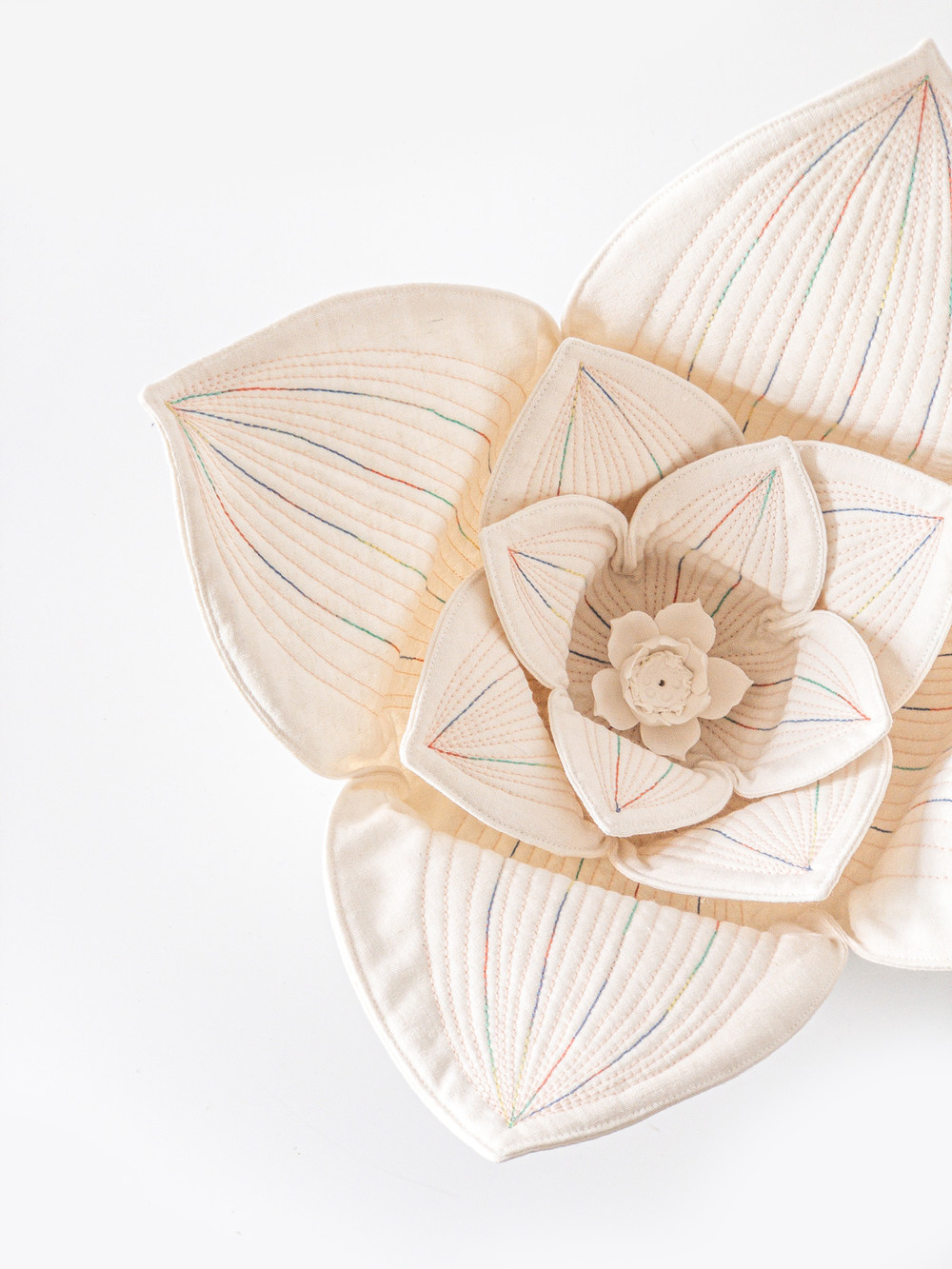뵤량의 김보람 작가는 한국의 전통 소재 및 전통 누빔 기법을 활용하여 공예품을 만듭니다. 뵤량의 누비꽃 시리즈는 꽃잎 모양을 전통 누비 방식을 더해 현대적으로 재해석한 라인으로, 2018년과 2019년 우수공예품으로 선정되었습니다. '꽃'이라는 매개체를 통해 전통 누빔을 현대에 다시 아름답게 꽃피웁니다.