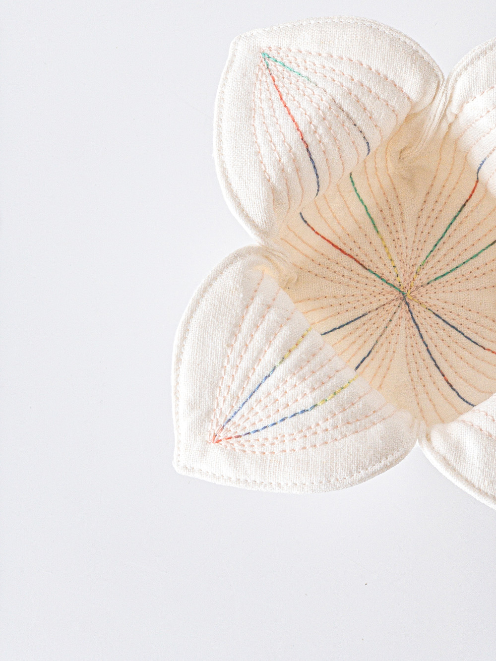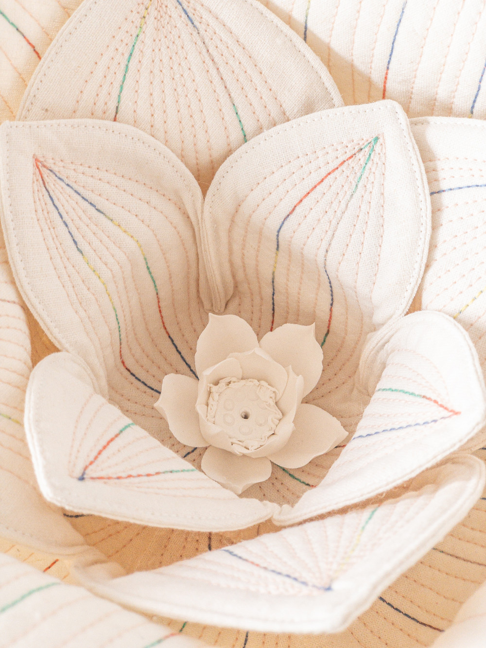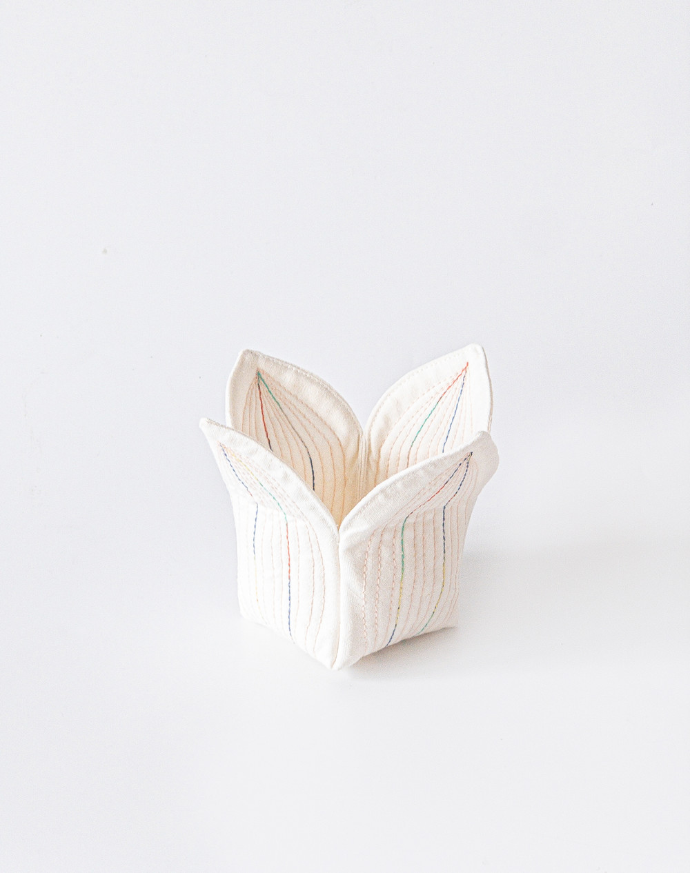 뵤량의 연꽃 모양 누비 바구니(S)입니다. 전통 누비 기법을 모던하게 재해석한 제품으, 원단과 원단 사이에 솜을 넣고 그 위에 재봉틀로 선을 끊이지 않게 촘촘하게 이어 누빔과 꽃잎의 결을 완성합니다. S 사이즈는 아주 작은 사이즈로 아끼는 잔 하나를 넣어 보관하거나, 일상에서 잃어버리기 쉬운 반지,귀걸이 등 작고 귀중한 물건들을 넣어서 사용해보세요. 다른 사이즈들과 겹쳐 활용하시면 활짝 피어난 연꽃을 연상시켜 훌륭한 일상 속 오브제가 됩니다. 그 자체로도 선물용으로 좋으며, 바구니 속 작은 선물을 넣어 더욱 따뜻하고 소중한 마음을 전달하셔도 좋습니다.