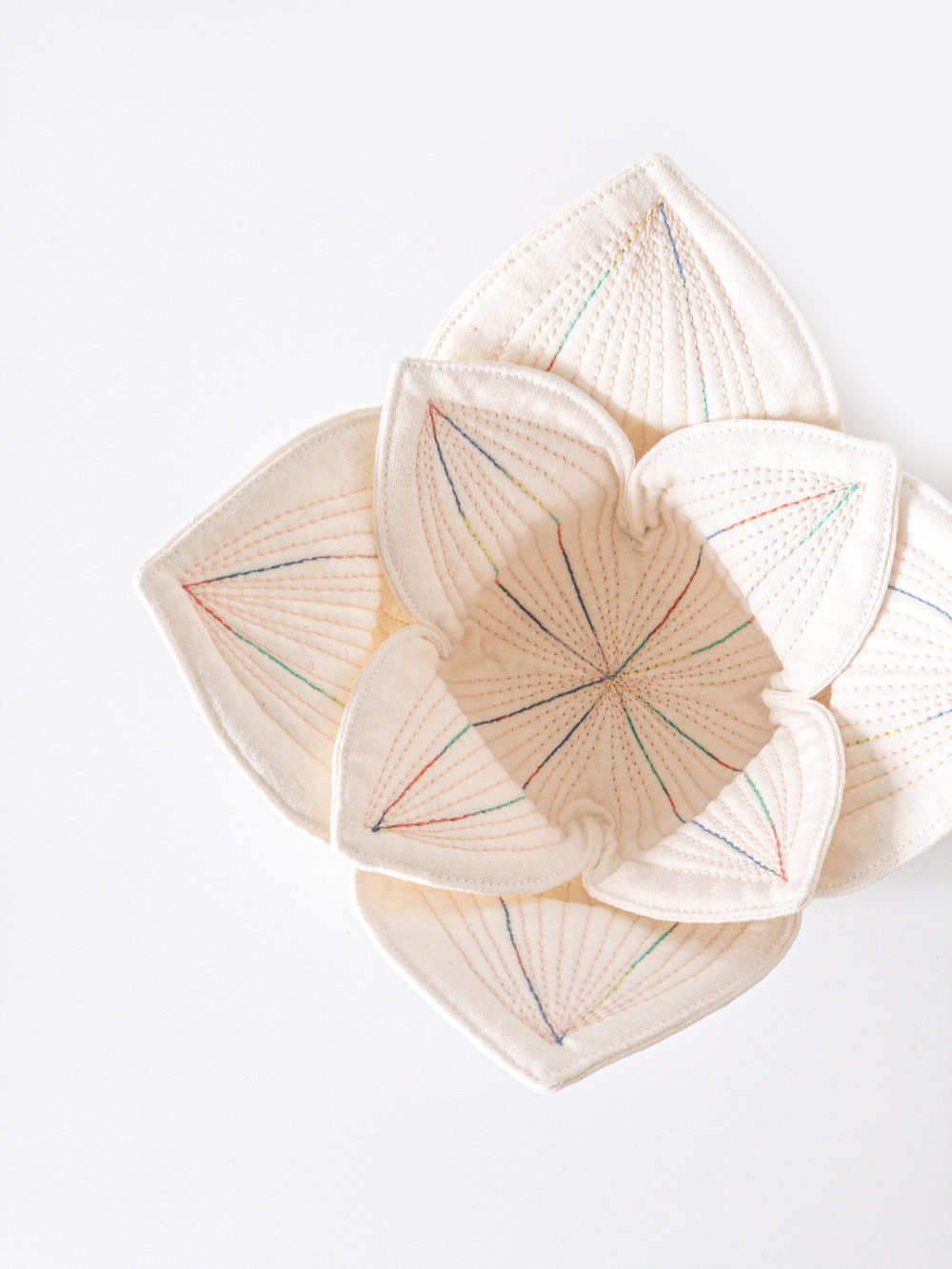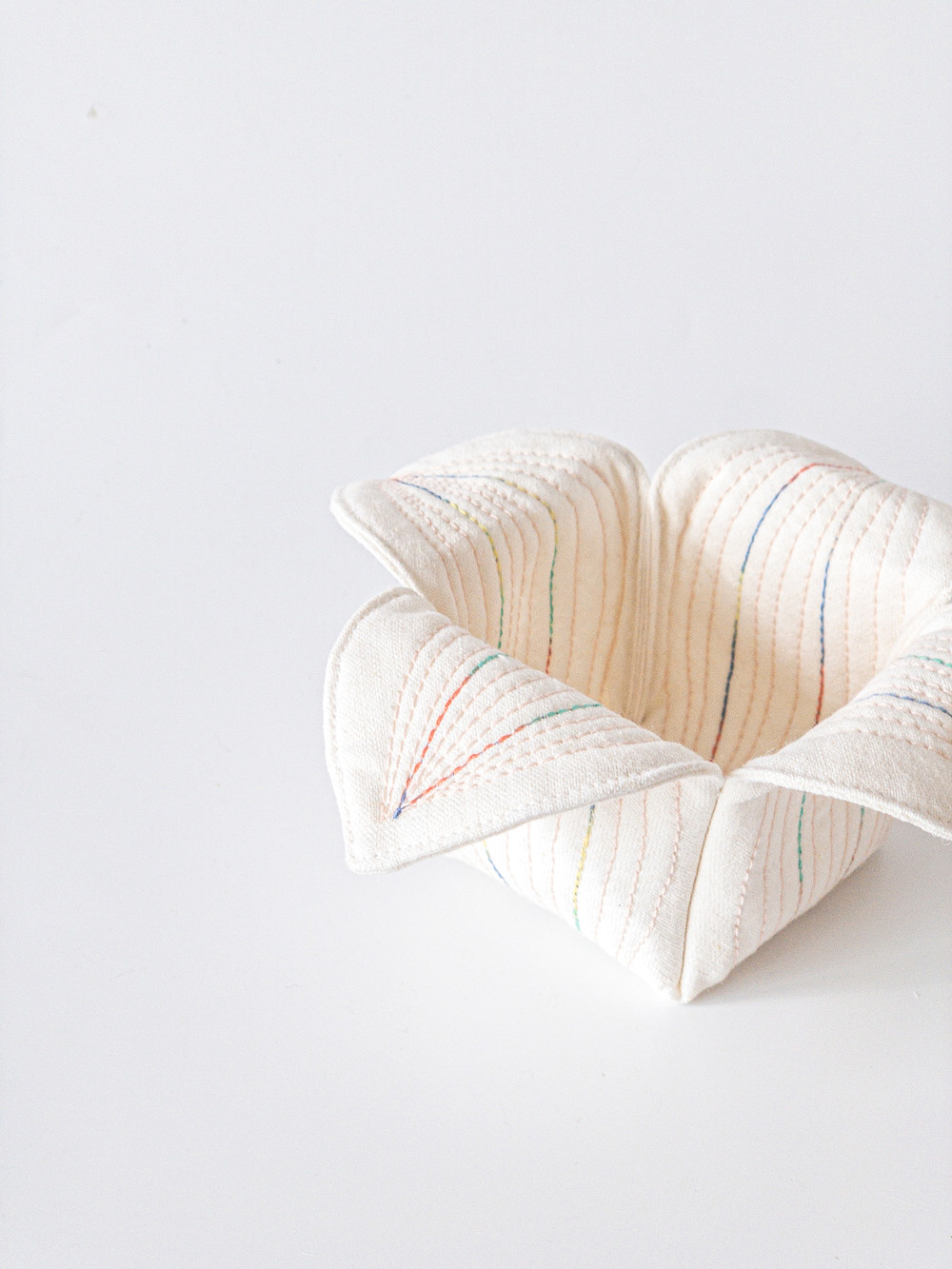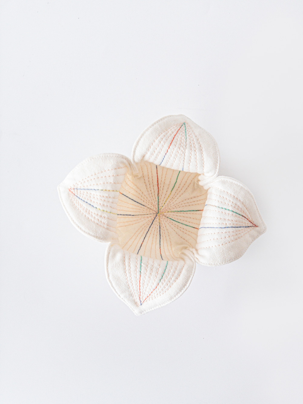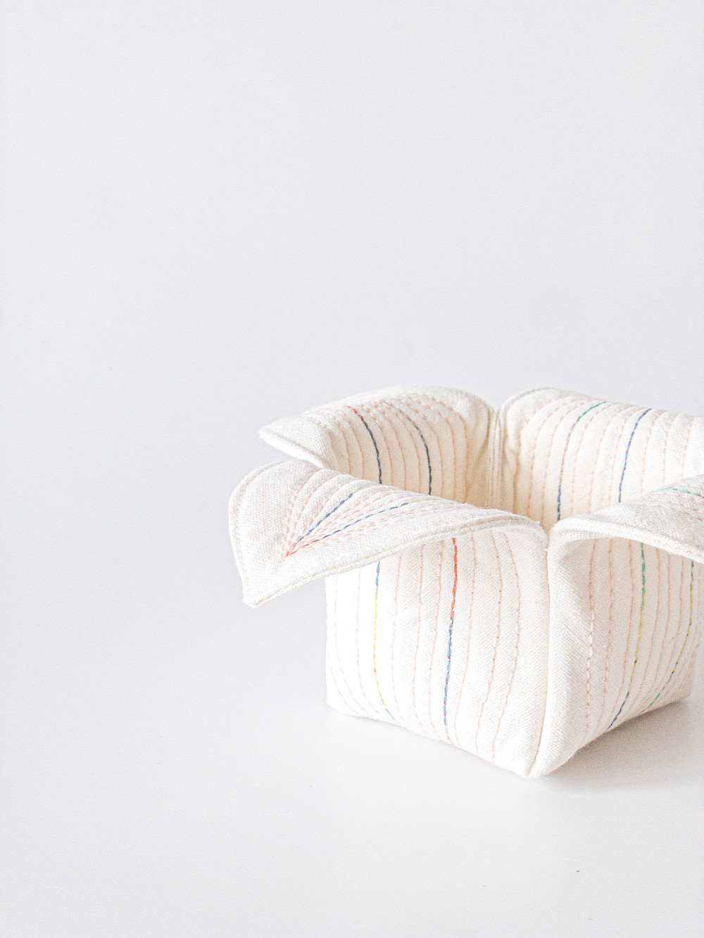 뵤량의 연꽃 모양 누비 바구니(S)입니다. 전통 누비 기법을 모던하게 재해석한 제품으, 원단과 원단 사이에 솜을 넣고 그 위에 재봉틀로 선을 끊이지 않게 촘촘하게 이어 누빔과 꽃잎의 결을 완성합니다. S 사이즈는 아주 작은 사이즈로 아끼는 잔 하나를 넣어 보관하거나, 일상에서 잃어버리기 쉬운 반지,귀걸이 등 작고 귀중한 물건들을 넣어서 사용해보세요. 다른 사이즈들과 겹쳐 활용하시면 활짝 피어난 연꽃을 연상시켜 훌륭한 일상 속 오브제가 됩니다. 그 자체로도 선물용으로 좋으며, 바구니 속 작은 선물을 넣어 더욱 따뜻하고 소중한 마음을 전달하셔도 좋습니다.