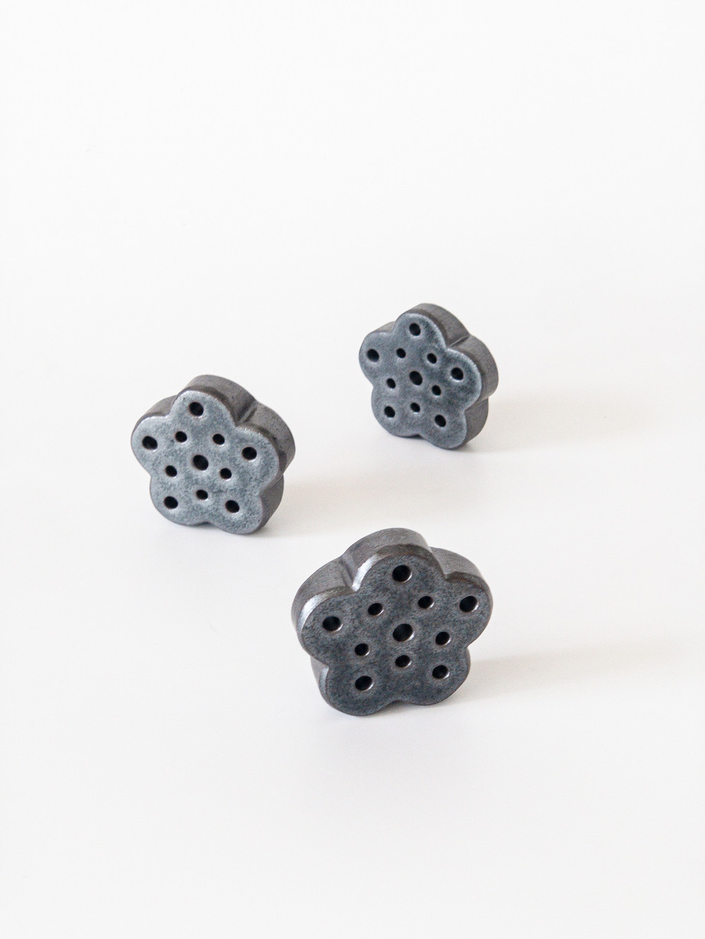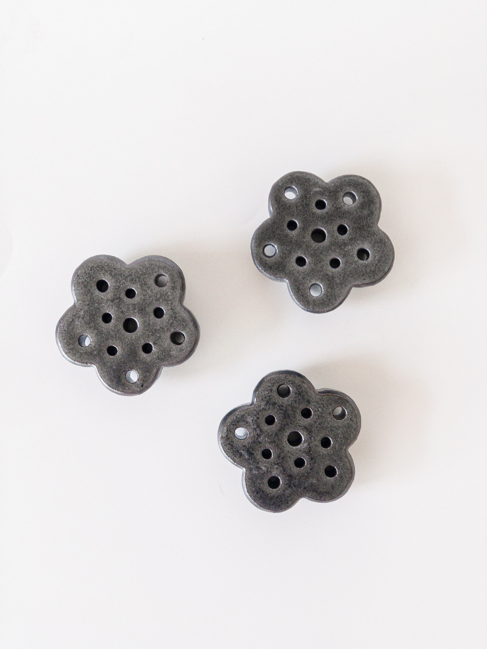 도자기로 만들어진 침봉입니다. 도자기에 작고 큰 구멍이 여러개 뚫려 있어 꽃을 편리하게 꽃을 수 있습니다. 뾰족한 쇠로 만들어진 침봉보다 훨씬 가벼우며 안전하게 꽃꽂이를 하실 수 있습니다. 또한 플로럴폼(오아시스)을 사용하지 않고 꽃을 꽃을 수 있는 친환경적인 제품입니다. 플로럴 폼은 실제로 발암물질을 포함하고 있으며, 하수구로 버려지는 플로럴 폼 조각들은 바다로 흘러들어가 바다를 오염시키고 해양 생물의 생태계를 파괴하게 됩니다. 생활의 작은 변화와 실천이 지구 환경을 보호하는데에 큰 도움이 됩니다.