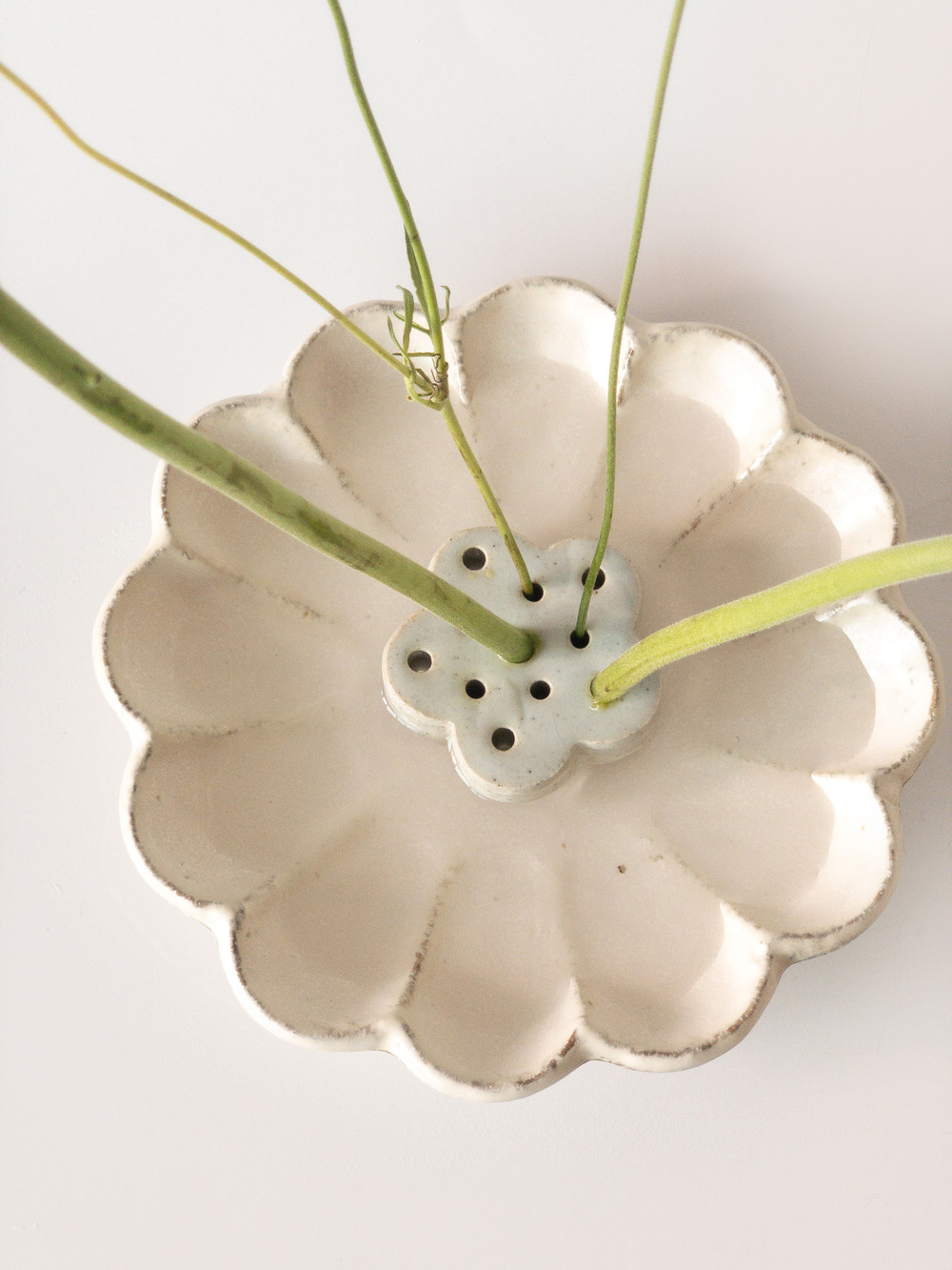 도자기로 만들어진 침봉입니다. 도자기에 작고 큰 구멍이 여러개 뚫려 있어 꽃을 편리하게 꽃을 수 있습니다. 뾰족한 쇠로 만들어진 침봉보다 훨씬 가벼우며 안전하게 꽃꽂이를 하실 수 있습니다. 또한 플로럴폼(오아시스)을 사용하지 않고 꽃을 꽃을 수 있는 친환경적인 제품입니다. 플로럴 폼은 실제로 발암물질을 포함하고 있으며, 하수구로 버려지는 플로럴 폼 조각들은 바다로 흘러들어가 바다를 오염시키고 해양 생물의 생태계를 파괴하게 됩니다. 생활의 작은 변화와 실천이 지구 환경을 보호하는데에 큰 도움이 됩니다.