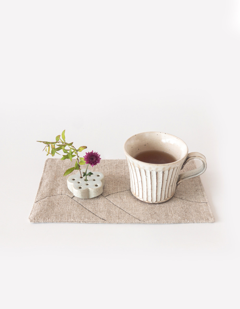 함께 연출된 제품은 [Heewone] Linen Tea Mat와 Natural Round Cup입니다.