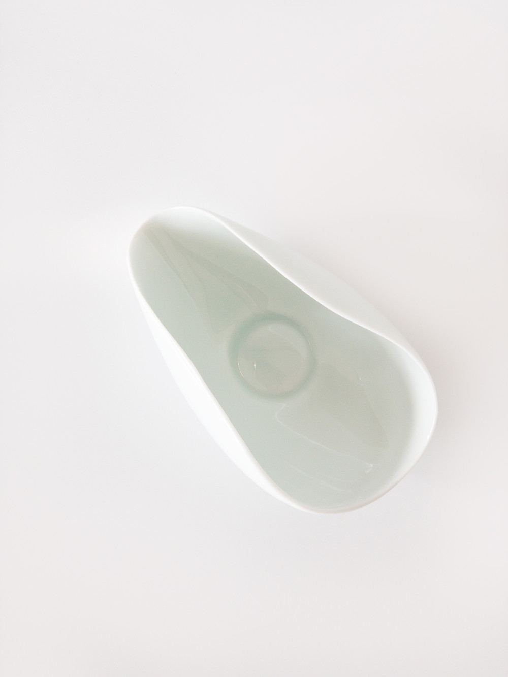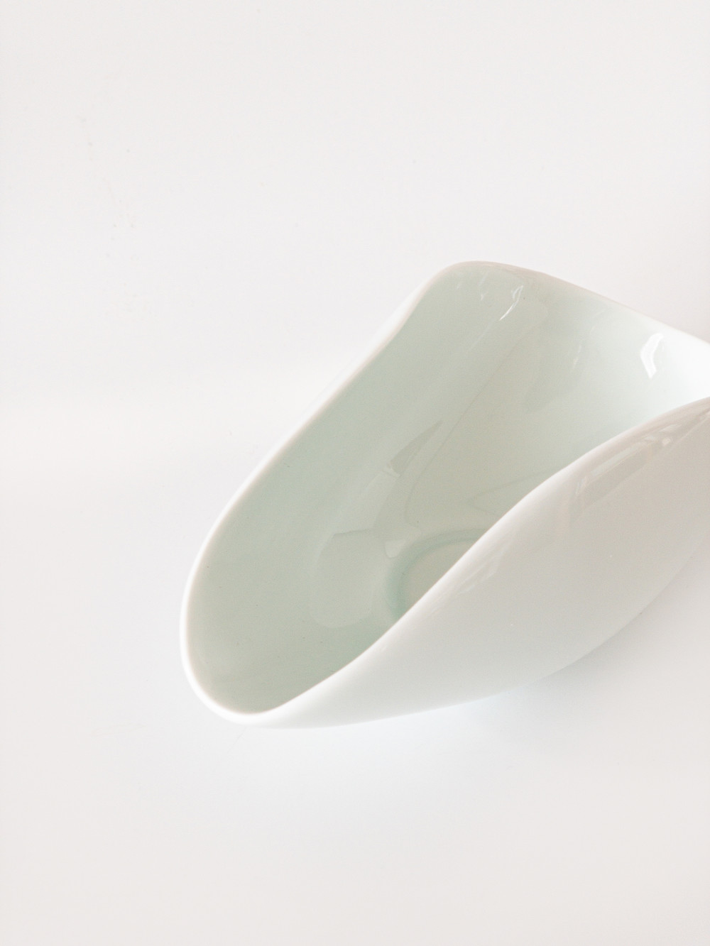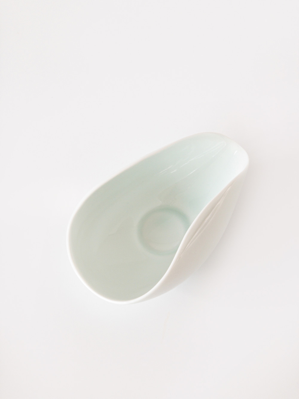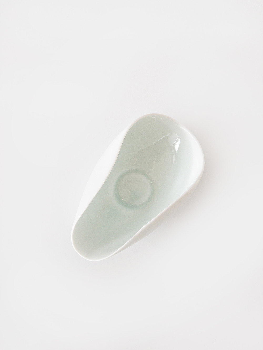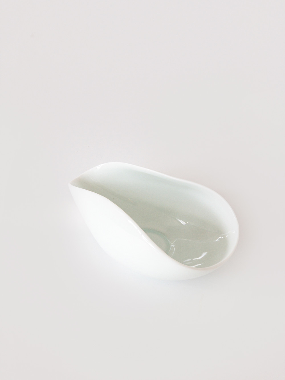 전체적으로 푸른 빛이 도는 다하입니다. 찻잎을 우리기 전에 다하에 덜어내어 찻잎을 감상하실 수 있습니다. 부드럽게 곡이 졌으며 전체적으로 얇고 섬세하게 만들어져 고급스러운 인상을 줍니다.