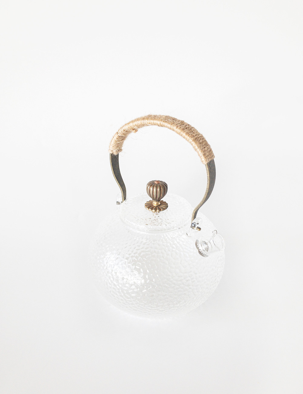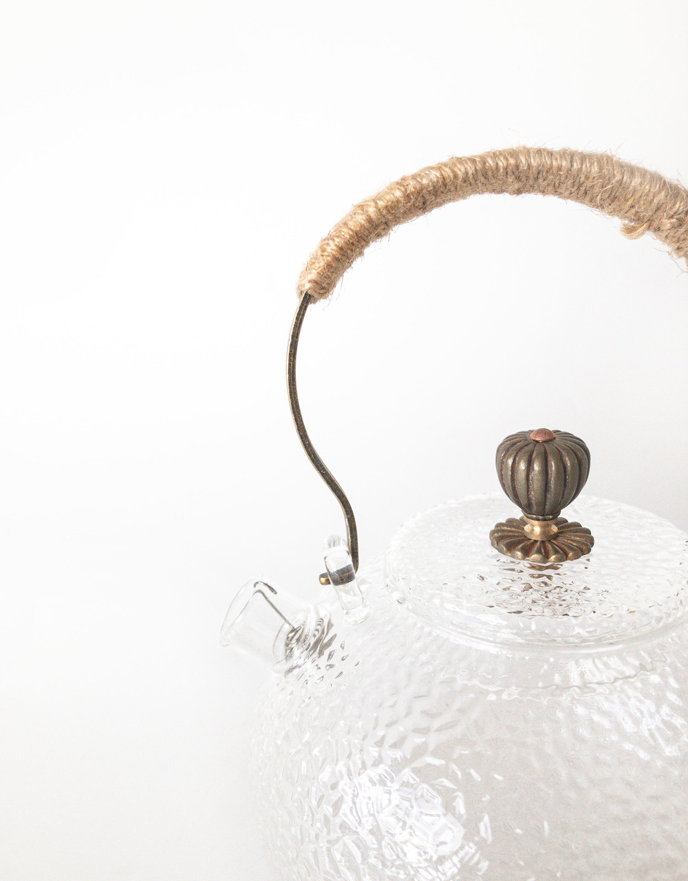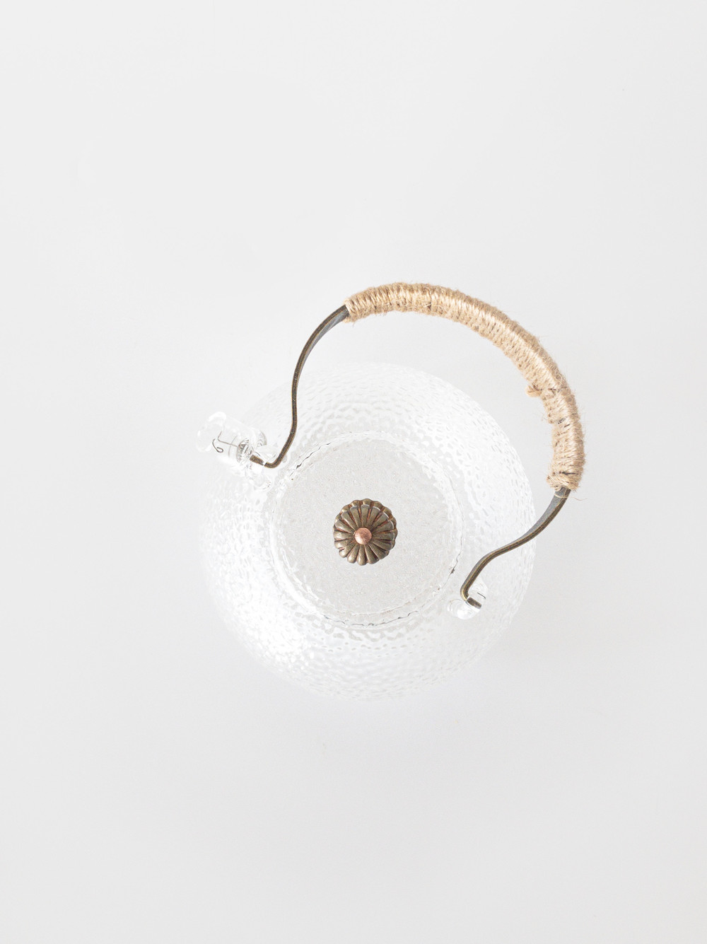 빈티지한 무드가 매력적인 고급유리다관입니다. 납작하면서도 볼륨감 있는 형태가 독특하며 귀엽습니다. 유리표면에 전체적으로 멜론의 무늬와도 닮은 요철이 있어 차를 따랐을 때 수색이 더욱 빛나 아름다우며, 구리로 만들어진 뚜껑과 손잡이 부분에 엔틱 처리가 되어있어 더욱 고급스럽고 멋스럽습니다. 손이 직접적으로 닿는 부위에는 노끈이 감겨있어 편리하게 사용할 수 있습니다. 주둥이 부분에 코일형태의 거름망이 있어 찻잎을 걸러주어 별도의 거름망 없이도 사용이 가능합니다. 시원스럽게 출수가 되며 절수력 또한 좋습니다. 직접 화기에는 사용이 불가능하니 유의해주세요. 입고시마다 구리의 컬러감에 조금씩 차이가 생길 수 있습니다.