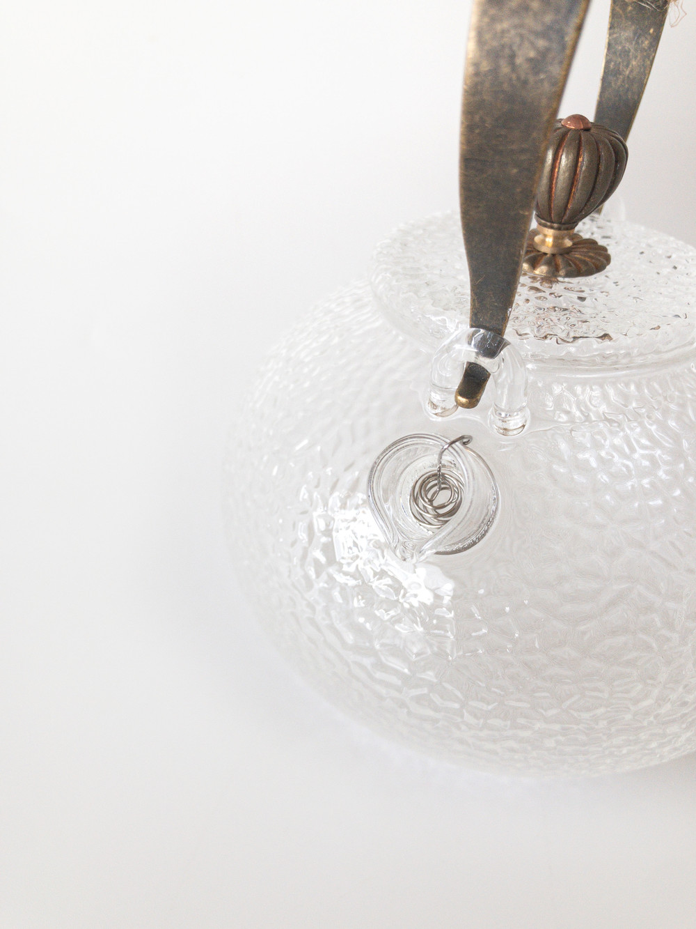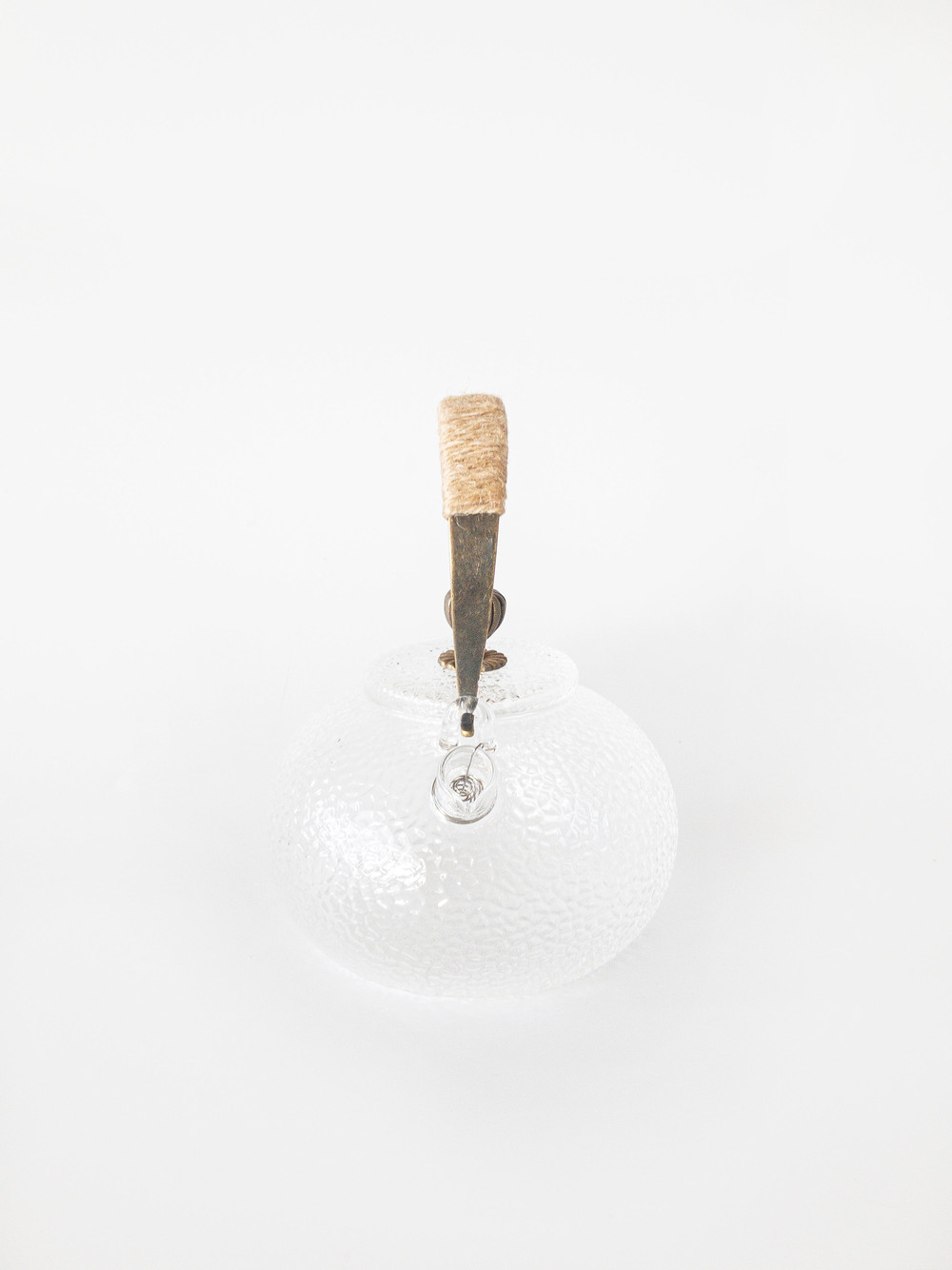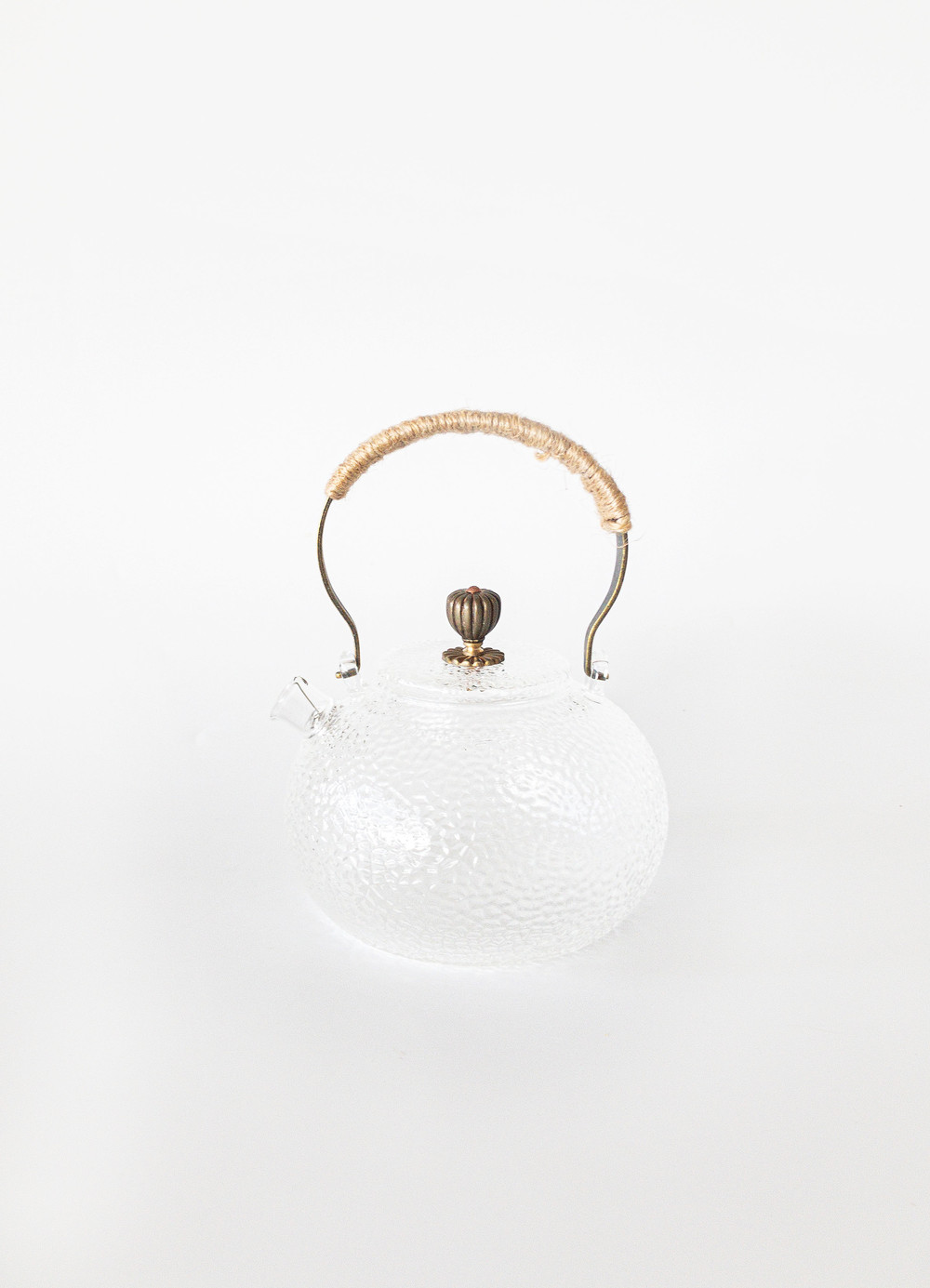 빈티지한 무드가 매력적인 고급유리다관입니다. 납작하면서도 볼륨감 있는 형태가 독특하며 귀엽습니다. 유리표면에 전체적으로 멜론의 무늬와도 닮은 요철이 있어 차를 따랐을 때 수색이 더욱 빛나 아름다우며, 구리로 만들어진 뚜껑과 손잡이 부분에 엔틱 처리가 되어있어 더욱 고급스럽고 멋스럽습니다. 손이 직접적으로 닿는 부위에는 노끈이 감겨있어 편리하게 사용할 수 있습니다. 주둥이 부분에 코일형태의 거름망이 있어 찻잎을 걸러주어 별도의 거름망 없이도 사용이 가능합니다. 시원스럽게 출수가 되며 절수력 또한 좋습니다. 직접 화기에는 사용이 불가능하니 유의해주세요. 입고시마다 구리의 컬러감에 조금씩 차이가 생길 수 있습니다.