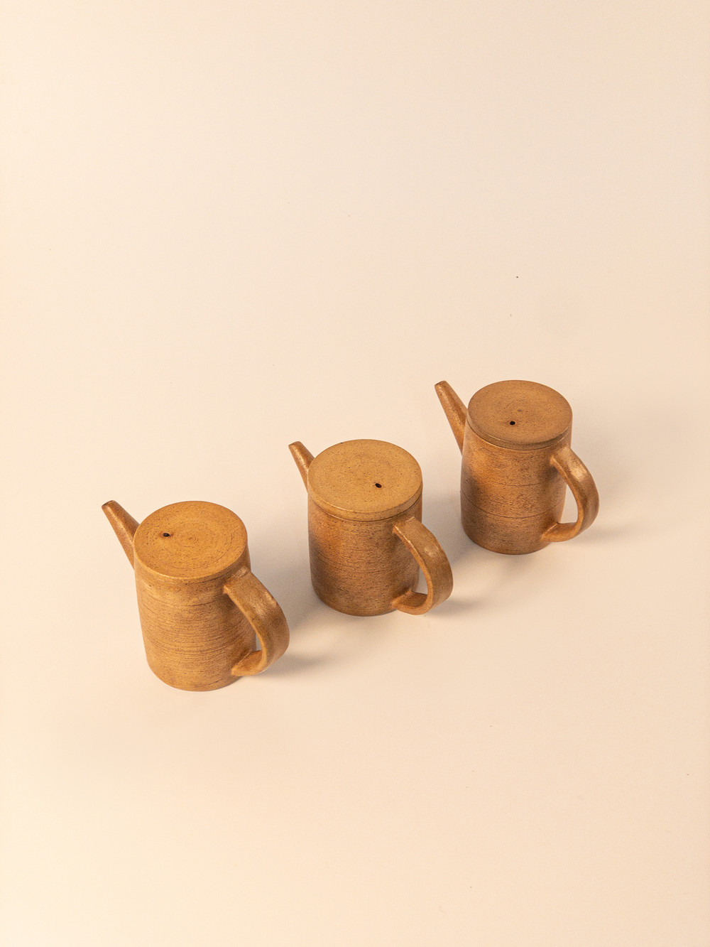 도예공방 섬김 김동건 작가의 옻칠을 한 다관입니다. 김동건 작가가 차도구의 가장 심플한 형태를 찾기 위해 연구하고 노력한 시리즈의 결과물로 전체적으로 군더더기 없는 심플한 디자인이 매력적입니다. 유약을 바르지 않고 재벌 소성된 기물에 옻칠을 얇게 4~5회 입히고 건조하기를 반복하며, 마지막으로 옻칠을 입히고 건조 후에 열처리 과정을 거쳐서 완성됩니다. 옻칠은 보존성이 높으며 향균 효과가 뛰어납니다. 뜨거운 물을 담았을 때 옻칠 특유의 향이 올라옵니다. 오랜 시간 양호하고 나면 향이 조금씩 사라집니다. 옻칠 다관의 특성상 담백한 맛과 향의 차보다는 발효차나 흑차 계열의 차를 마시는 것을 추천드립니다. 시간이 지날수록 옻칠도 함께 닳으며 엔틱한 느낌으로 조금씩 변화되는 것도 쓰임과 감상의 포인트가 됩니다. 페이지 하단에 핸드메이드 도자기 구매시 유의할 점을 꼭 숙지하시고 구입을 부탁드립니다.