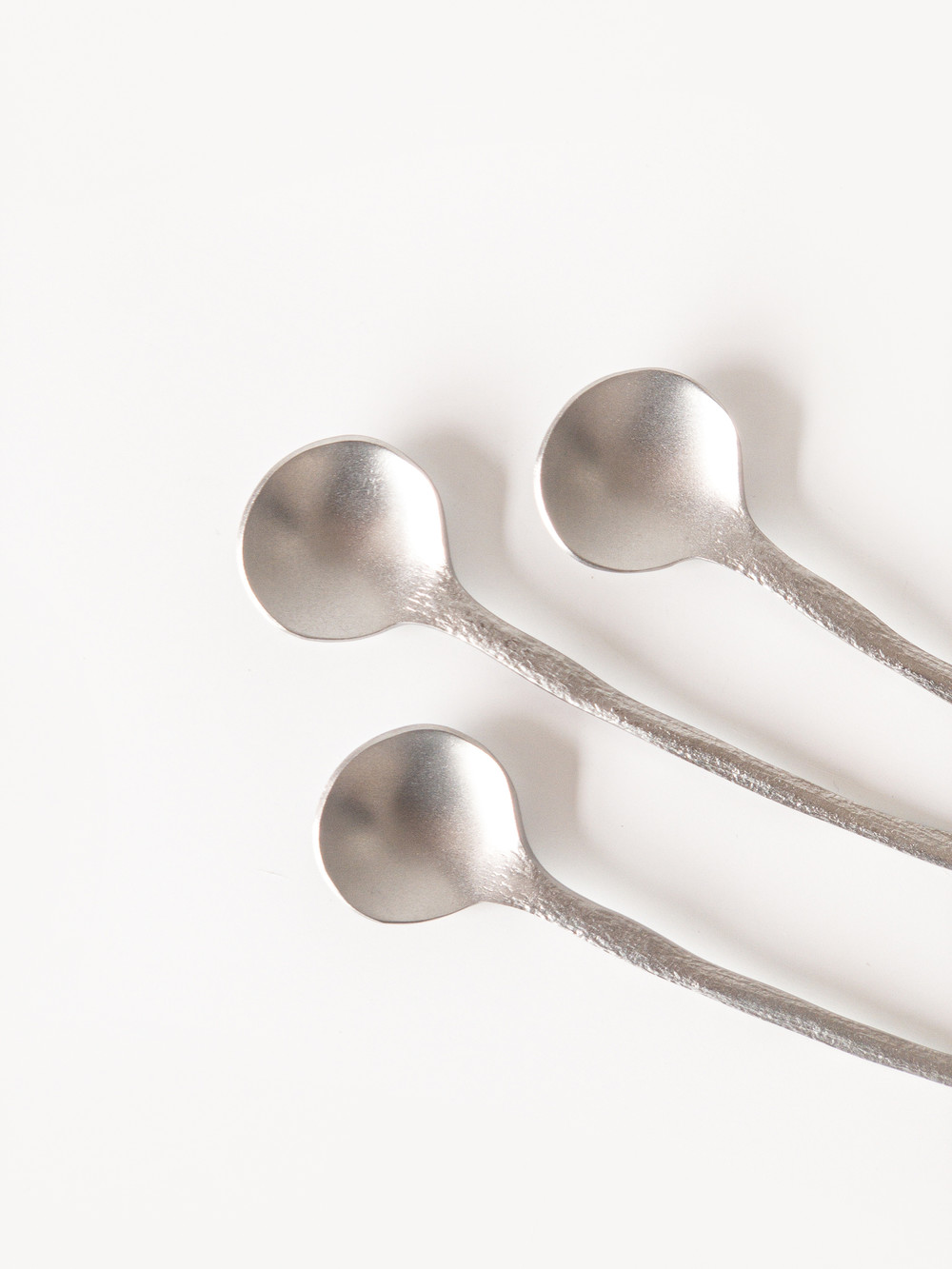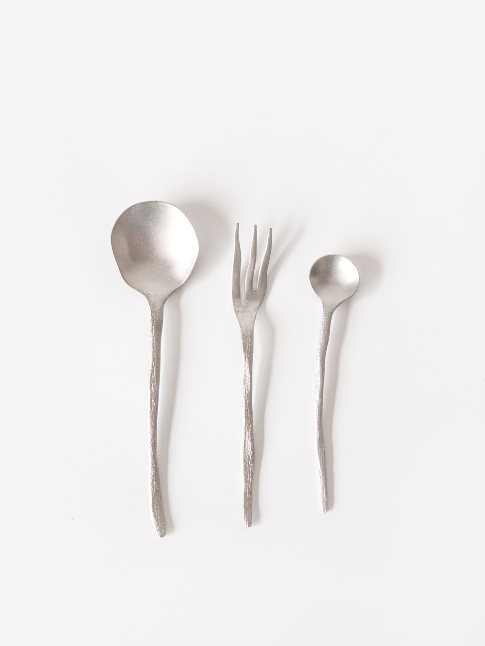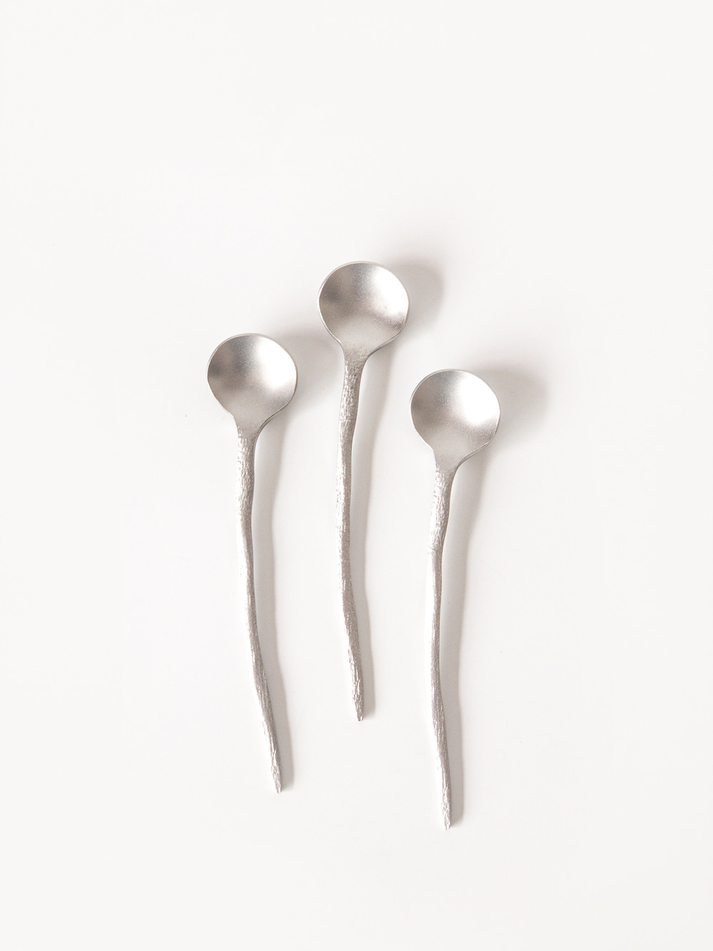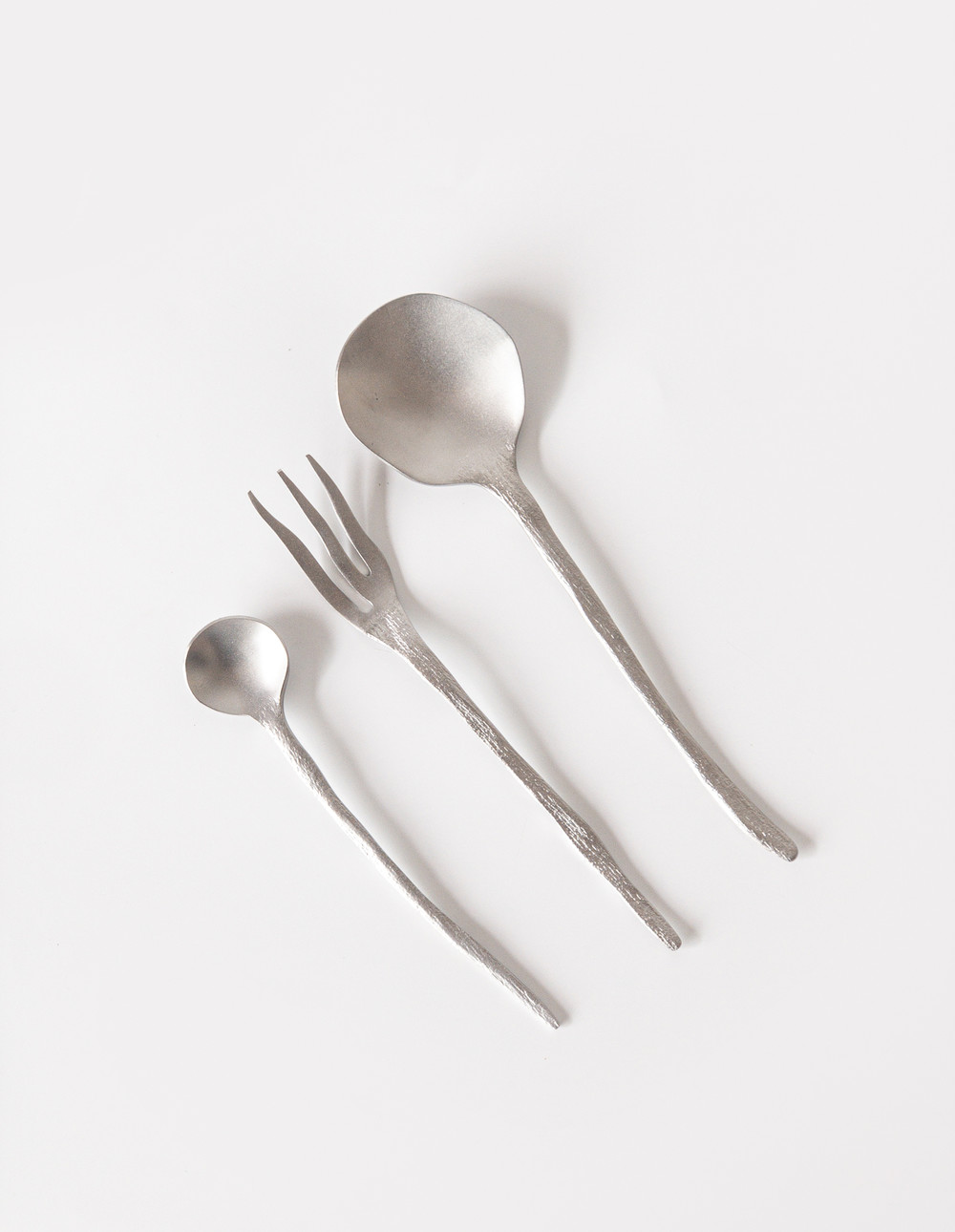 Roos Van de Velde가 디자인한 벨기에 세락스사의 작은 티스푼입니다. Roos Van de Velde는 자연에서 영감을 받는 시각 예술가로, 자연은 반복적이고 강한 존재감을 가지고 그녀의 모든 디자인을 관통합니다. 그 중 플로라 시리즈는 자연의 직관성을 식기에 표현한 시리즈로, 자연의 나뭇가지, 잎 등에서 영감을 받아 디자인하였습니다. 자연스럽고 균일하지 않은 모양의 커트러리로 테이블이 더욱 멋스러워집니다.