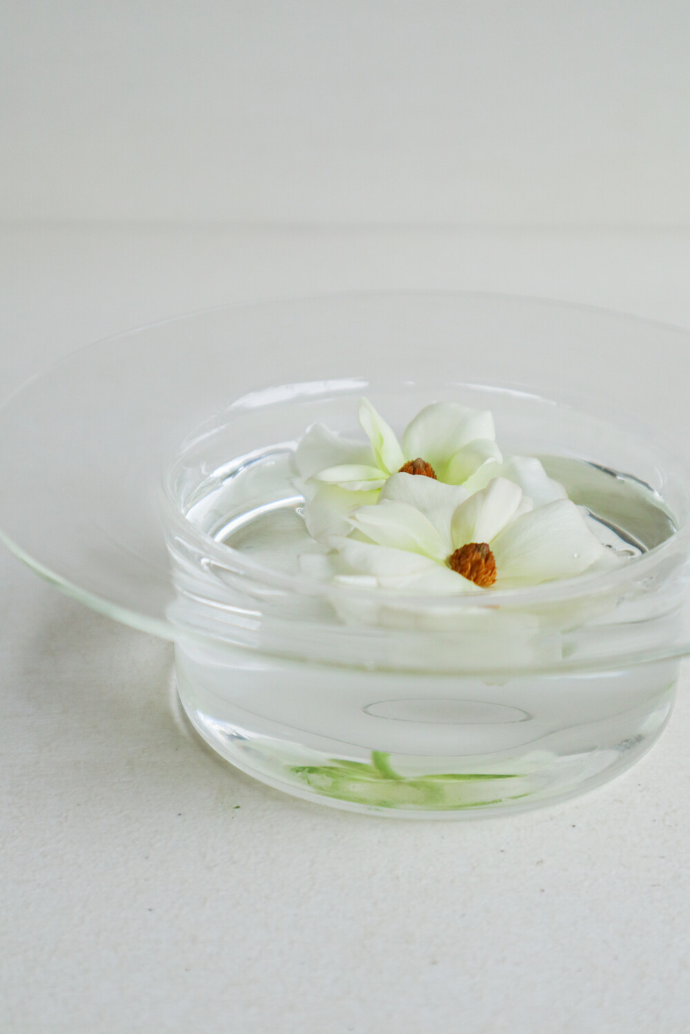 모던한 형태의 유리 수반입니다. 안쪽에 물을 넉넉히 채워 침봉을 넣어 꽃을 꽂아 연출해보세요. 투명한 유리를 통해 비치는 물 덕분에 더욱 청량한 분위기를 냅니다. 수반 외에도 샐러드, 과일이나 아이스크림을 담아 여름철 티저트 볼로도 사용하실 수 있습니다.