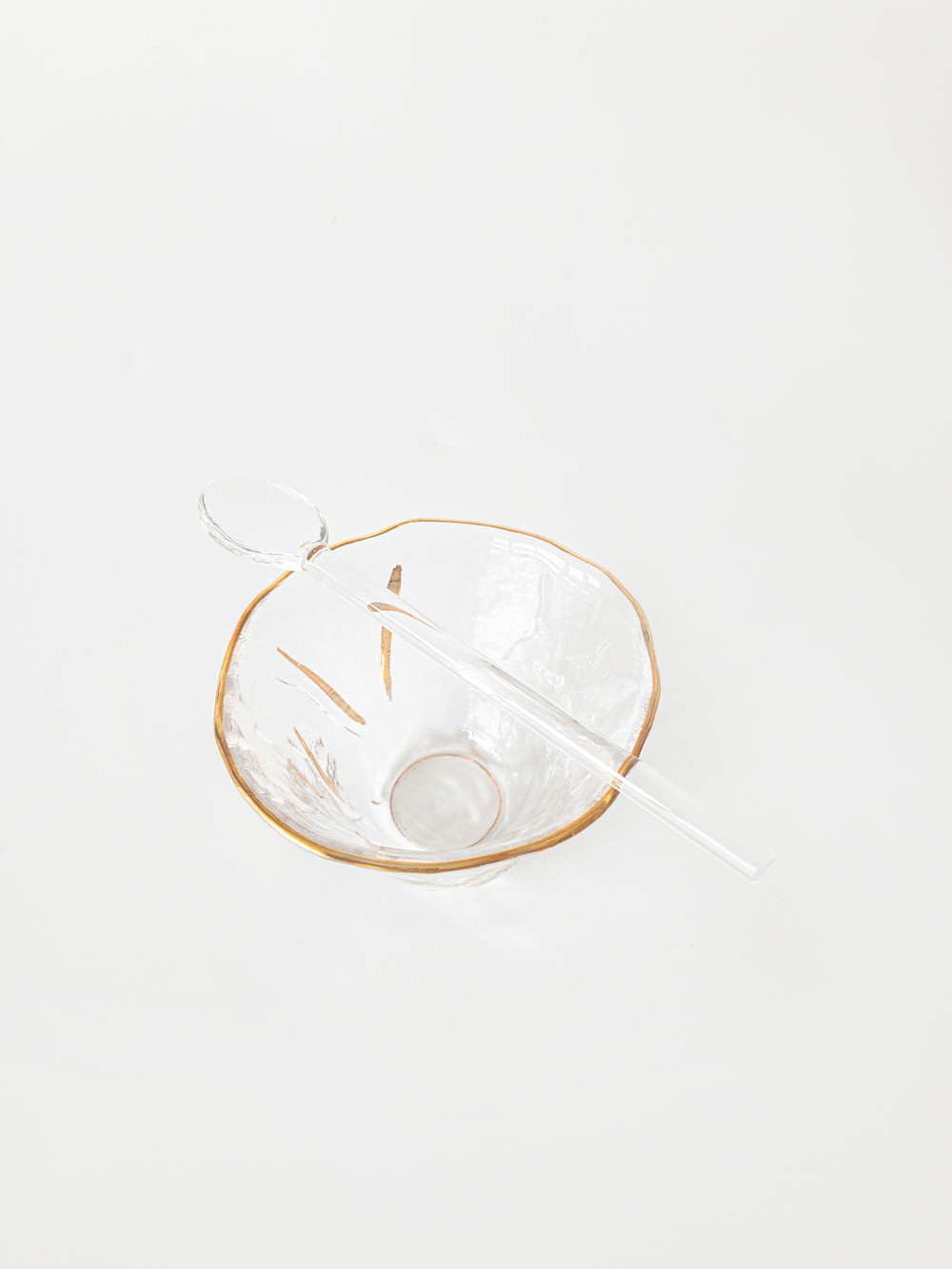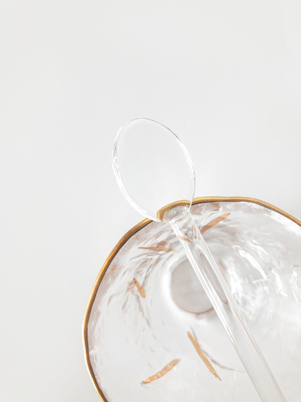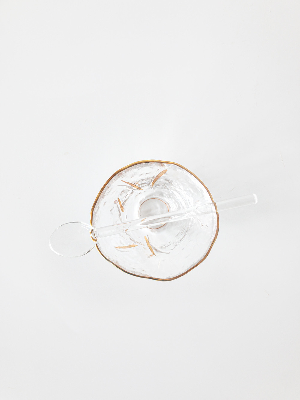 비정형적인 모양이 인상적인 유리 찻잔입니다. 고급 유리로 만들어져 견고하며, 유리 표면에 요철이 있어 찻물을 따랐을 때 빛이 난반사되며 영롱하게 반짝입니다. 손에 잡히는 감과 입술에 닫는 느낌이 좋아 손이 자주가는 제품입니다. 테두리와 표면에 금으로 장식이 되어 있어 고급스럽고 매력적인 제품으로, 금테두리가 있는 유리개완 제품과 함께 하시길 추천드립니다. 입고 시마다 칠해진 금 무늬가 조금씩 다를 수 있습니다.