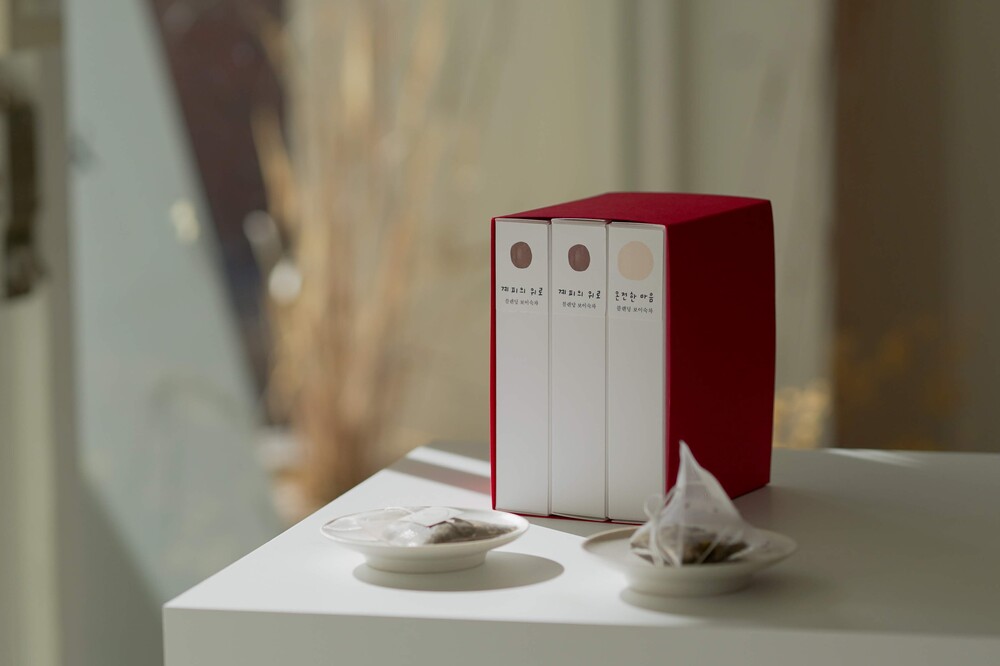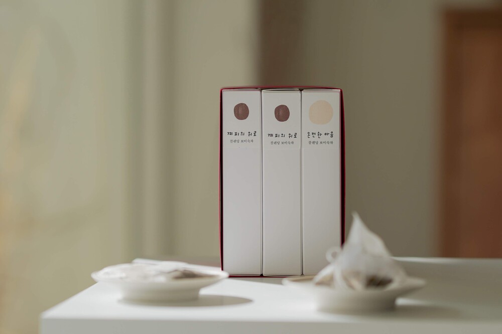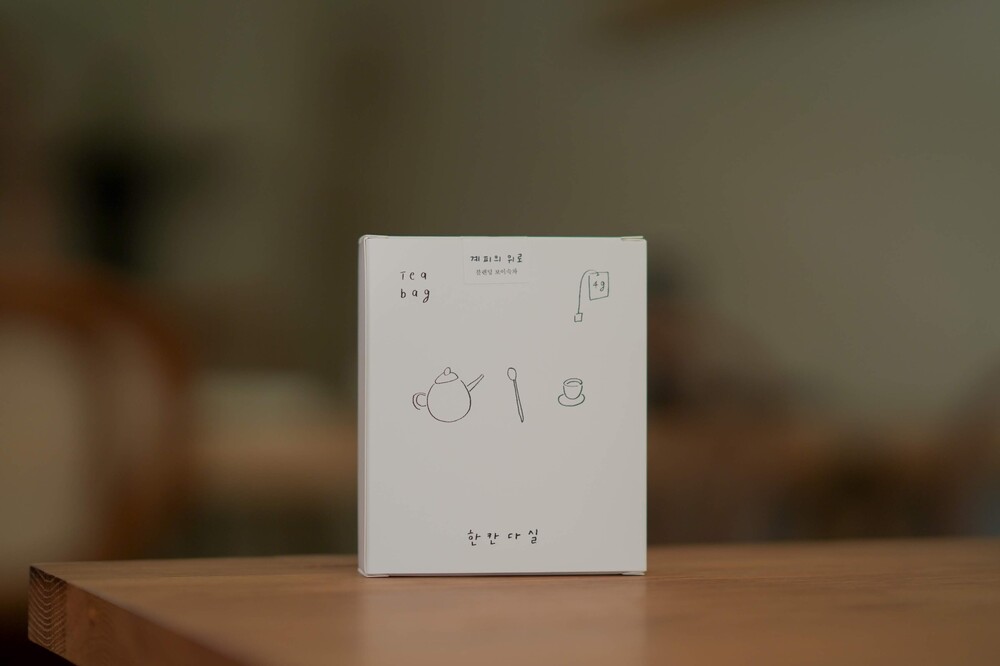 한칸다실의 읽히지 않는 책 세트입니다. 블렌딩 보이숙차 계피의 위로 2종과 온전한 마음 1종을 책처럼 묶어 구성하였습니다. 책이 아니라 마시는 차이기 때문에 읽히지 않는 책이라 이름 붙였습니다. 책장에서 책을 꺼내듯 항상 꺼내어 마시고 싶은 차가 되기를 희망합니다.