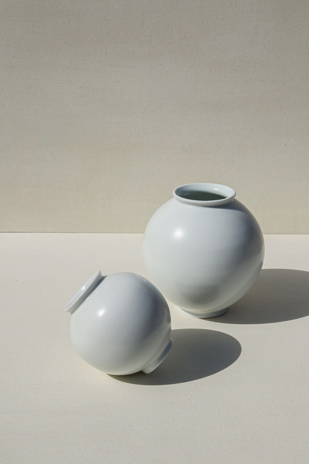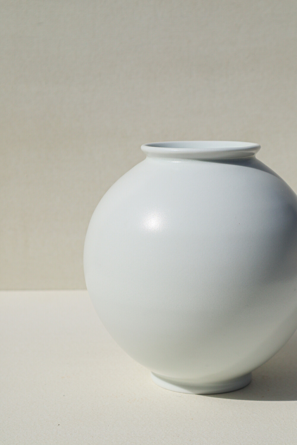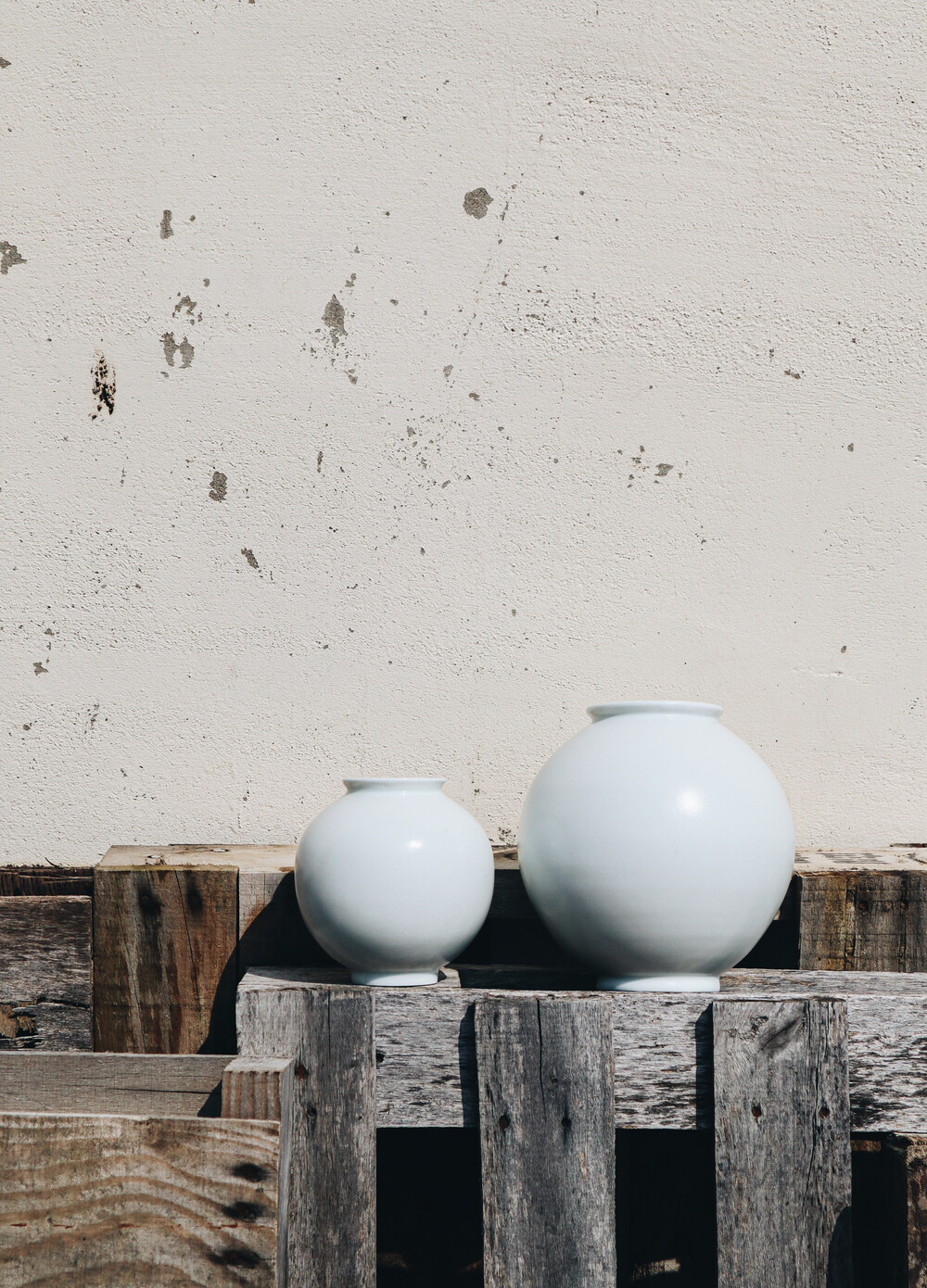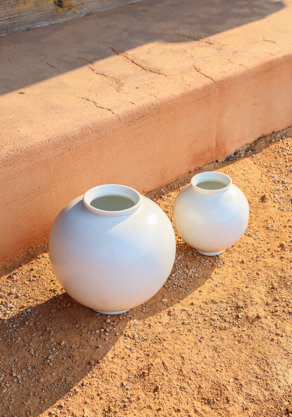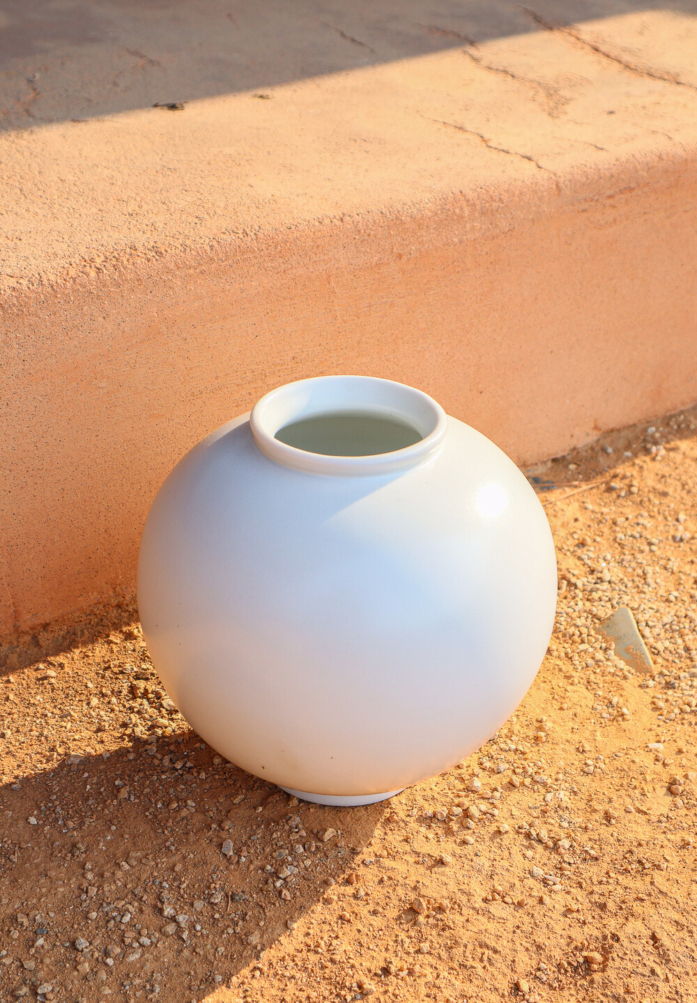 호우공방 한기원 작가의 작은 달항아리(M)입니다. 온화한 흰빛과 부드러운 곡선, 꾸밈없는 형태의 달항아리는 어디에 두어도 공간에 잘 스며듭니다.달항아리를 바라보면 백자의 맑은 빛은 마음을 깨끗하게 비워주는 듯 하며, 넉넉하고 둥그스름한 형태는 마음에 여유와 따스함이 스며들게 합니다. 부담없는 크기의 달항아리를 일상 속 오브제로 다양하게 활용해 보세요.