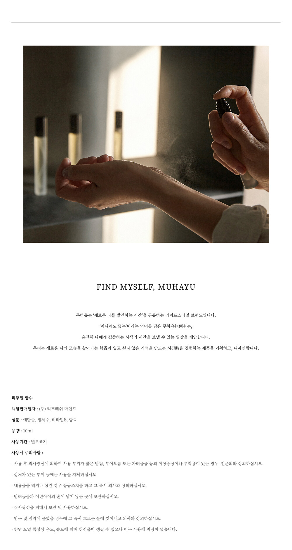 무하유의 리추얼 오일 스프레이 님페움 향입니다.
