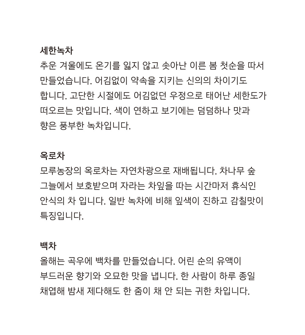 [모루농장 직배송] 모루농장 장인차 (세한녹차, 옥로차, 백차)