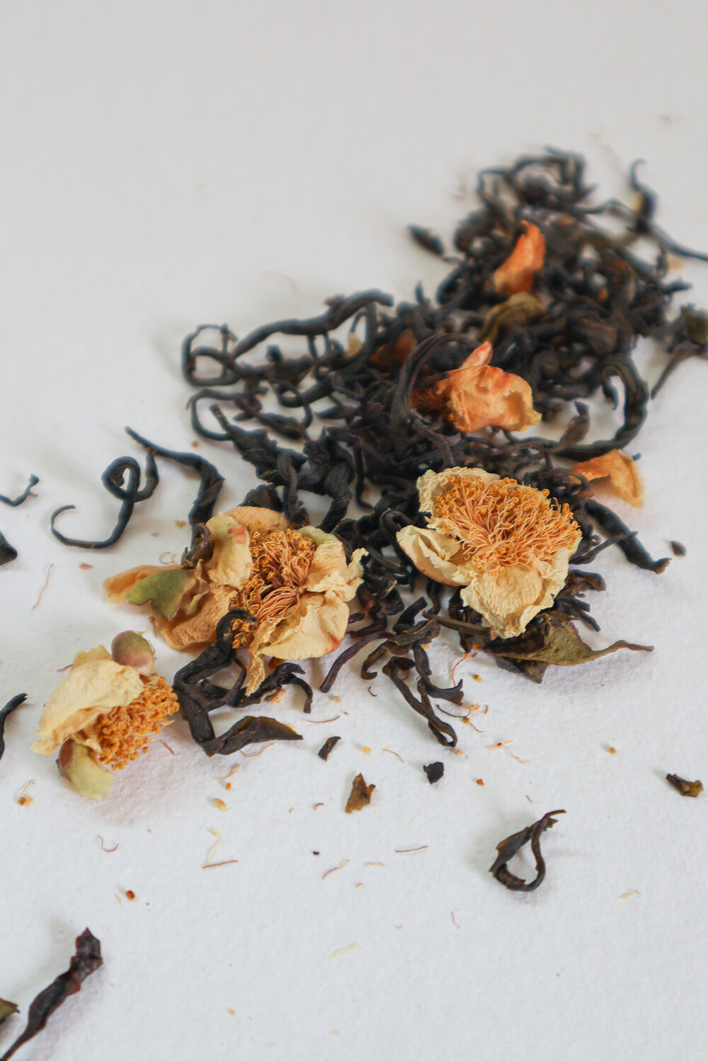 모루농장의 차꽃차 잎차 30g입니다. 차꽃과 함께 녹차가 블랜딩되었습니다. 늦가을 차나무에서 팝콘처럼 하얗게 피어나는 차꽃은 한해의 수확을 축복하는 경이로운 꽃입니다. 유난히 짙은 노란 수술은 꽃무게 10%에 달하는 꿀을 품고 있어 차맛을 부드럽게 합니다. 노화방지와 건강한 피부에 효능이 있는 사포닌이 풍부합니다.