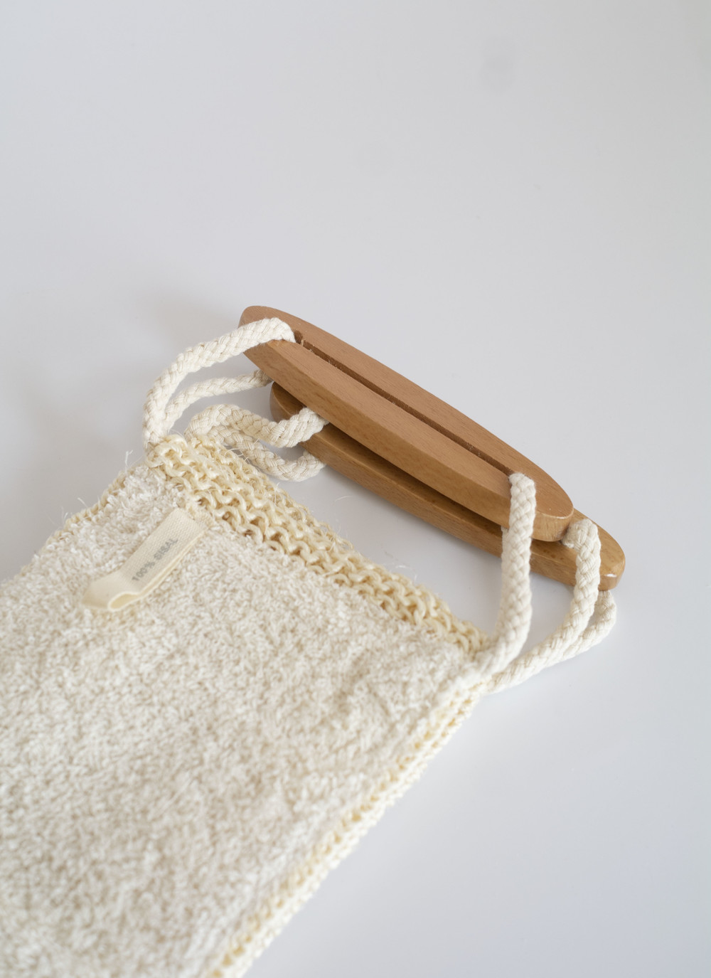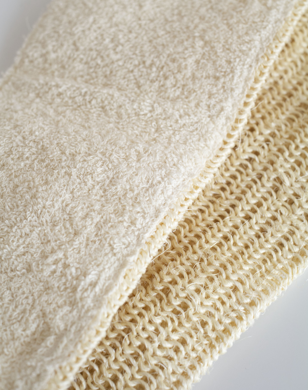 Martini Massage의 두가지 타입으로 사용가능한 내추럴 마사지 스트랩입니다. 바깥쪽의 100% 사이잘은 필링을 도와 묵은 각질을 제거해주며 피부톤을 밝혀주고 노화를 방지해줍니다. 안쪽의 100% 순면은 사이잘로 각질을 제거해준 후 부드럽게 닦아줍니다. 손이 닿지 않는 등쪽부위를 스트랩을 이용해 마사지할 수 있습니다. 모든 피부타입에 사용해도 괜찮습니다. 사용하고 나서는 깨끗이 씻어 눕히거나 걸어놓고 말려주세요.