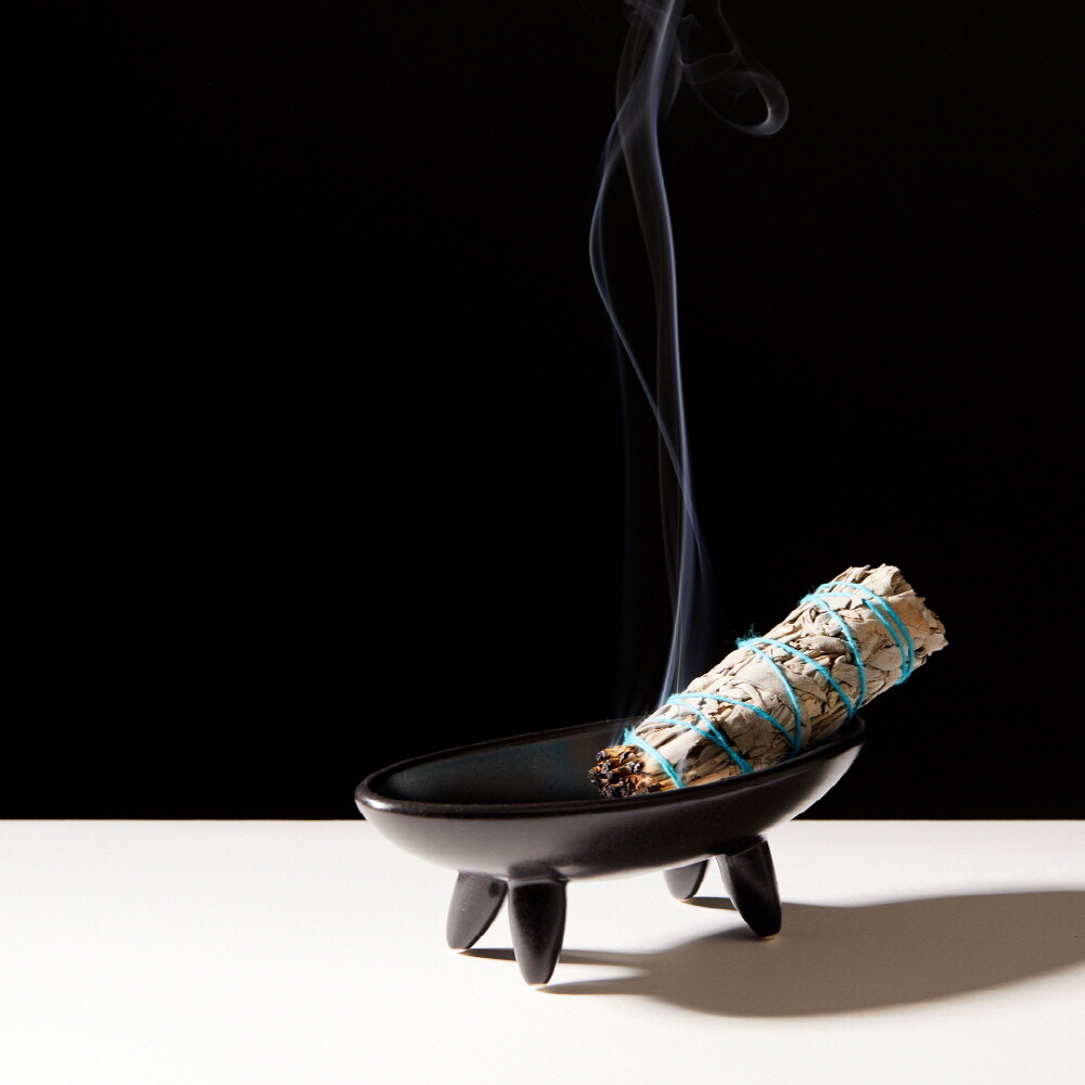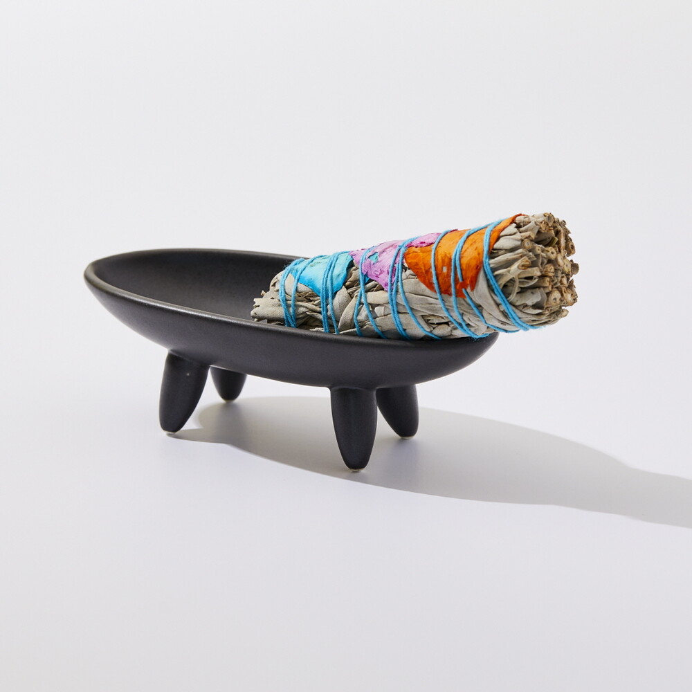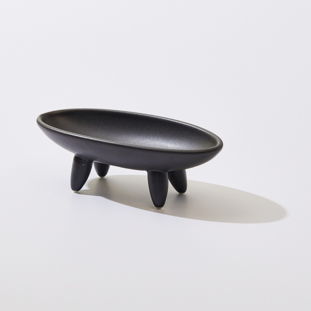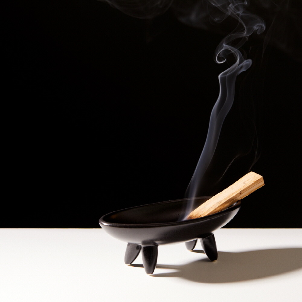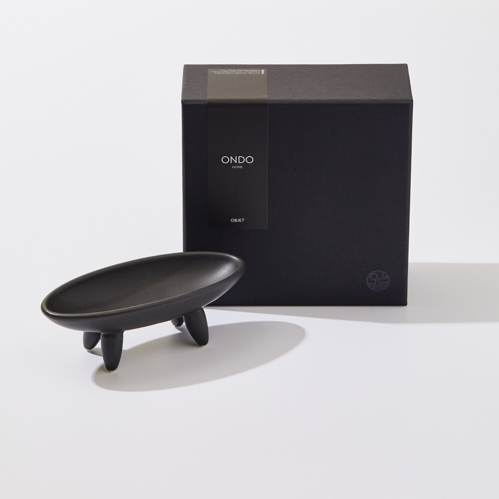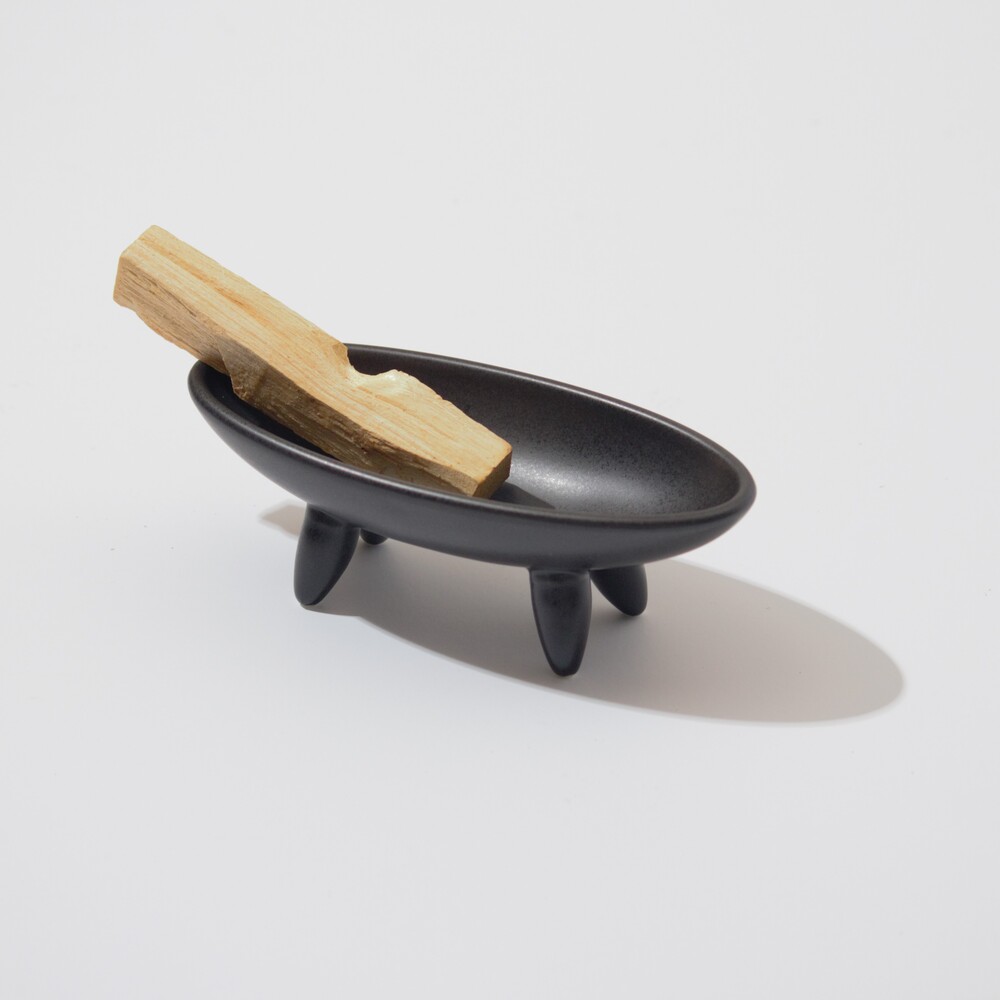 안정된 네개의 다리 (TETRAPOD)는 균형감 있게 타원형 보울을 지지하고 흑자기의 깊고 단단한 색감은 어떠한 스머지 스틱과도 잘 어울립니다. 또한, 재가 날리지 않도록 한 오목한 형태의 타원형 보울은 연소 후 손쉽게 닦아낼 수 있도록 매끈하고 날렵하게 처리되어 있습니다.