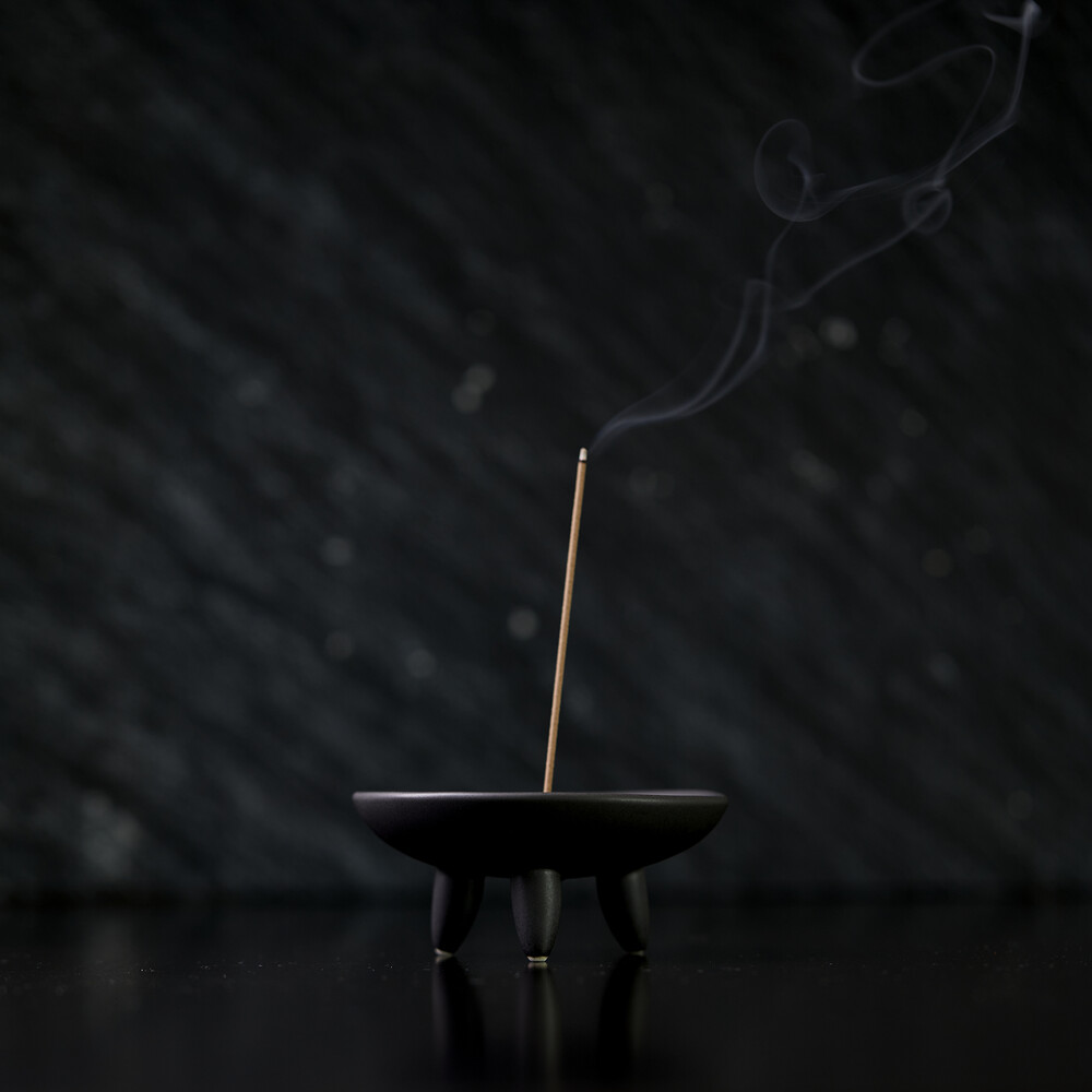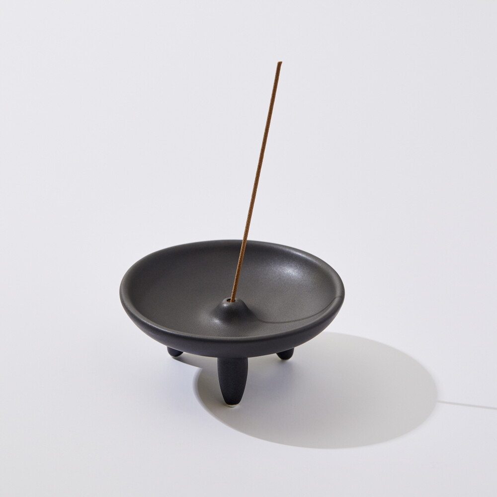 온도의 인센스 스틱 홀더입니다. 화산 (VOLCANO) 활동 이후 생겨난 분지와 같은 모양을 닮아 이름 붙여진 칼데라 (CALDERA) 는 오래전 부터 화산 지형을 가진 많은 나라들에서 평안을 기원하던 의식에서 영감을 받아 만들어졌습니다. 전통적으로 제단이나 화로등에 많이 사용되어진 디자인의 tripod(세개의 다리)는 특유의 균형(Balance) 감으로 홀더를 지지하고, 흑자의 깊고 단단한 색감은 어떠한 인센스 스틱과도 잘 어울려 스틱을 살짝 꽂아 두는 것 만으로도 감각적인 인테리어 소품이 되어 줍니다.