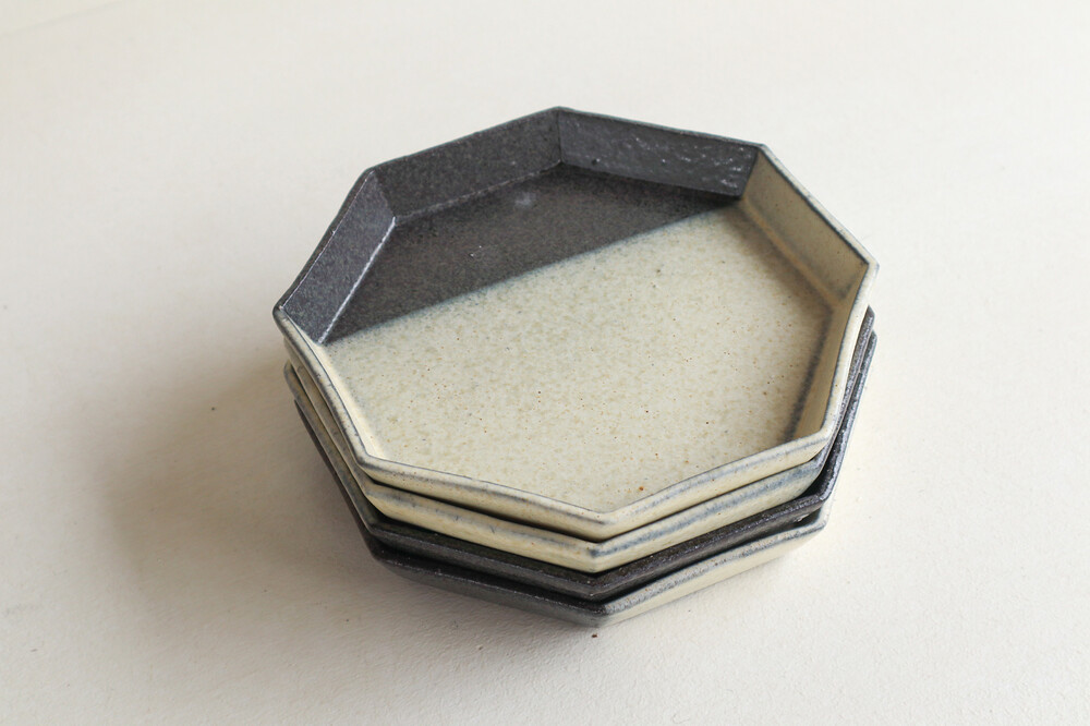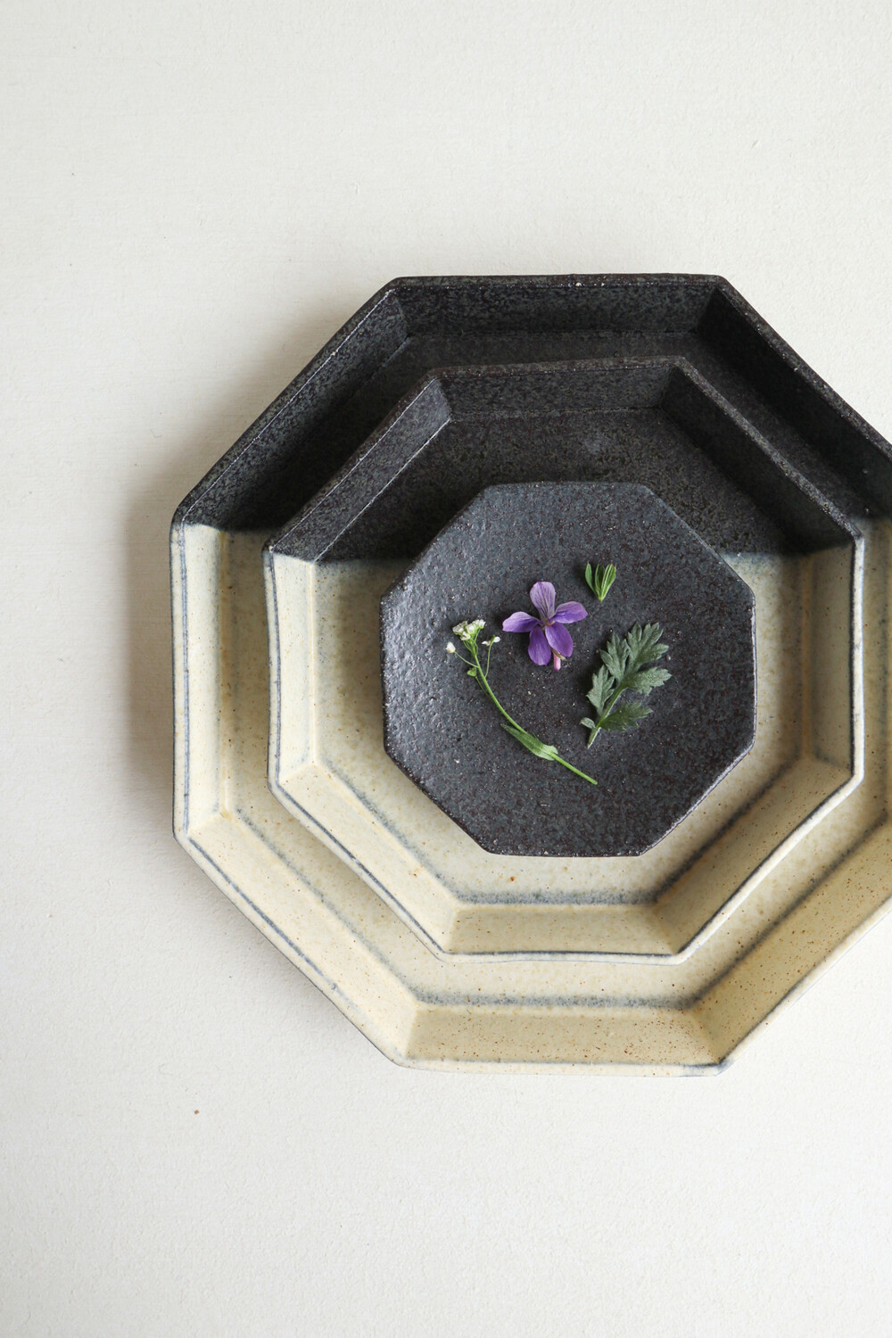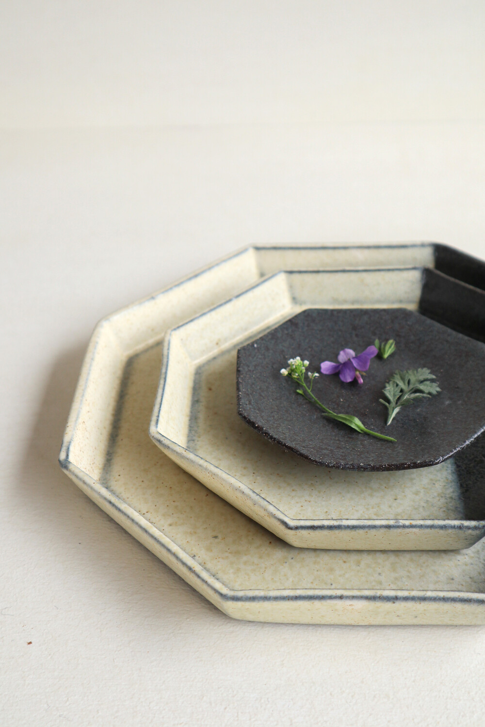 [공방 판] 검은 팔각 분장 접시 (2 sizes)