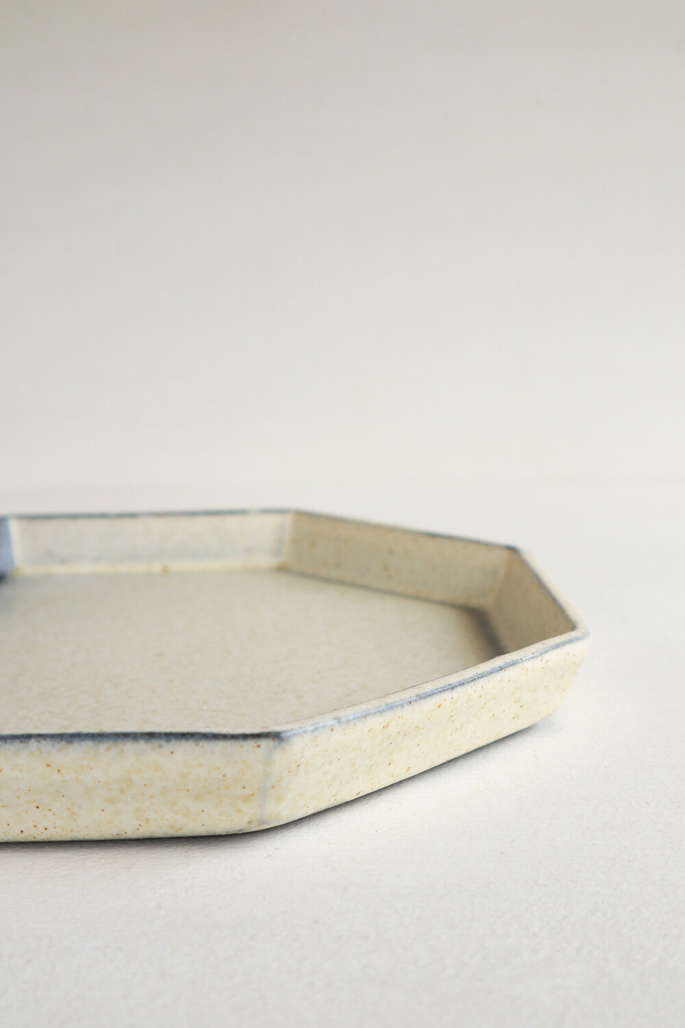 공방 판의 거친 질감과 깊은 색감이 매력적인 '검을현,[玄]' 시리즈 중 하나인 팔각 분장 접시입니다. 분청의 분장기법을 응용하여 대비되는 독특한 색감과 문양이 특징인 이 접시는 함께 놓였을 때 더욱 빛이 납니다. S사이즈는 앞접시나 찬기로 활용하시기 좋으며, L사이즈는 메인 음식을 담을 때 사용하시기 좋습니다.