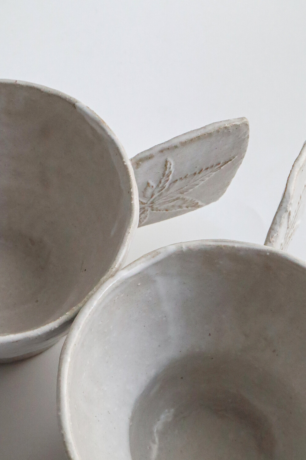 박혜성 작가의 손잡이에 단풍잎이 새겨진 잔(A)입니다. 단풍잎이 새겨진 잔은 모든 잔이 수작업으로 만들어져 손 작업 특유의 질감이 살아있어 더욱 정감이 갑니다. 낮고 넓은 형태로 커피, 차를 마시는 용도 외에도 요거트 등을 담아 디저트 볼로도 사용할 수 있어 활용도가 높습니다. 핸드메이드 제품으로 제품마다 크기와 모양이 조금씩 다를 수 있으며 제품은 랜덤으로 발송됩니다. 이 작업은 유약의 눈물 자국이 있을 수 있으며 오랜 시간 진한 색의 음료를 담아두면 색이 베일 수 있습니다.